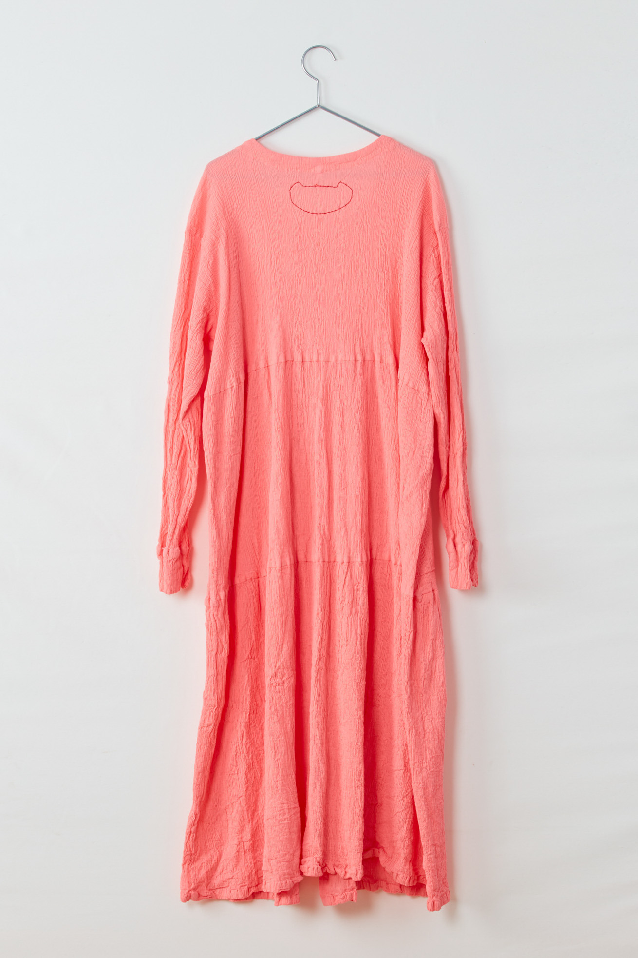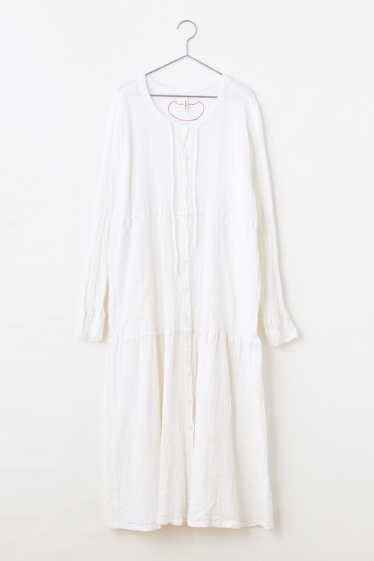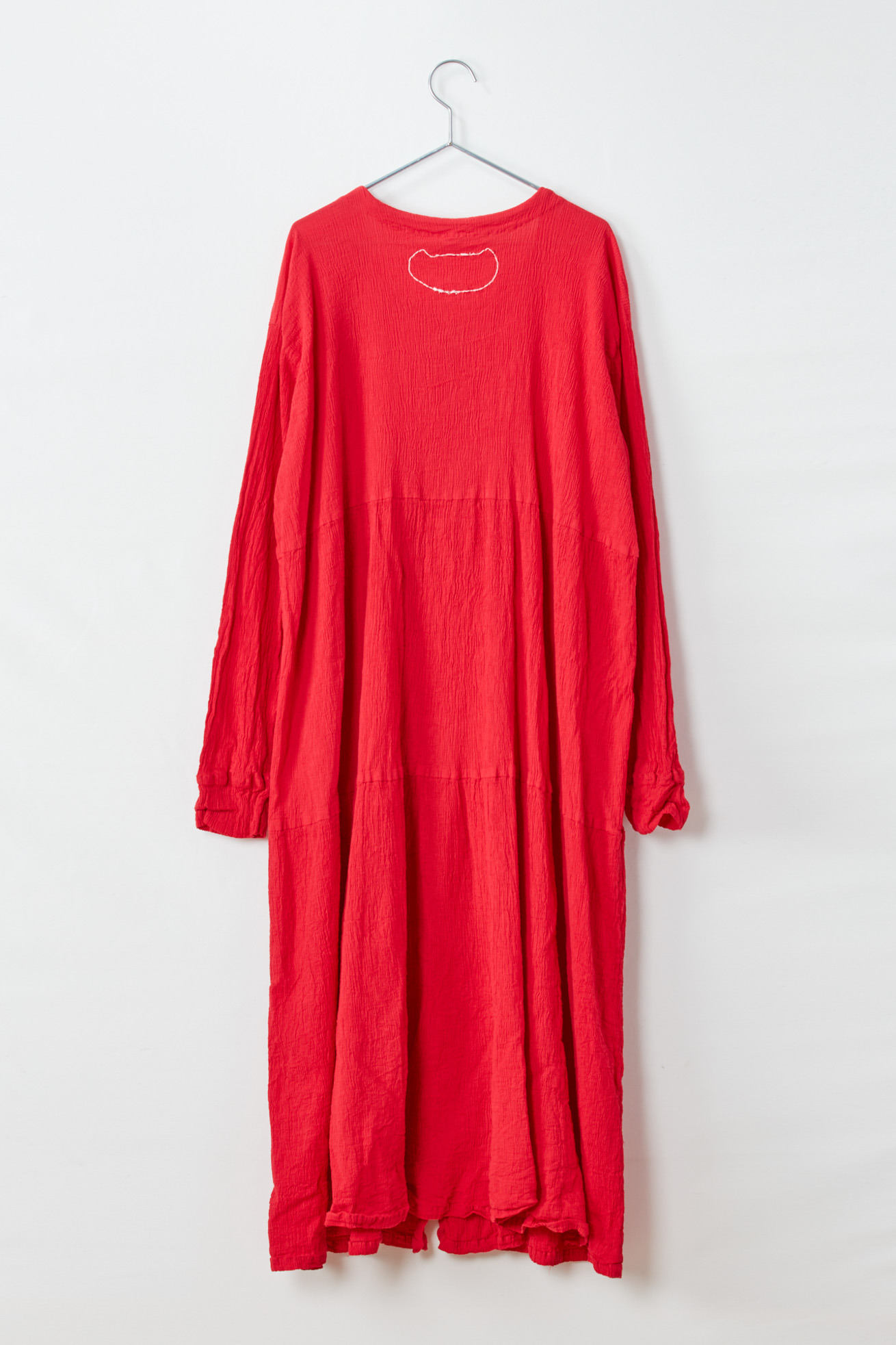 ゆったりとしたサイズ感ながら広がりすぎないシルエットが特徴のロングワンピースです。 羽織としてもご利用いただけますので、インナーにニットなどと合わせて、これからの季節にカラーをお楽しみください。 サイドには大きなポケットがついています。 生地の織りは、古くからちりめんで有名な滋賀県高島地区、染めと仕上げは岐阜県大垣市にて行っています。 crêperie(クレプリ)とは・・・ 1994年に発表した、コットン素材のシボ感が特徴的なアイテムです。 国内の工場、職人さんの高い技術によって作られる生地は、伸縮性が非常に高く、程よいフィット感で一度着るとクセになる着心地です。 染色後に自然乾燥をし、時間をかけて丁寧に作られます。 ネットに入れて洗濯機で洗えるイージーケアも特徴です。 シワを気にせずコンパクトにたためるので、ご旅行や室内での温度調整など、持ち運びにも便利なアイテムです。 ※サイズについて 商品により個体差がございます。予めご了承ください。