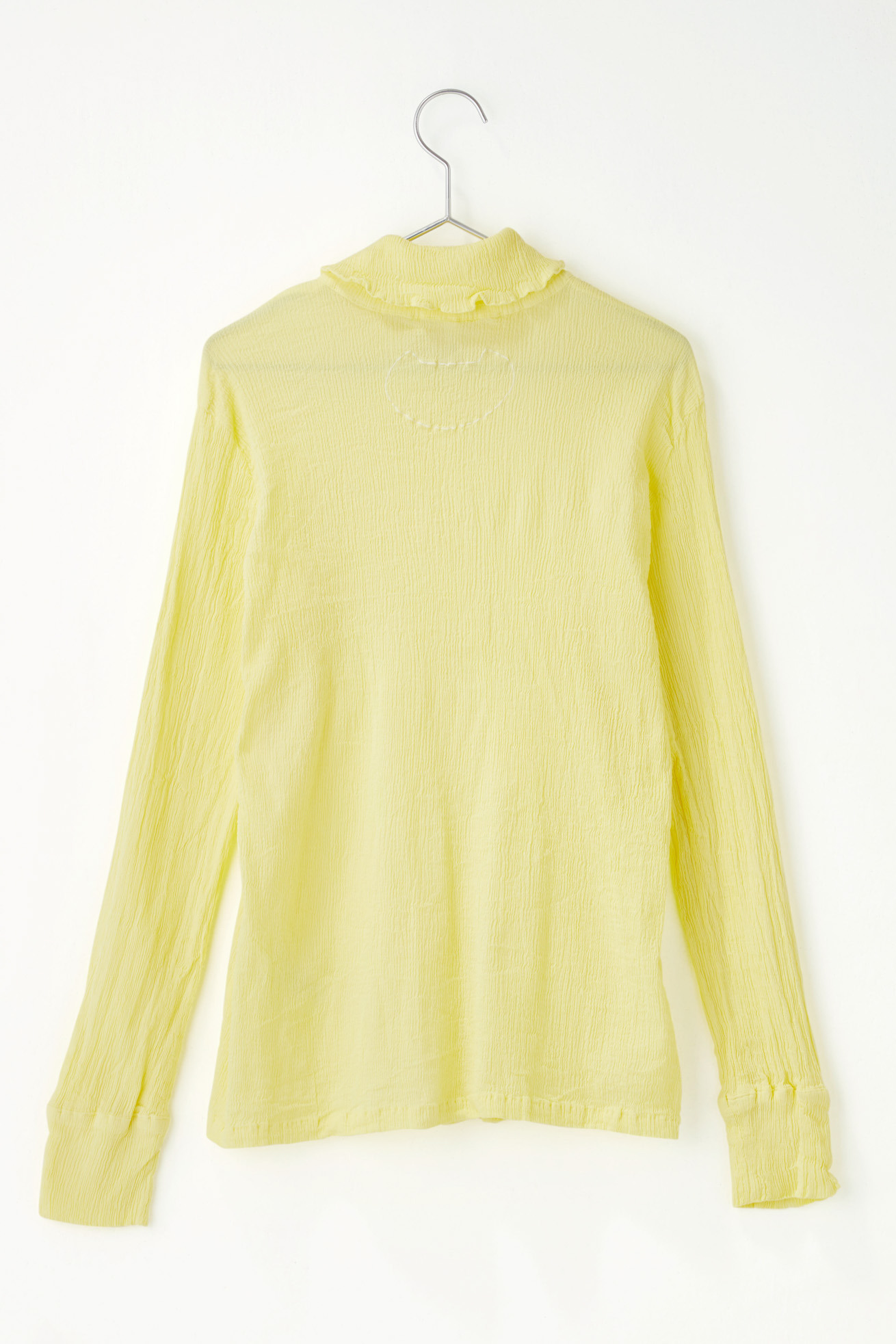 コンパクトな襟が女性らしい長袖シャツ。 シンプルなデザインで1枚でも、羽織としても便利なアイテムです。 ネコ型の刺繍が入ったバックスタイルもアクセントになっています。 生地の織りは、古くからちりめんで有名な滋賀県高島地区、染めと仕上げは岐阜県大垣市にて行っています。 crêperie(クレプリ)とは・・・ 1994年に発表した、コットン素材のシボ感が特徴的なアイテムです。 国内の工場、職人さんの高い技術によって作られる生地は、伸縮性が非常に高く、程よいフィット感で一度着るとクセになる着心地です。 染色後に自然乾燥をし、時間をかけて丁寧に作られます。 ネットに入れて洗濯機で洗えるイージーケアも特徴です。 シワを気にせずコンパクトにたためるので、ご旅行や室内での温度調整、持ち運びにも便利なアイテムです。 ※サイズについて 商品により個体差がございます。予めご了承ください。