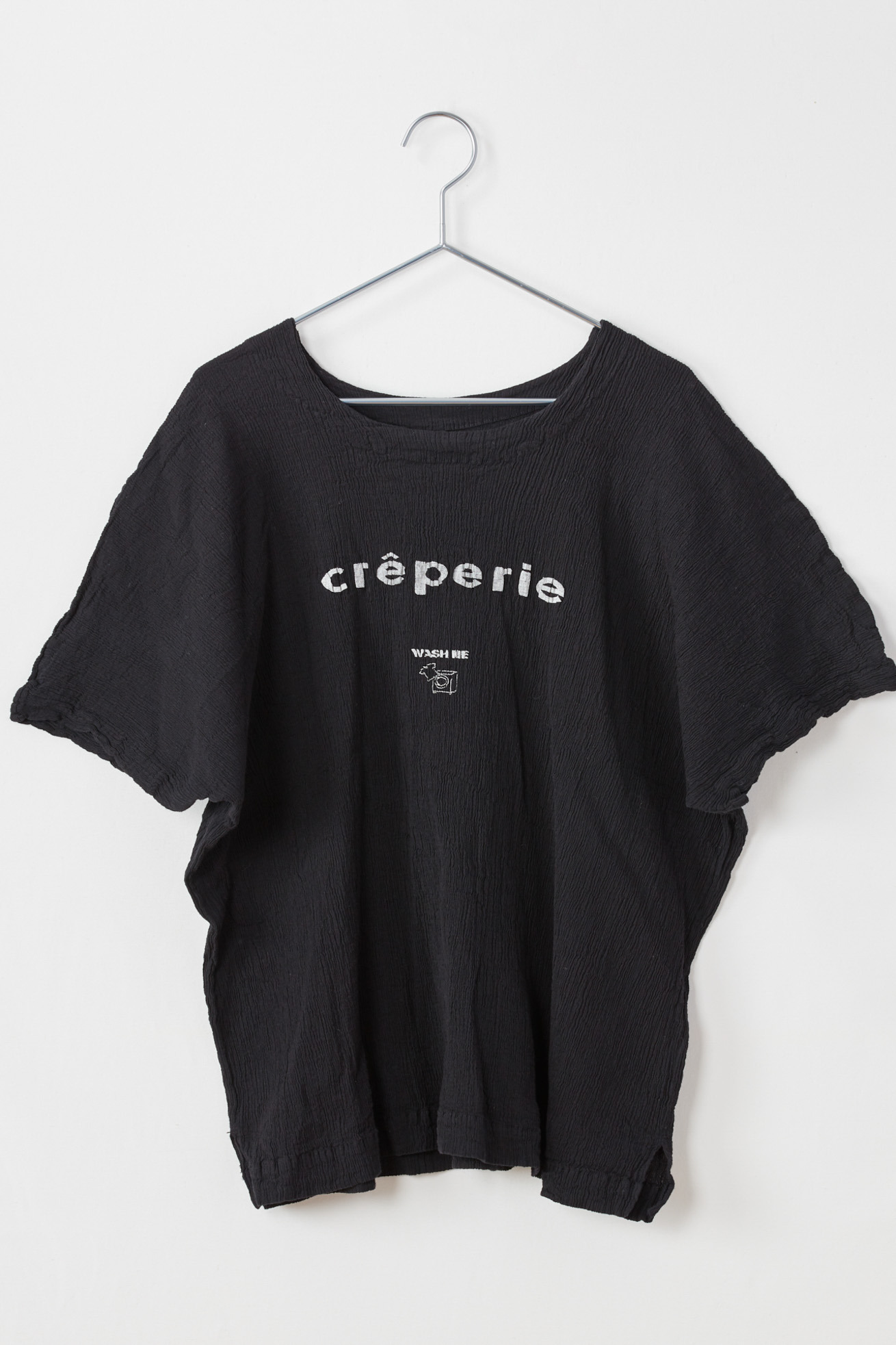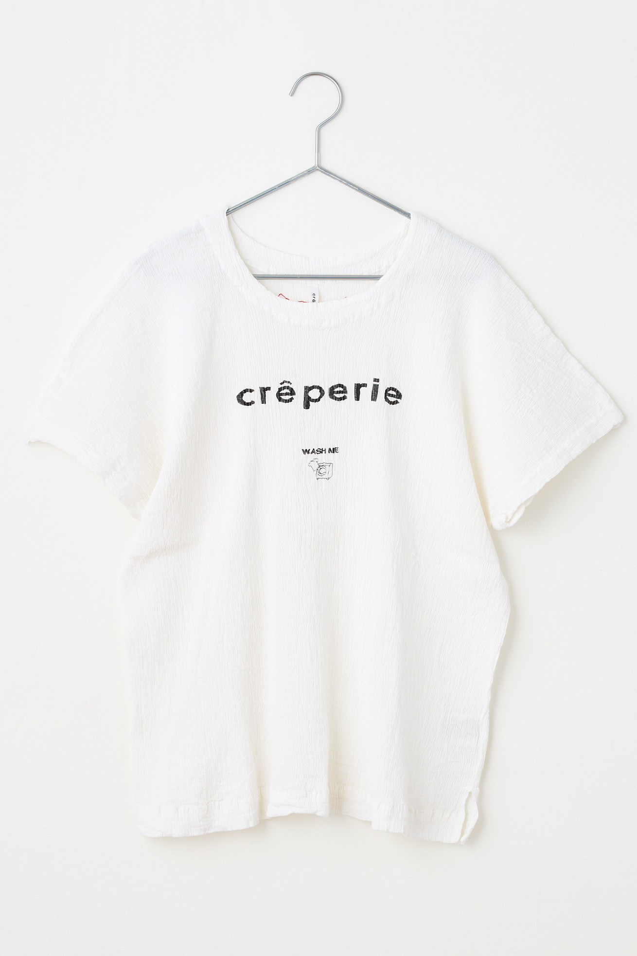 フロントにクレプリのロゴ、「WASH ME」と洗濯機のプリントを入れた半袖Tシャツです。