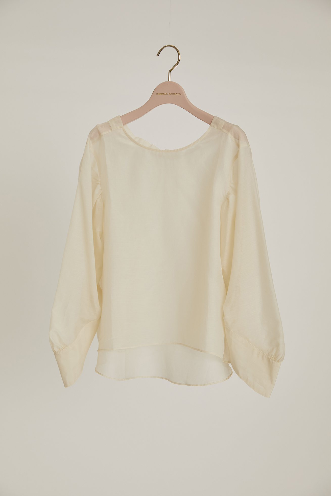 縦糸にシルクを使用し、薄く軽やかでシルクの微かな光沢とドレープ感が上品なブラウス。 背中が深く開くデザインが特徴で、ボトムを選ばずコーディネートしやすいアイテムです。 ※当サイトの商品は実店舗と在庫を共有しており、ご注文完了後に商品を確保できない場合がございます。 その際、改めてキャンセルまたは数量変更のメールをお送りいたします。何卒ご了承いただけますと幸いです。