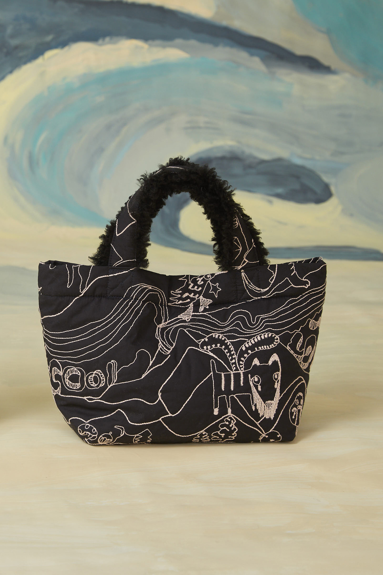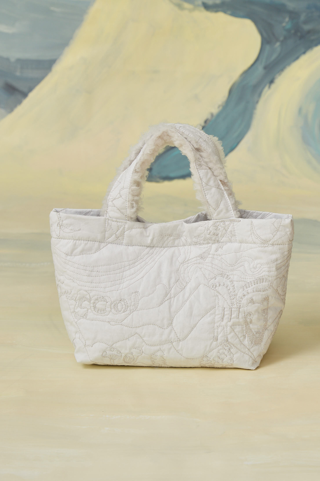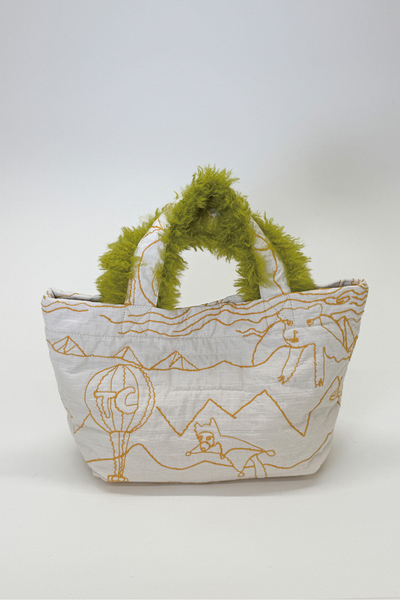 Mountain quilt と、ボア生地を組み合わせたリバーシブルトートバッグです。 かくしマグネットボタンでバッグ口元を止めることができます。 マチがあり携帯やお財布、ペットボトルなども入れやすい大きさです。 ※柄の出方は1点ずつ異なりますので、あらかじめご了承ください。 【Mountain quilt生地について】 うねうねとした空模様、ゆっくりと登っていく太陽、山々のシルエット。 "Avec la nature"の文字。 自然とともに、流れていく川や風景。 線画のタッチをそのまま、刺繍でキルティングしました。 空模様や幾何学的な建物、海、流れる流氷、恐竜や気球、森の動物たちなど、よく見ると楽しい発見があるテキスタイルです。 滋賀県で刺繍加工をしています。 ※着用モデル身長:160cm ※当サイトの商品は実店舗と在庫を共有しており、ご注文完了後に商品を確保できない場合がございます。 その際、改めてキャンセルまたは数量変更のメールをお送りいたします。何卒ご了承いただけますと幸いです。