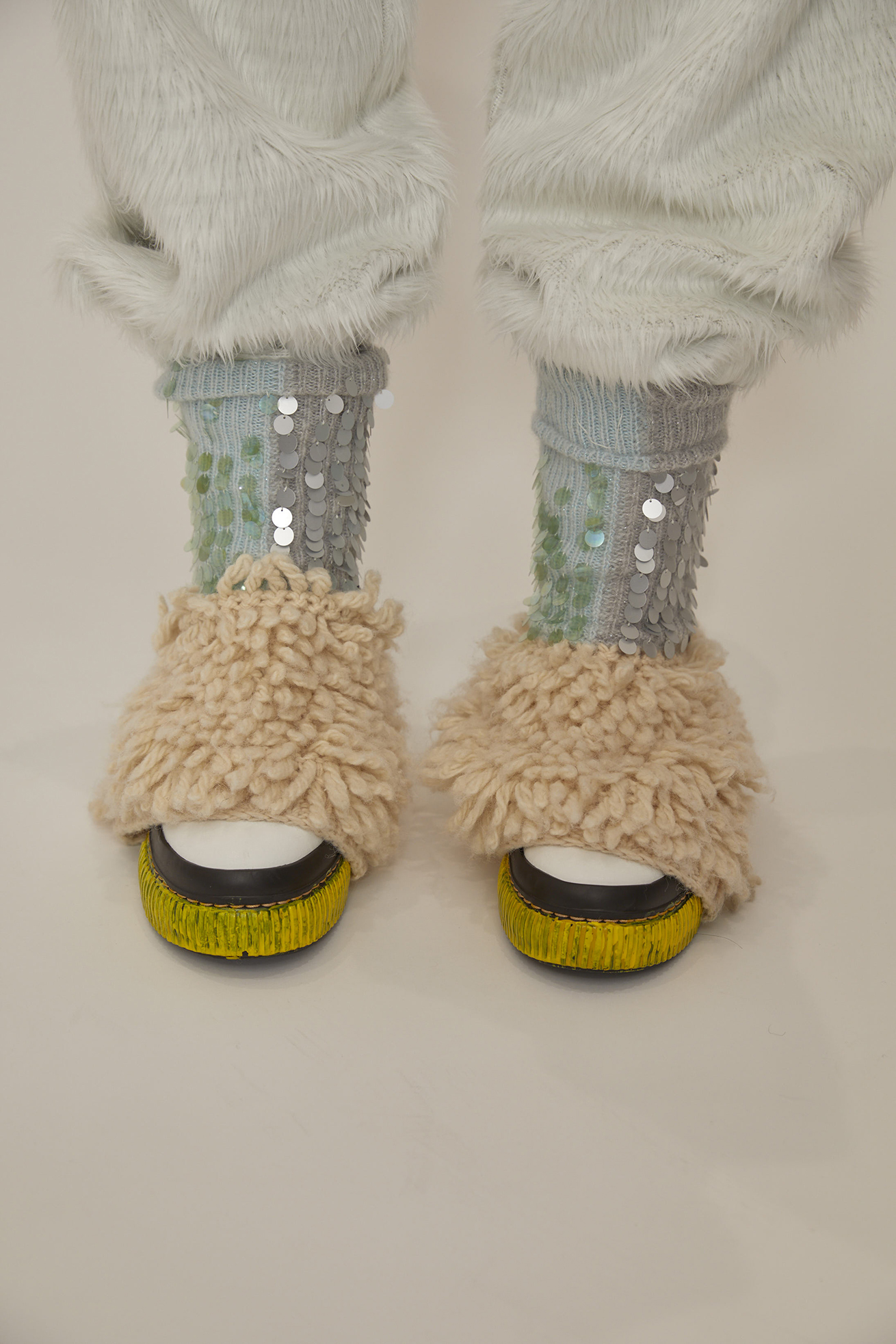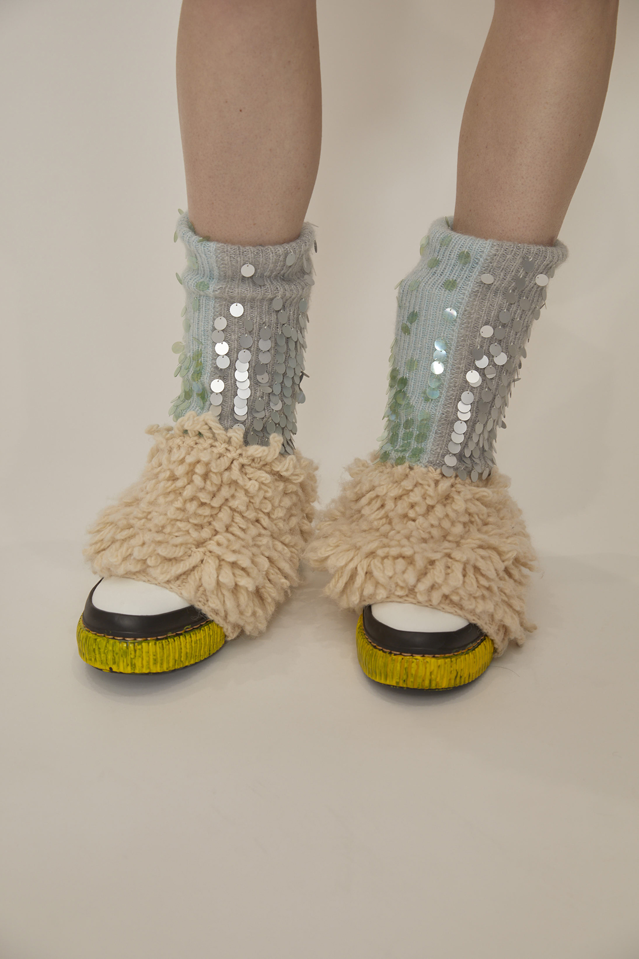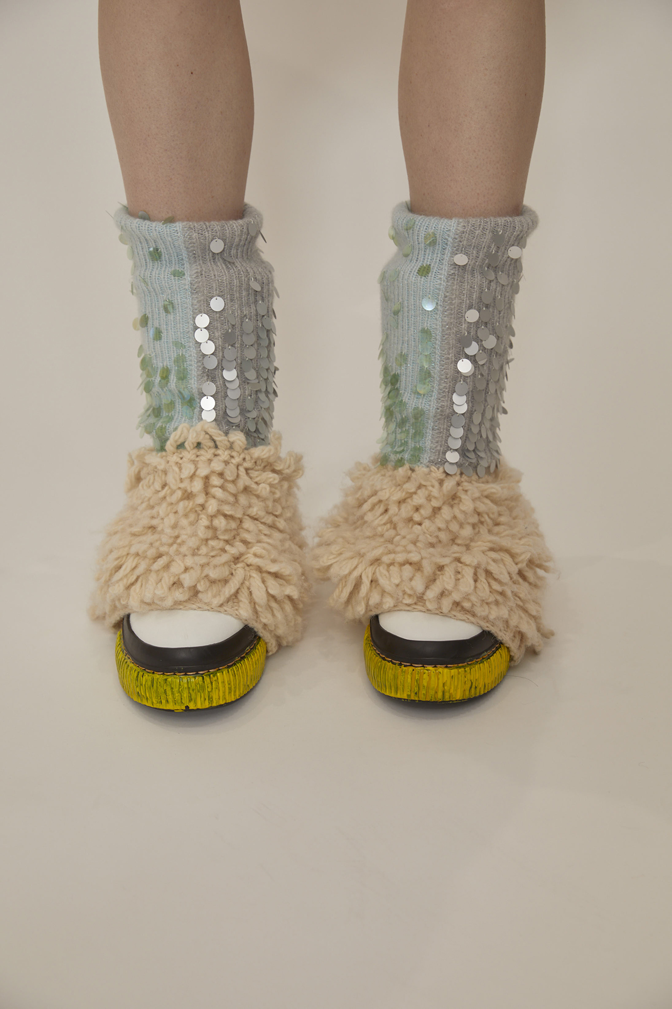 アルパカヘンプの糸でループ状の編地を編んだ部分とスパンコールを散りばめた編地が特徴のレッグウォーマーです。 色の切り替えや大きめのスパンコール、他にはないデザインが遊び心あふれるアイテムです。 ブーツやパンプス、スニーカーなどに合わせてコーディネートをお楽しみください。 ※着用モデル身長:175cm ※当サイトの商品は実店舗と在庫を共有しており、ご注文完了後に商品を確保できない場合がございます。 その際、改めてキャンセルまたは数量変更のメールをお送りいたします。何卒ご了承いただけますと幸いです。