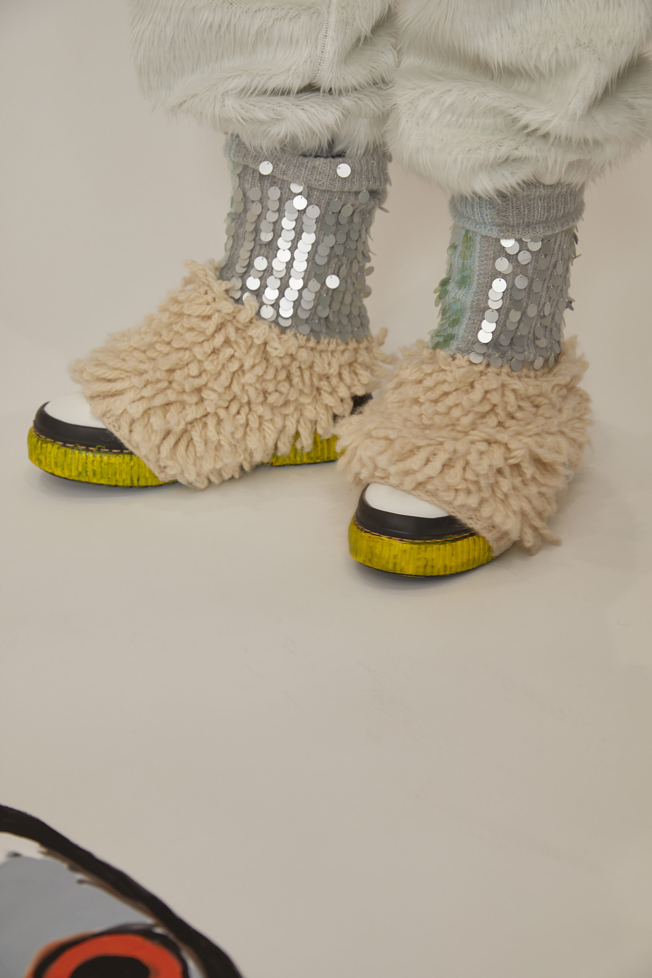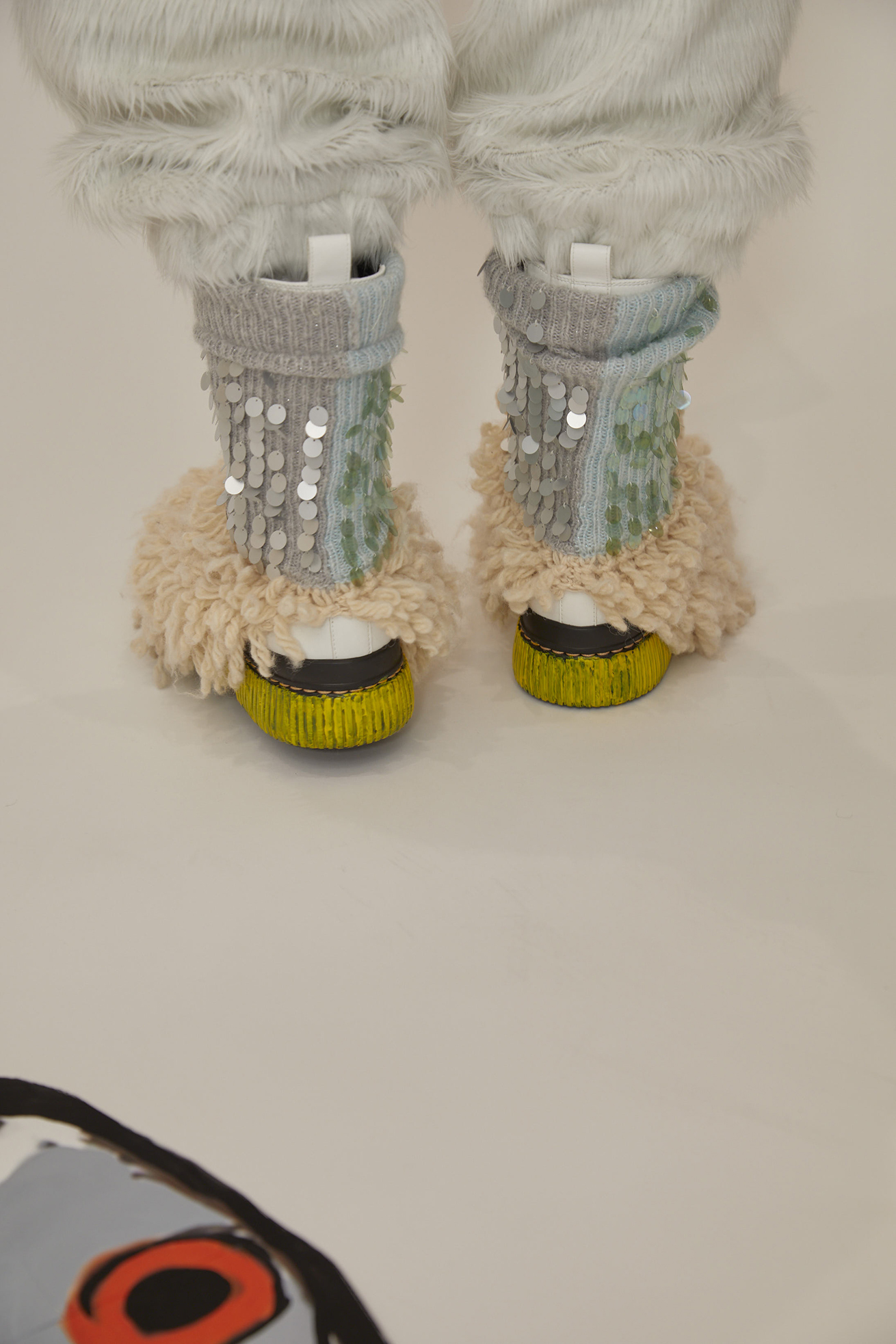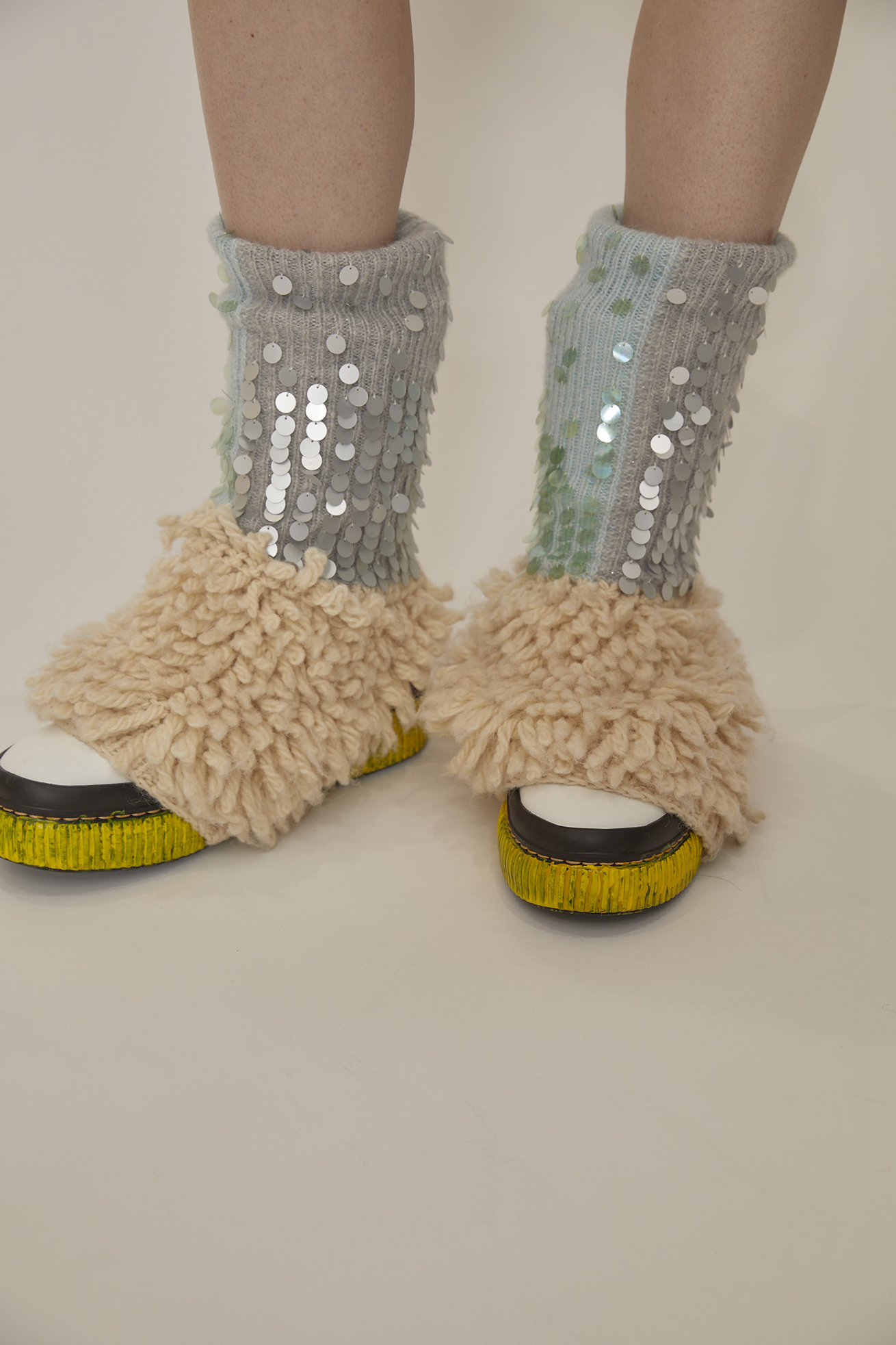 アルパカヘンプの糸でループ状の編地を編んだ部分とスパンコールを散りばめた編地が特徴のレッグウォーマーです。 色の切り替えや大きめのスパンコール、他にはないデザインが遊び心あふれるアイテムです。 ブーツやパンプス、スニーカーなどに合わせてコーディネートをお楽しみください。 ※着用モデル身長:175cm ※当サイトの商品は実店舗と在庫を共有しており、ご注文完了後に商品を確保できない場合がございます。 その際、改めてキャンセルまたは数量変更のメールをお送りいたします。何卒ご了承いただけますと幸いです。