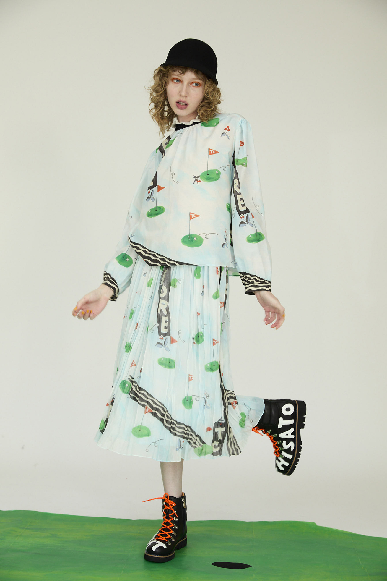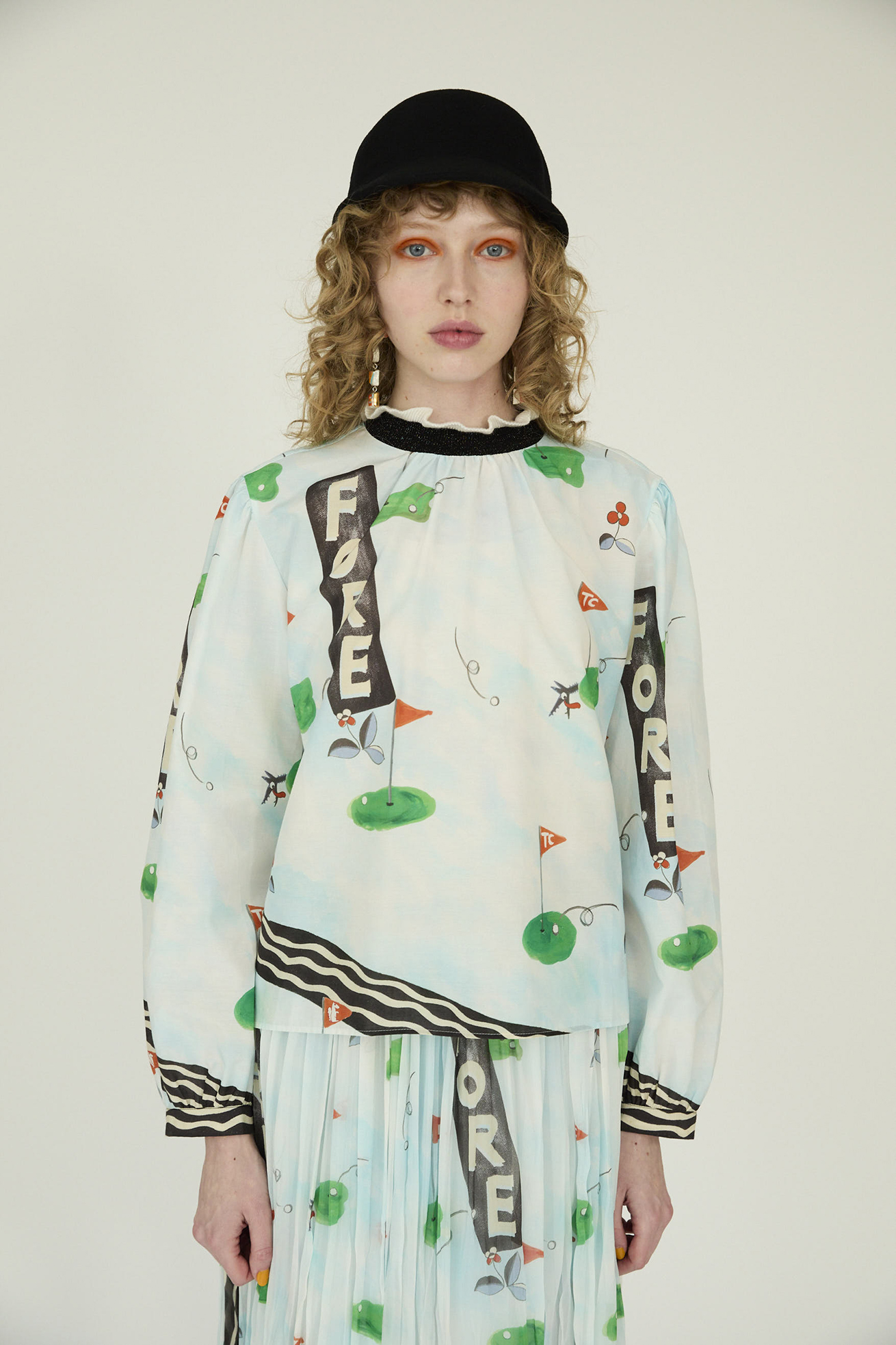 今シーズンのキーアイテムであるゴルフボールやグリーンが描かれたNice on printのブラウス。