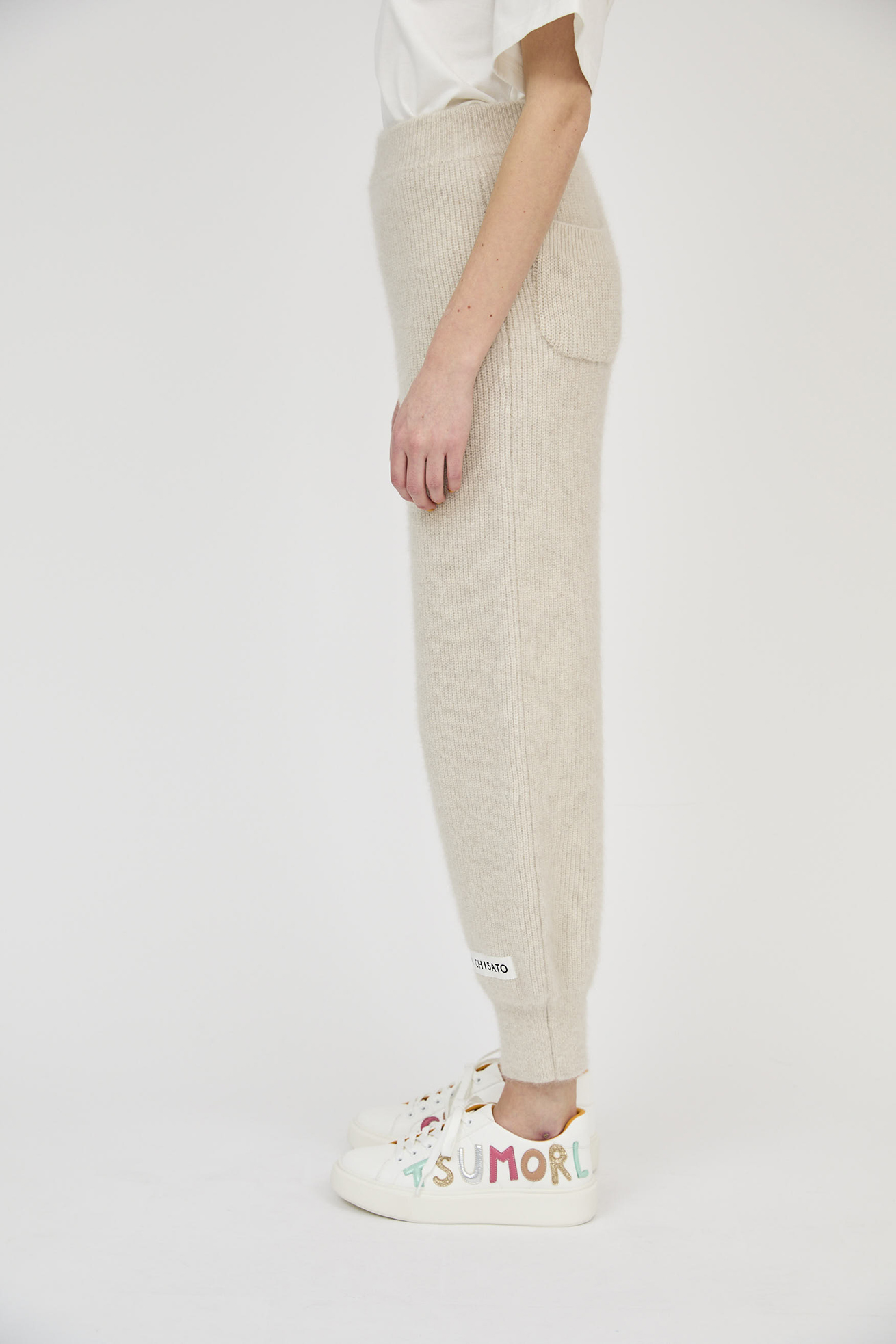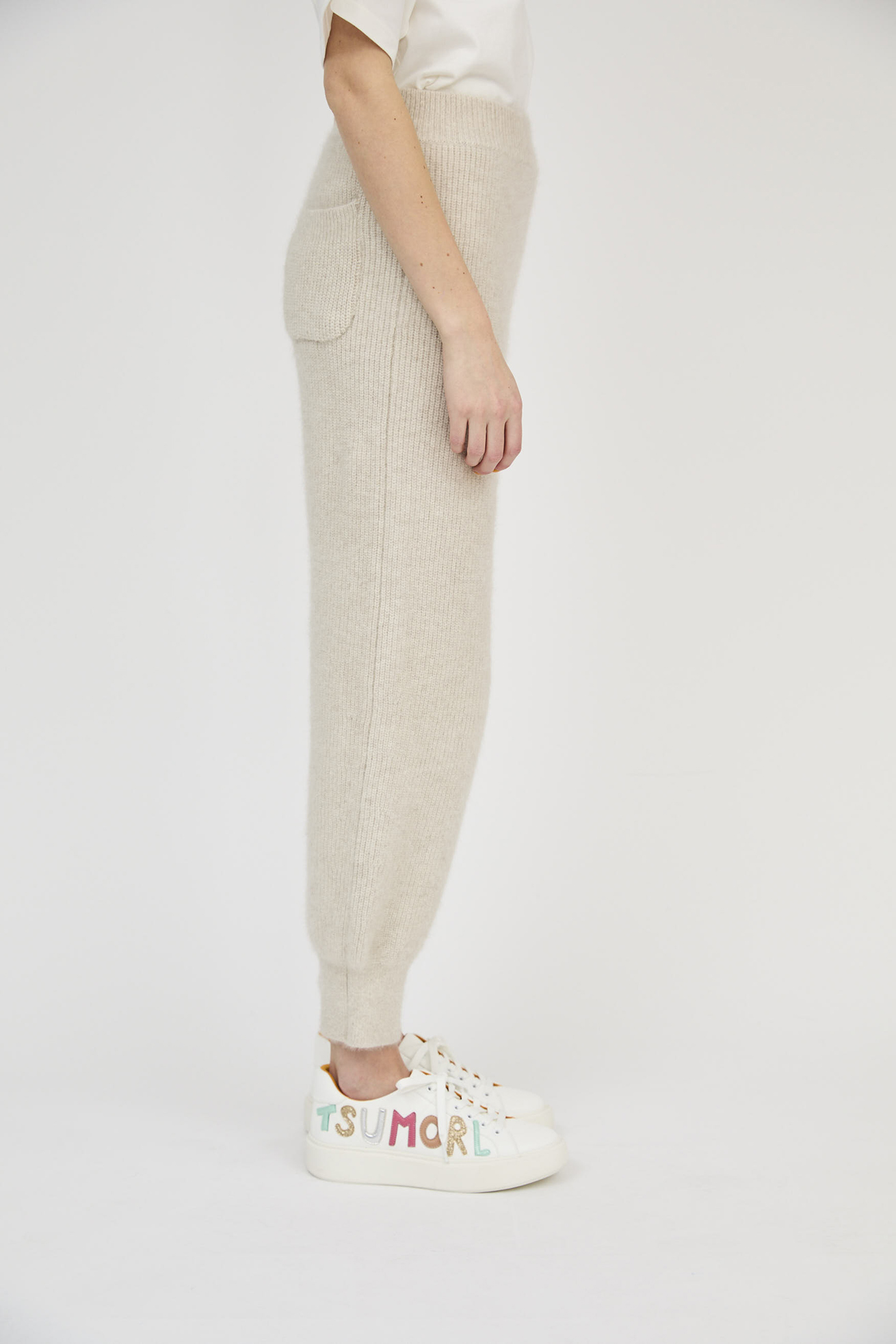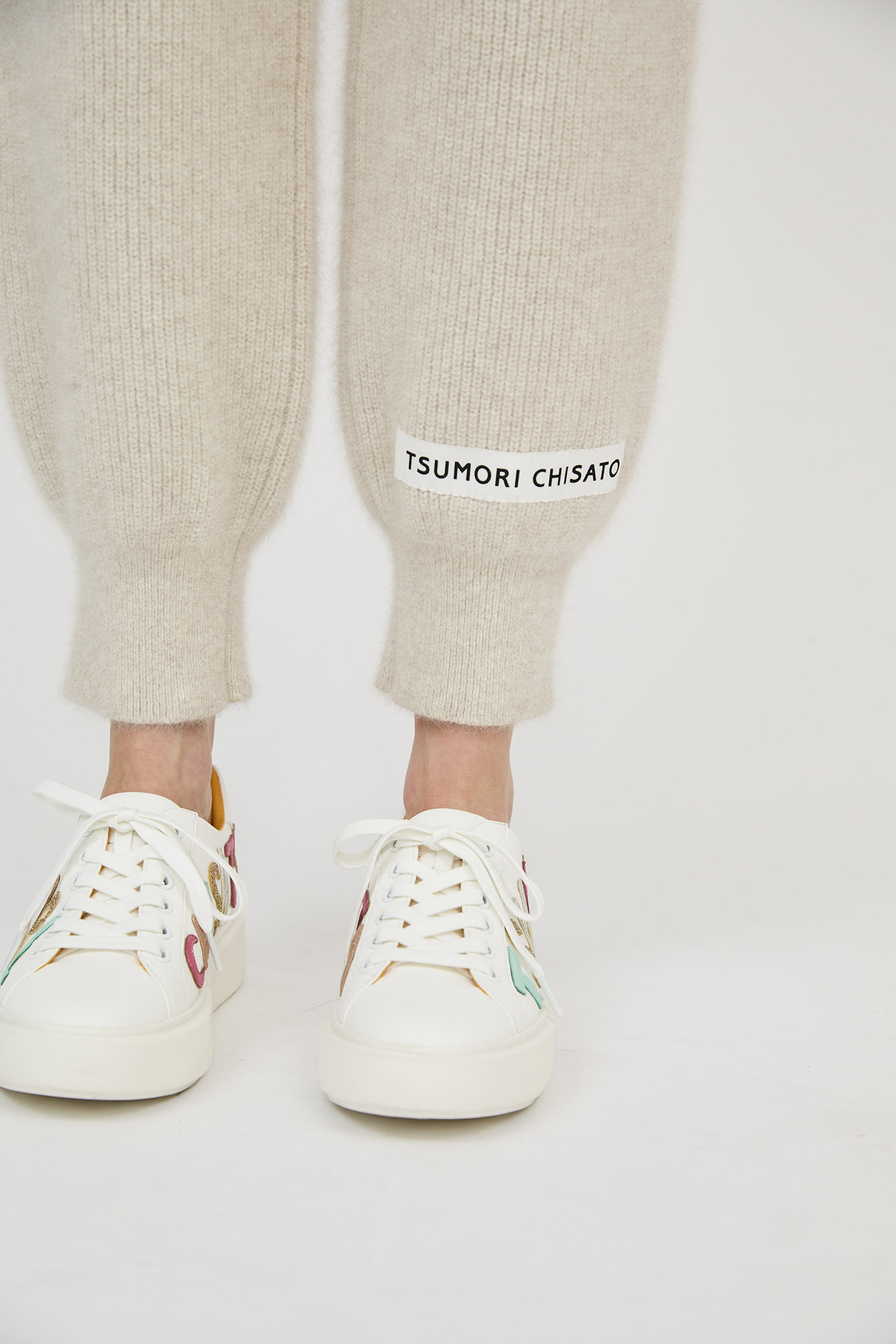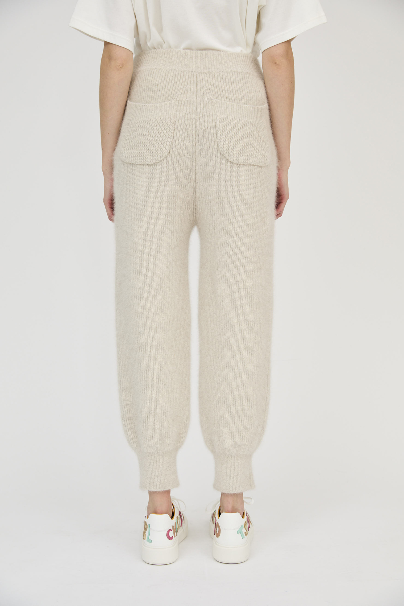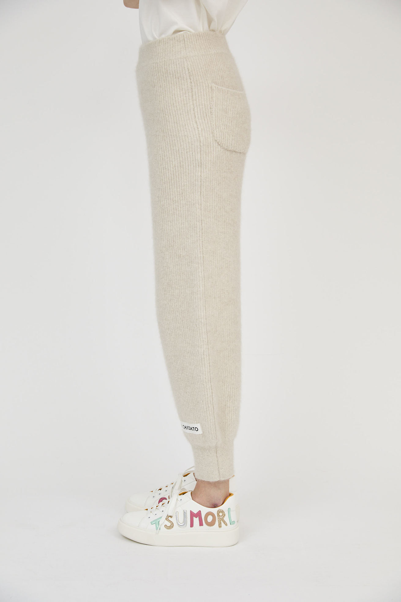 左裾のロゴテープがアクセントのニットパンツです。 素材感とふんわりとしたシルエットが大人かわいいアイテムです。 毛が柔らかく、へアリー感がありながら直接肌に触れても気持ちがよく、保温力の高さが特徴のブルーフォックスを使用しています。 オフホワイトはナチュラルカラー、ミント、ラベンダーは製品染めをしています。 ※着用モデル身長:172cm ※着用サイズ:2(M) ※当サイトの商品は実店舗と在庫を共有しており、ご注文完了後に商品を確保できない場合がございます。 その際、改めてキャンセルまたは数量変更のメールをお送りいたします。何卒ご了承いただけますと幸いです。