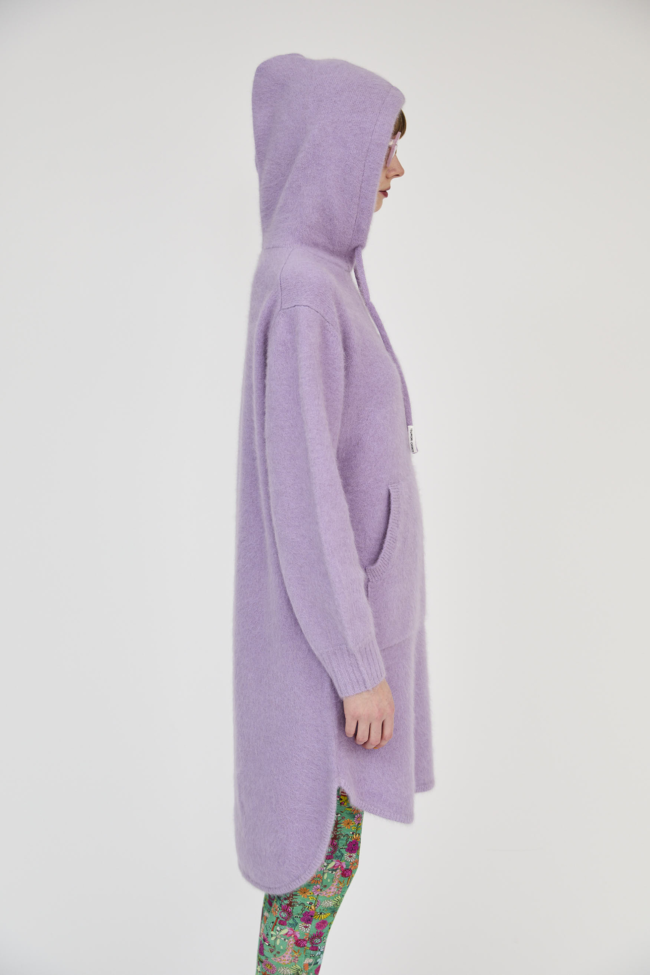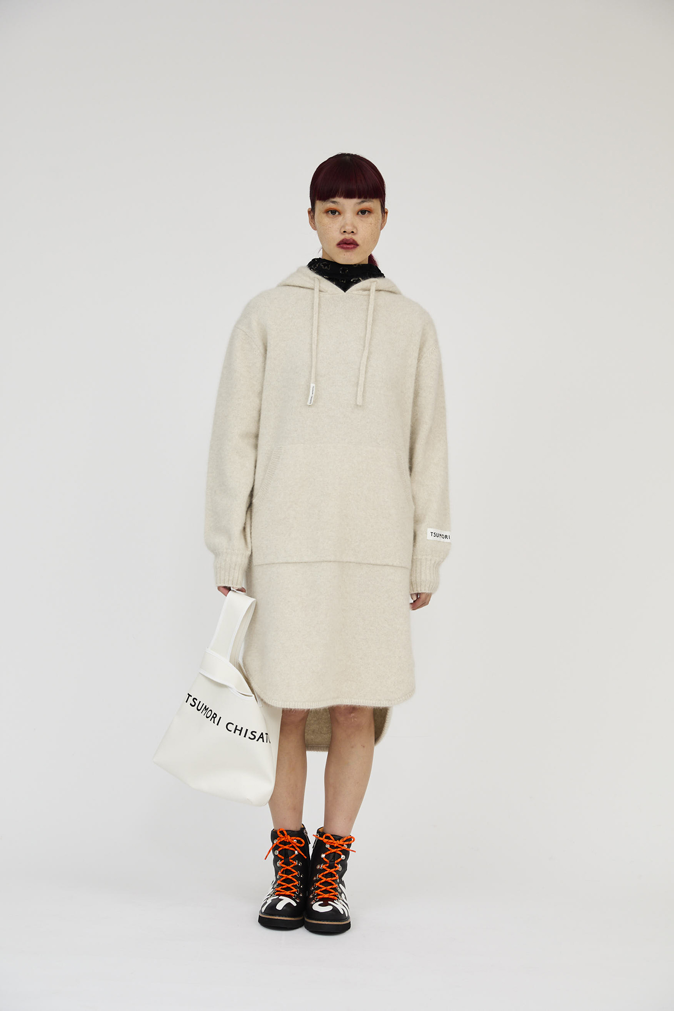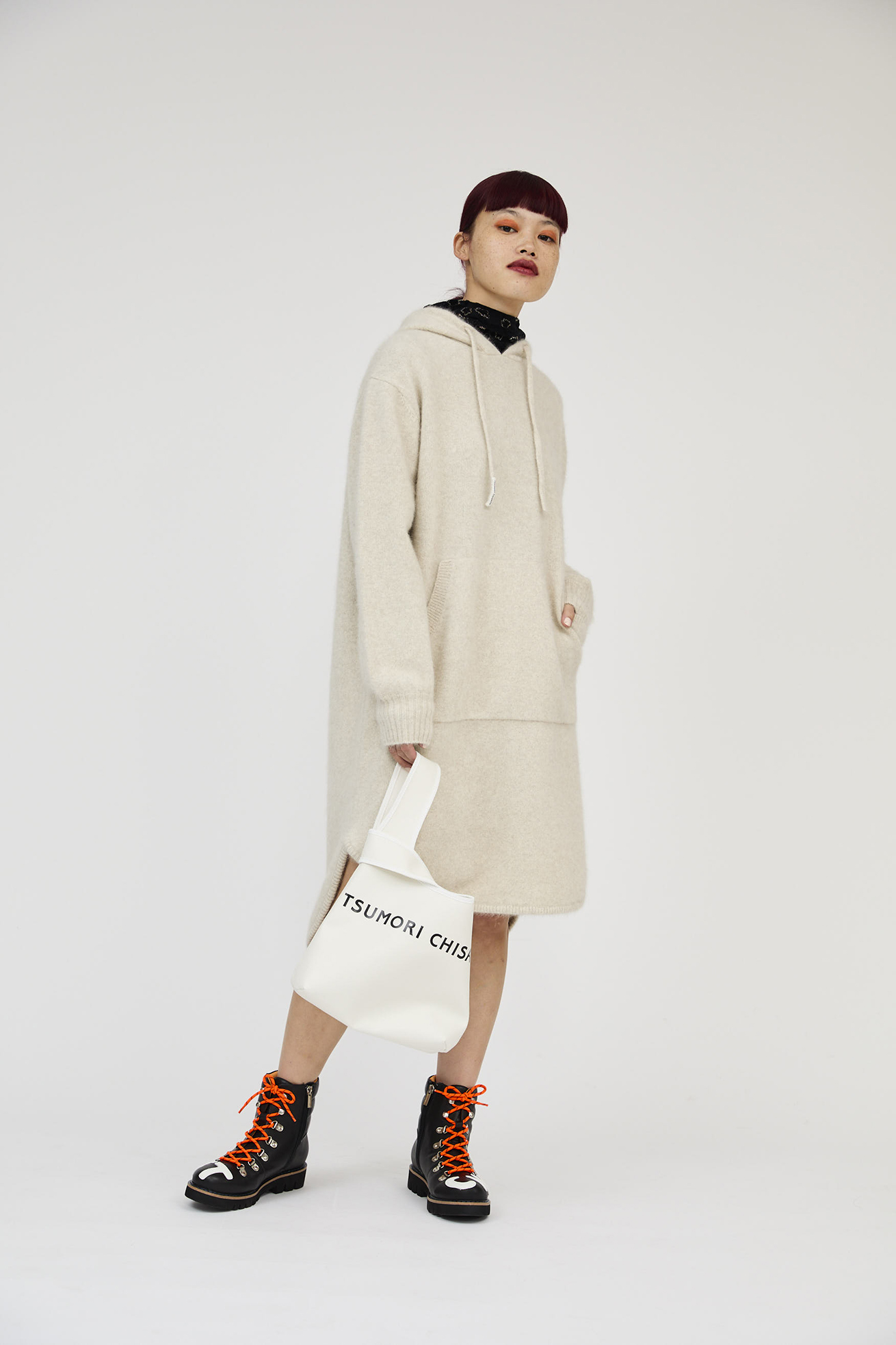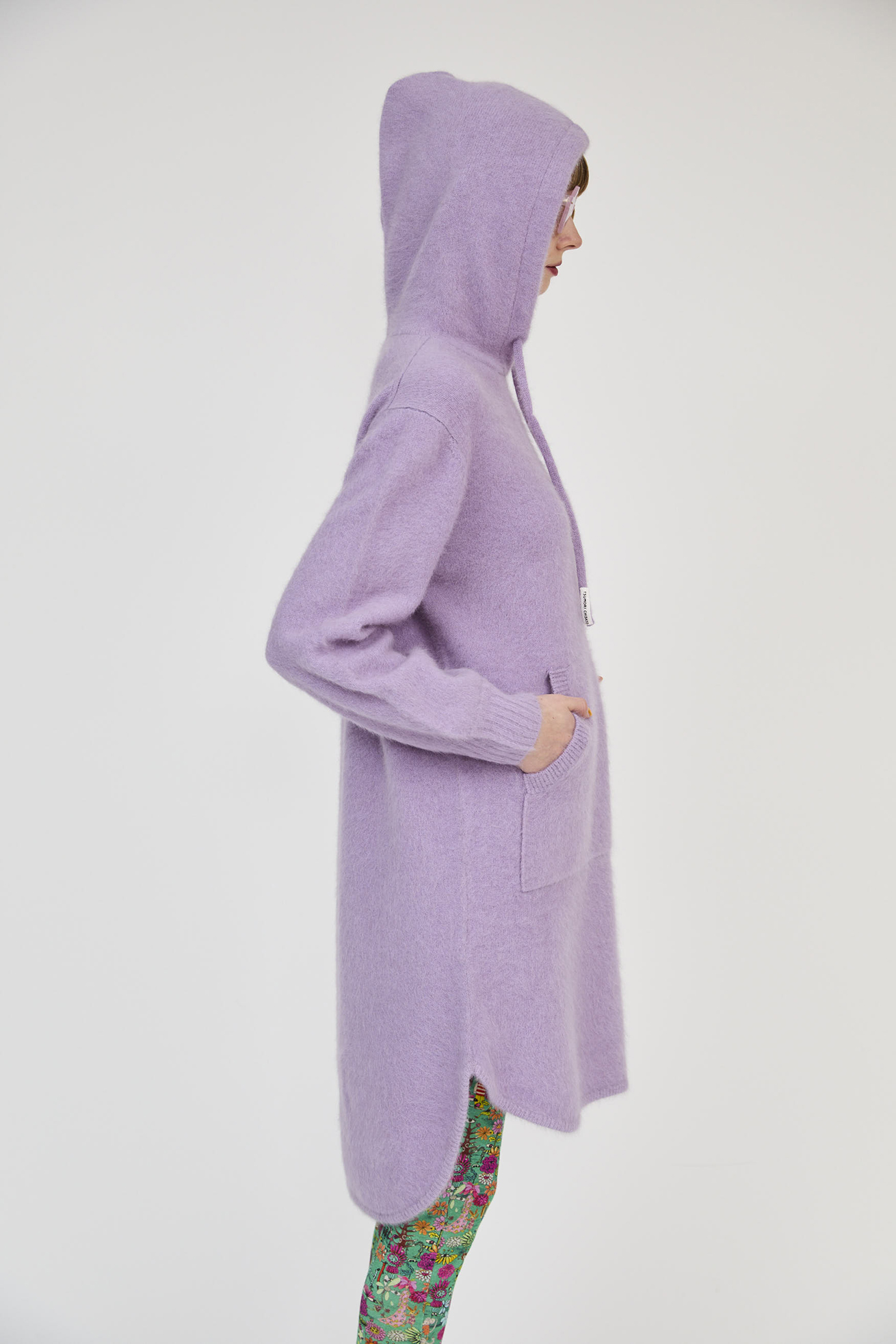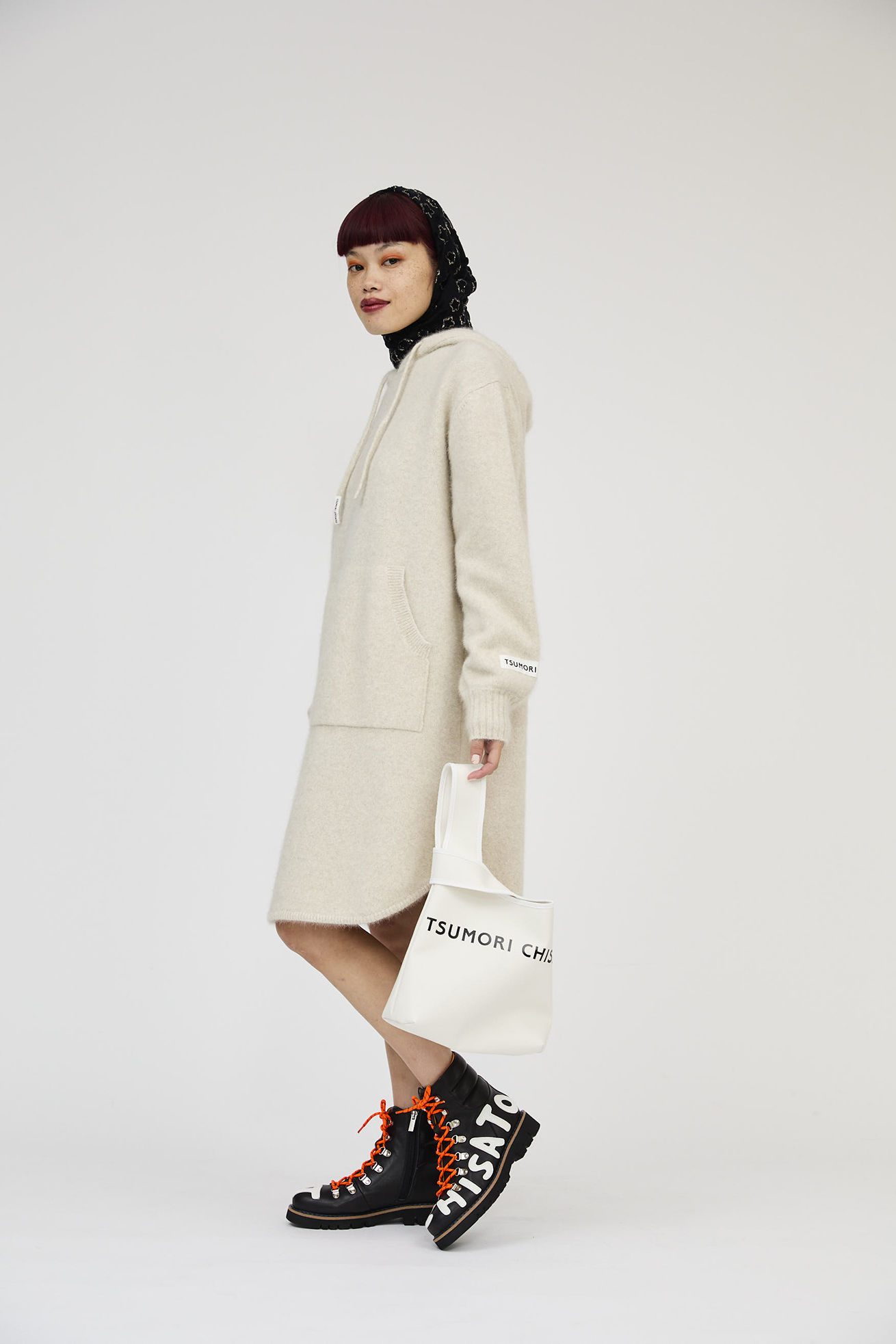 大きめのフードと深いスリット、前後差のある着丈がバランスのとりやすいニットワンピースです。 1枚でも、パンツやタイツと合わせても可愛いアイテムです。 袖のロゴテープとフロントの大きなポケットがアクセントに。 毛が柔らかく、へアリー感がありながら直接肌に触れても気持ちがよく、保温力の高さが特徴のブルーフォックスを使用しています。 オフホワイトはナチュラルなカラー、ミント、ラベンダーは製品染めをしています。 ※着用モデル身長 オフホワイト:160cm ラベンダー:172cm ※着用サイズ: 2(M) ※当サイトの商品は実店舗と在庫を共有しており、ご注文完了後に商品を確保できない場合がございます。 その際、改めてキャンセルまたは数量変更のメールをお送りいたします。何卒ご了承いただけますと幸いです。