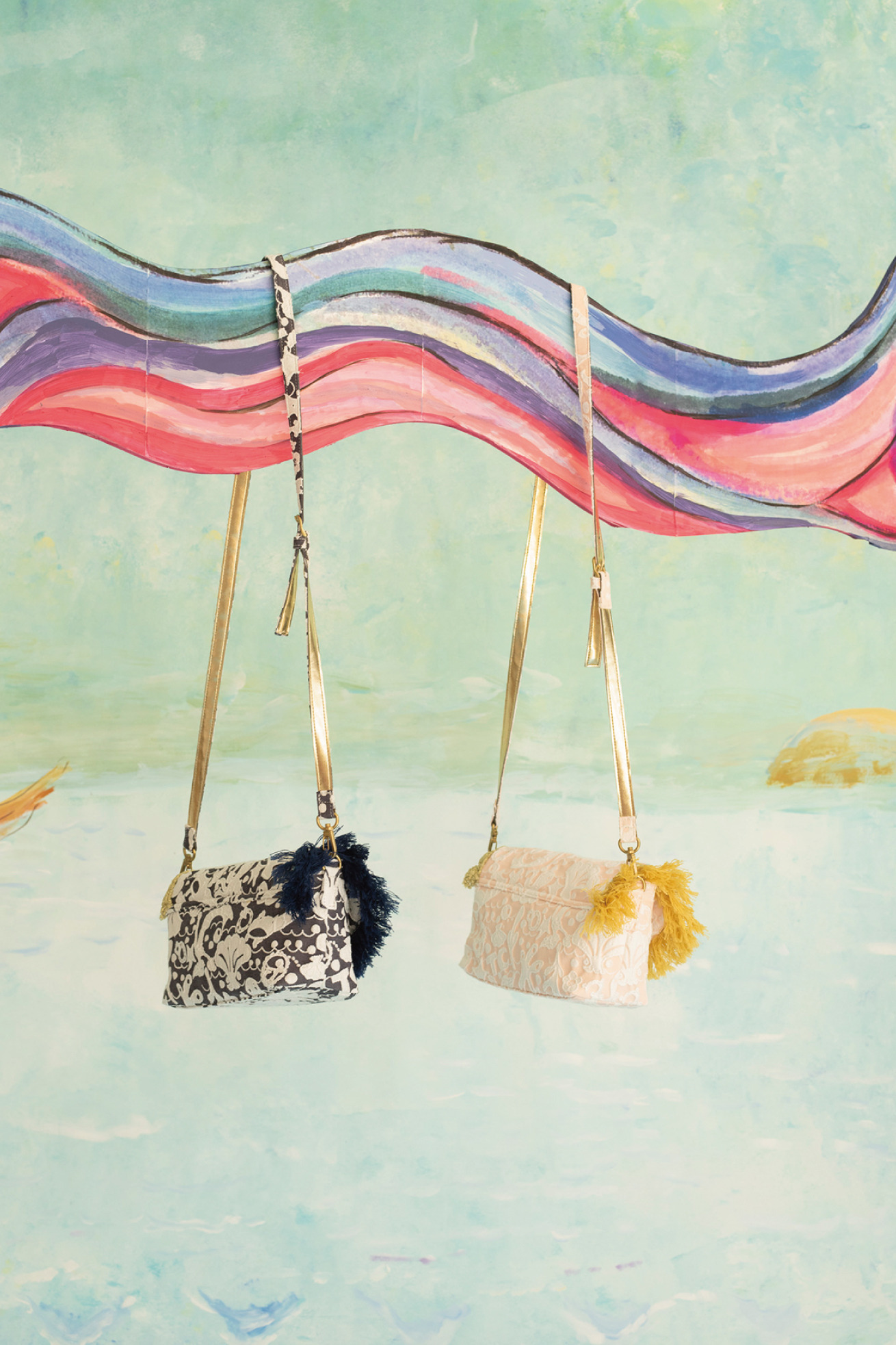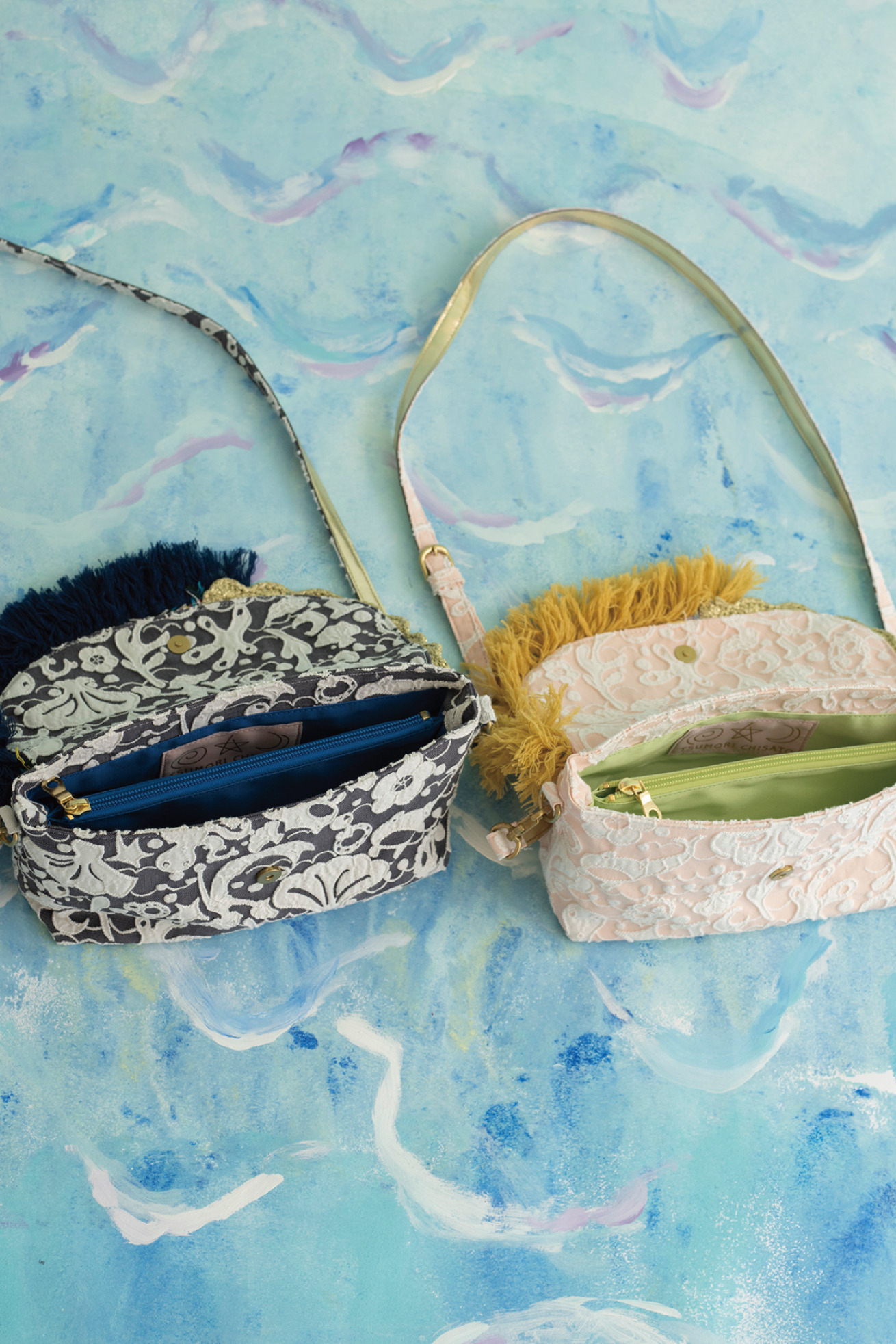 Sea lace JQを使用したショルダーバッグです。 上蓋のフリンジ テープと、手編みのかぎ針編みテープがアクセント。 内側は仕切りがあり、中央にファスナー付きポケットが付いた使いやすいバッグです。 ショルダーは、3段階の長さ調節が可能。 東京都で製作しています。 【生地の特徴】 海の波間に踊るように浮かぶ、人魚、ネコ魚、貝、ヒトデ、リング。 人魚のようなネコがいたら、、、という発想から今シーズンの新キャラクターとしてネコ魚が登場しています。 繊細な立体感で、レースのような織り方が特徴的なジャカードで表現しました。 軽く、シワになりにくい素材感、ゴージャスな凹凸感のテキスタイルです。 群馬県桐生市で織っています。 ※当サイトの商品は実店舗と在庫を共有しており、ご注文完了後に商品を確保できない場合がございます。 その際、改めてキャンセルまたは数量変更のメールをお送りいたします。何卒ご了承いただけますと幸いです。