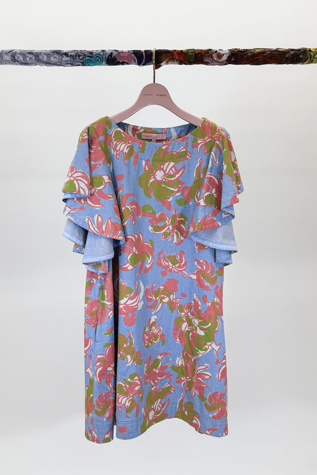 ラッフルスリーブが特徴的なAラインワンピースです。 脇は共地を合わせ開き過ぎない仕様になっており、1枚でも着やすくなっています。 夏のコーディネートにぴったりな色合いとシルエットが可愛いアイテムです。 両サイドポケット付き。 こちらの商品は手洗い可能です。 【プリント・生地の特徴】 花のようなライオンのたてがみや、花のような羽根を持った楽しい動物たちを、3色のローラープリントで表現しました。 どこかレトロで懐かしい雰囲気のニュアンスカラーがポイントです。 8オンスのデニムに広島県の染工場で顔料プリントしています。 ワンウォッシュ加工をして天日干しをし、パリッとした風合いを残して仕上げています。 縫製、製品加工は岡山県倉敷市の工場で行っています。 ※着用モデル身長:160cm ※着用サイズ: 2(M) ※当サイトの商品は実店舗と在庫を共有しており、ご注文完了後に商品を確保できない場合がございます。 その際、改めてキャンセルまたは数量変更のメールをお送りいたします。何卒ご了承いただけますと幸いです。