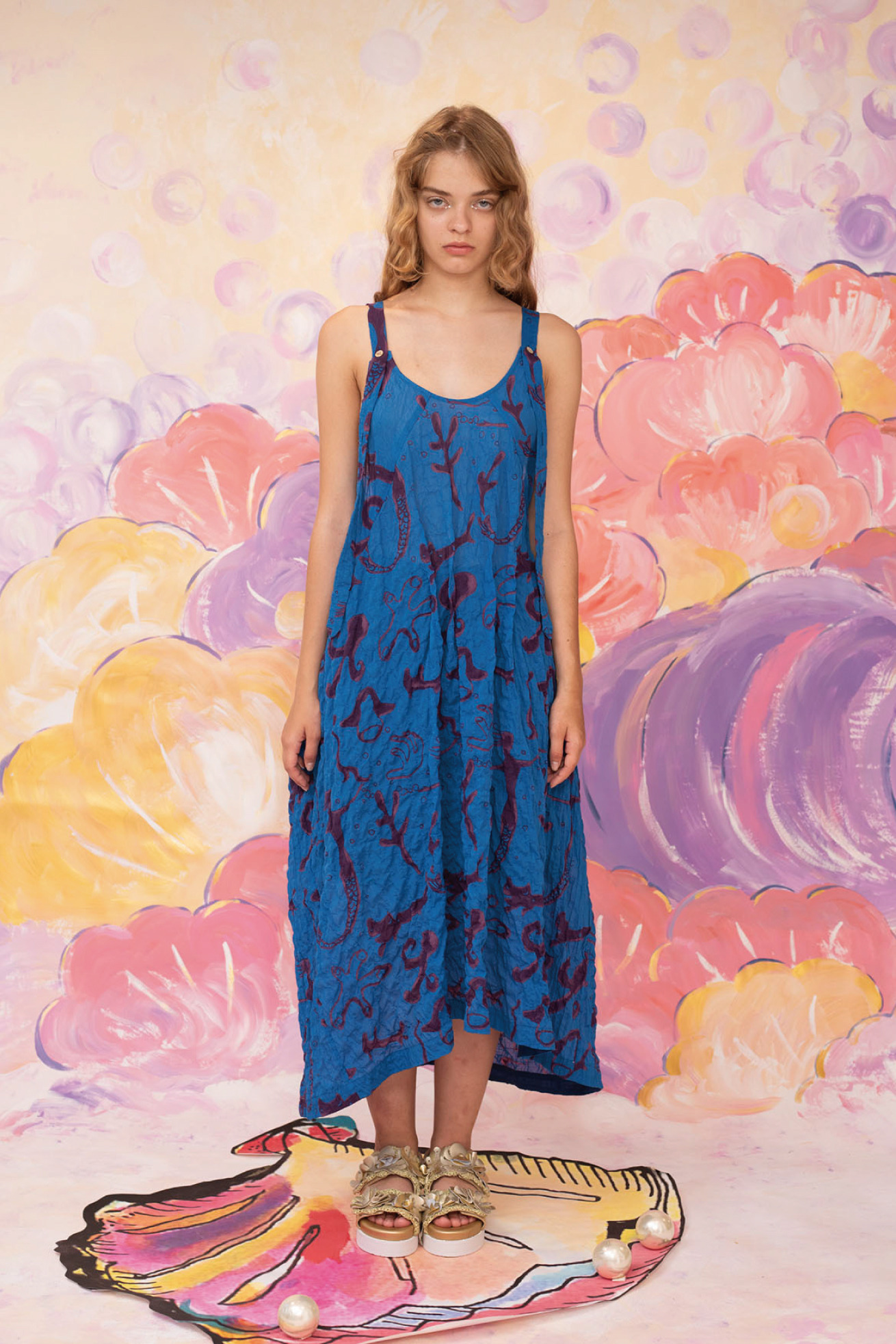 Sea paradise print生地独特の凸凹感と軽さが涼しげなサロペットスカートです。 フロントウエスト付近に大き目のつまみタックを入れることで、スカートのシルエットに立体感を出しています。 肩ひもはボタンで調整ができます。 両サイドにスラッシュポケットが付いているのもポイントです。 インナースカートが付きます。 こちらの商品は手洗い可能です。 【プリント・生地の特徴】 海の泡で遊ぶように泳ぐ人魚、ねこ、わかめ、たこ、ひとでなどのシルエット。 浮遊感のある手描きタッチをそのまま、シルクスクリーンのハンドプリントで表現しました。 下生地は部分的に縮む糸を使用した、少し透け感のあるコットン素材で、さらっとした質感と凹凸感、軽さが特徴です。 横浜のプリント工場でプリントしています。 ※着用モデル身長:170cm ※着用サイズ: 2(M) ※当サイトの商品は実店舗と在庫を共有しており、ご注文完了後に商品を確保できない場合がございます。 その際、改めてキャンセルまたは数量変更のメールをお送りいたします。何卒ご了承いただけますと幸いです。
