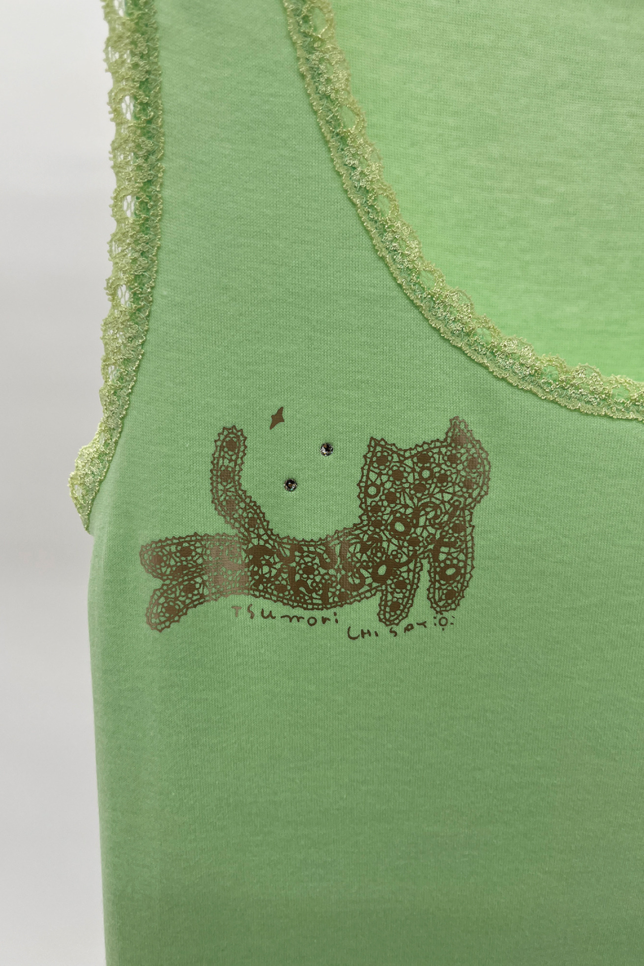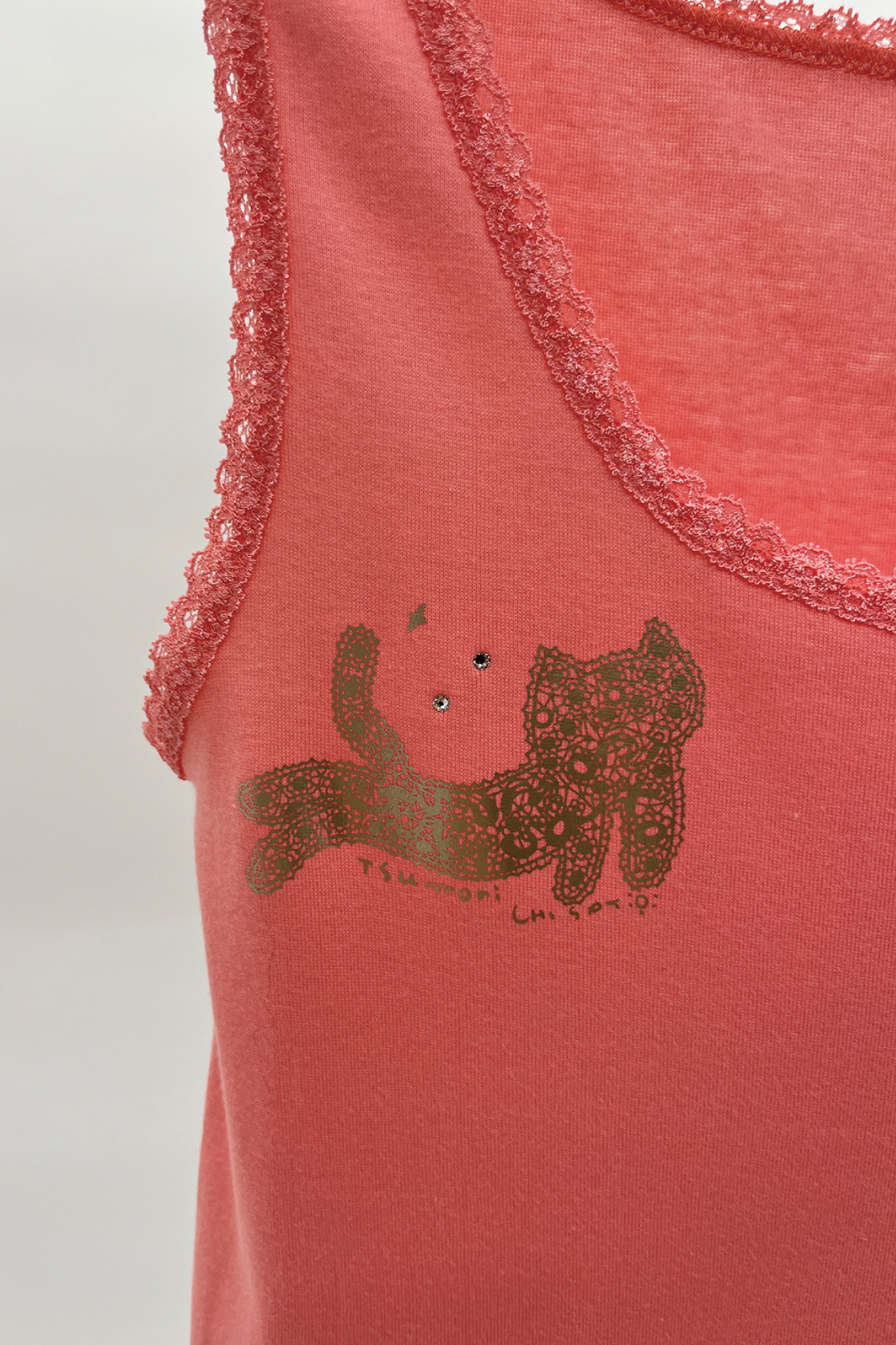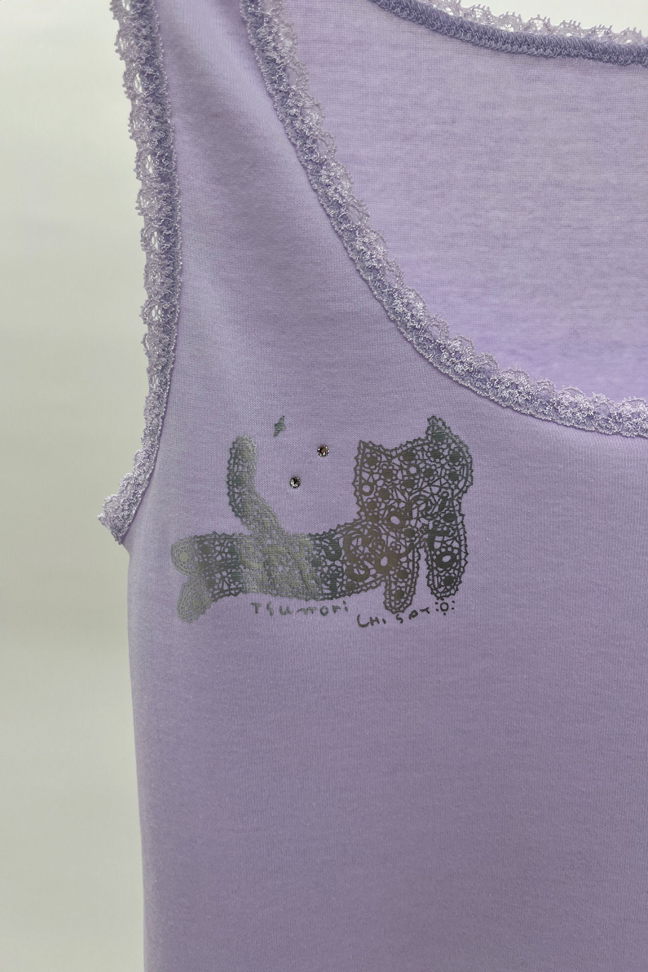 定番のプリモアシリーズが復活! さり気ないレース使いもポイントのタンクトップです。 伸縮性と柔らかい肌触りはそのままに、以前よりも少し生地に厚みを出しています。 2024SSシーズンはキラネコモチーフを箔プリントで表現しました。 こちらの商品は手洗い可能です。 ※当サイトの商品は実店舗と在庫を共有しており、ご注文完了後に商品を確保できない場合がございます。 その際、改めてキャンセルまたは数量変更のメールをお送りいたします。何卒ご了承いただけますと幸いです。