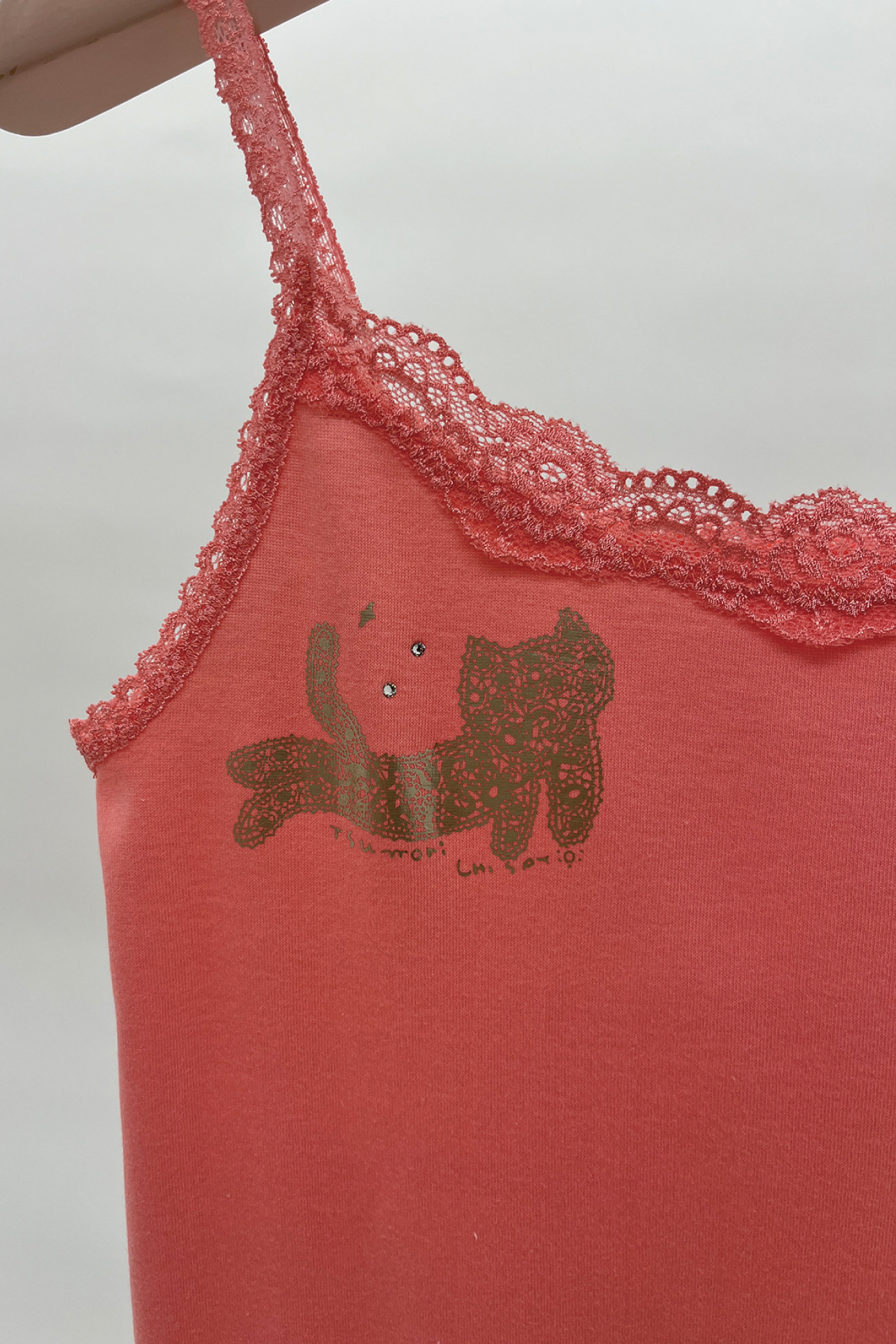 定番のプリモアシリーズが復活! 胸元のレース使いが可愛いキャミソールです。 伸縮性と柔らかい肌触りはそのままに、以前よりも少し生地に厚みを出しています。 2024SSシーズンはキラネコモチーフを箔プリントで表現しました。 こちらの商品は手洗い可能です。 ※当サイトの商品は実店舗と在庫を共有しており、ご注文完了後に商品を確保できない場合がございます。 その際、改めてキャンセルまたは数量変更のメールをお送りいたします。何卒ご了承いただけますと幸いです。
