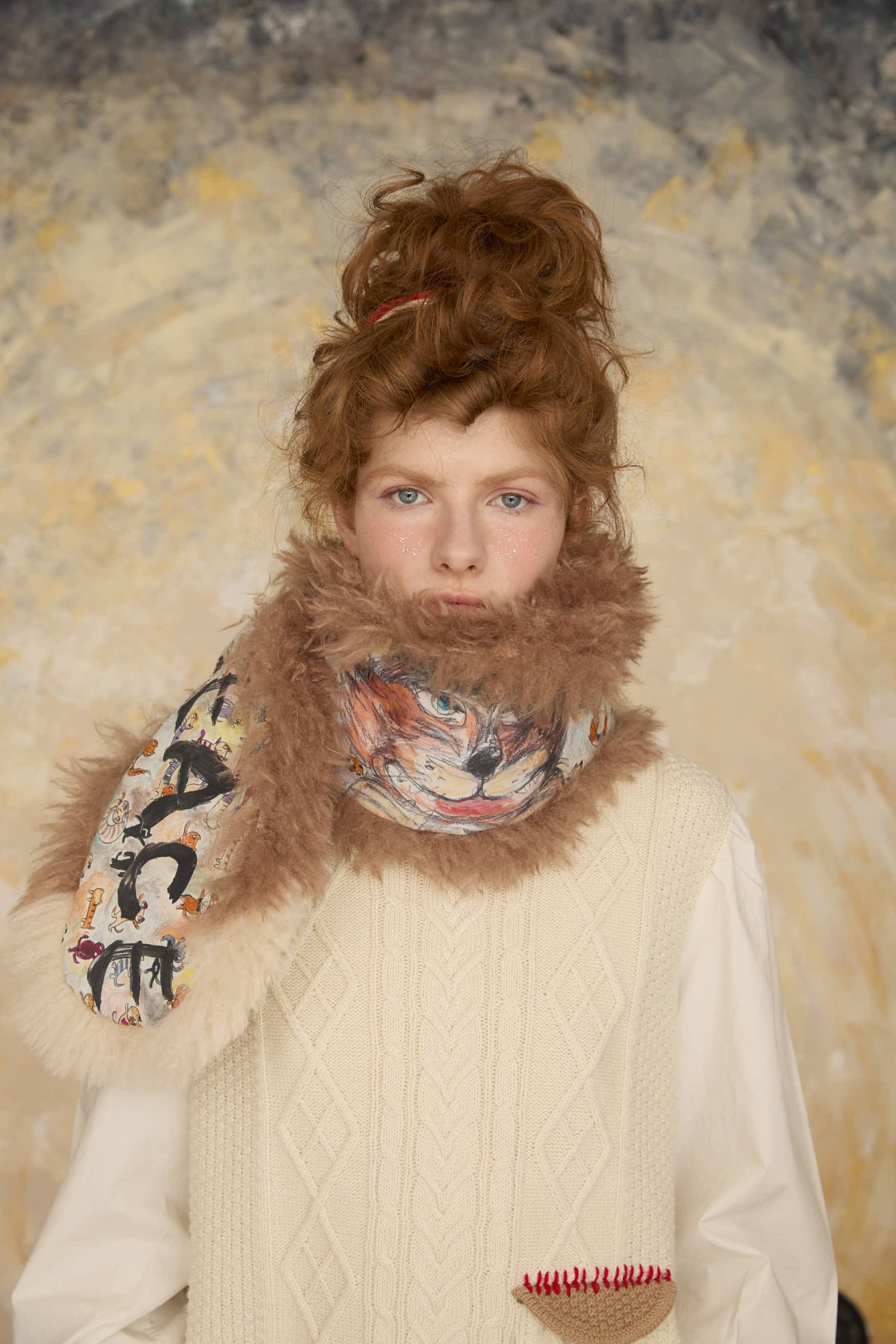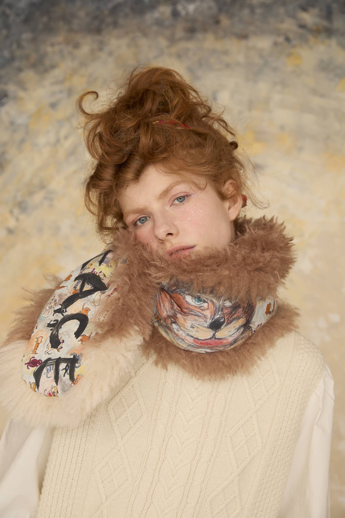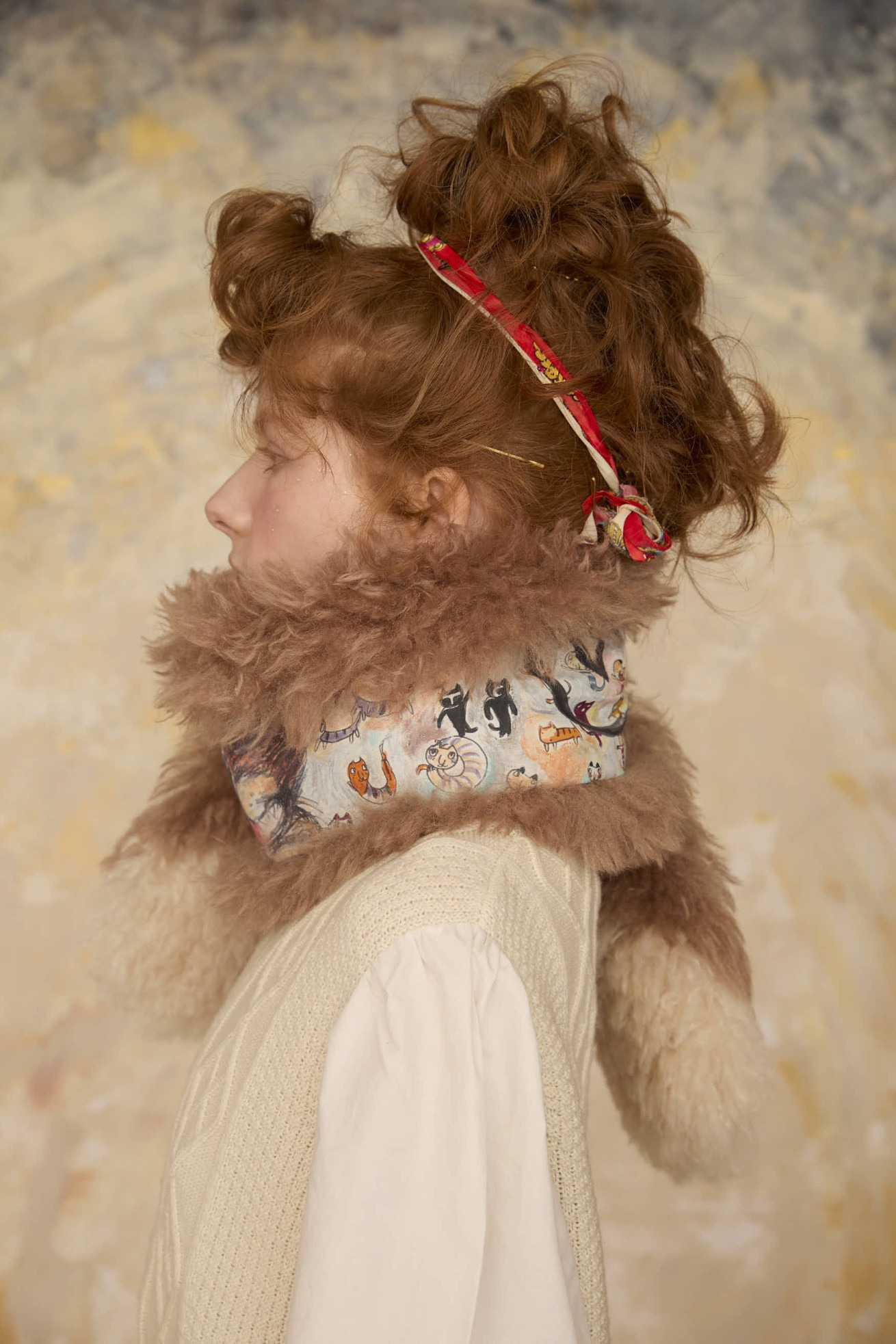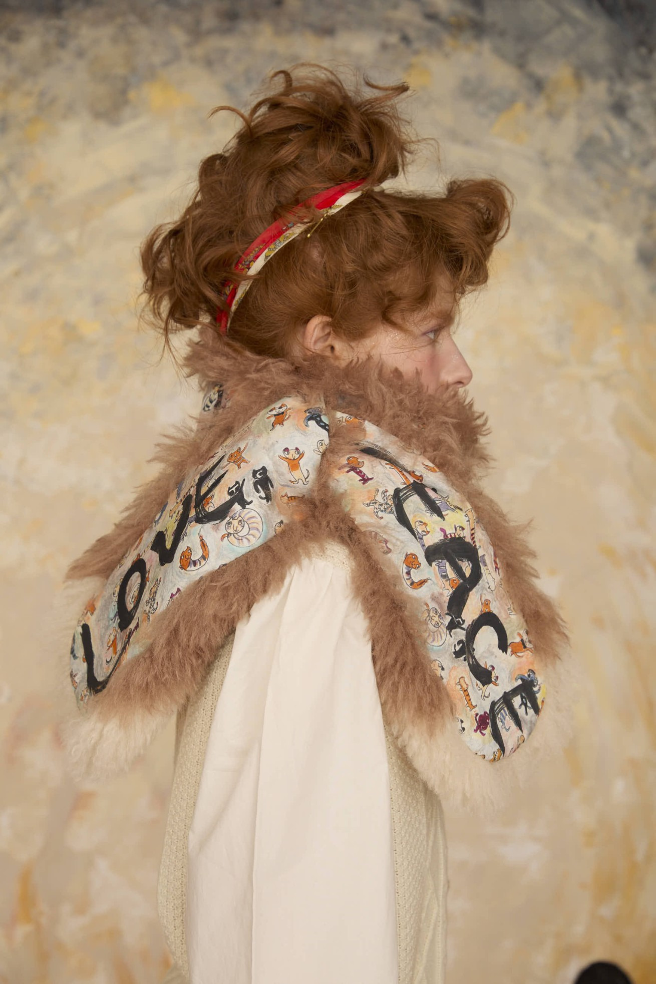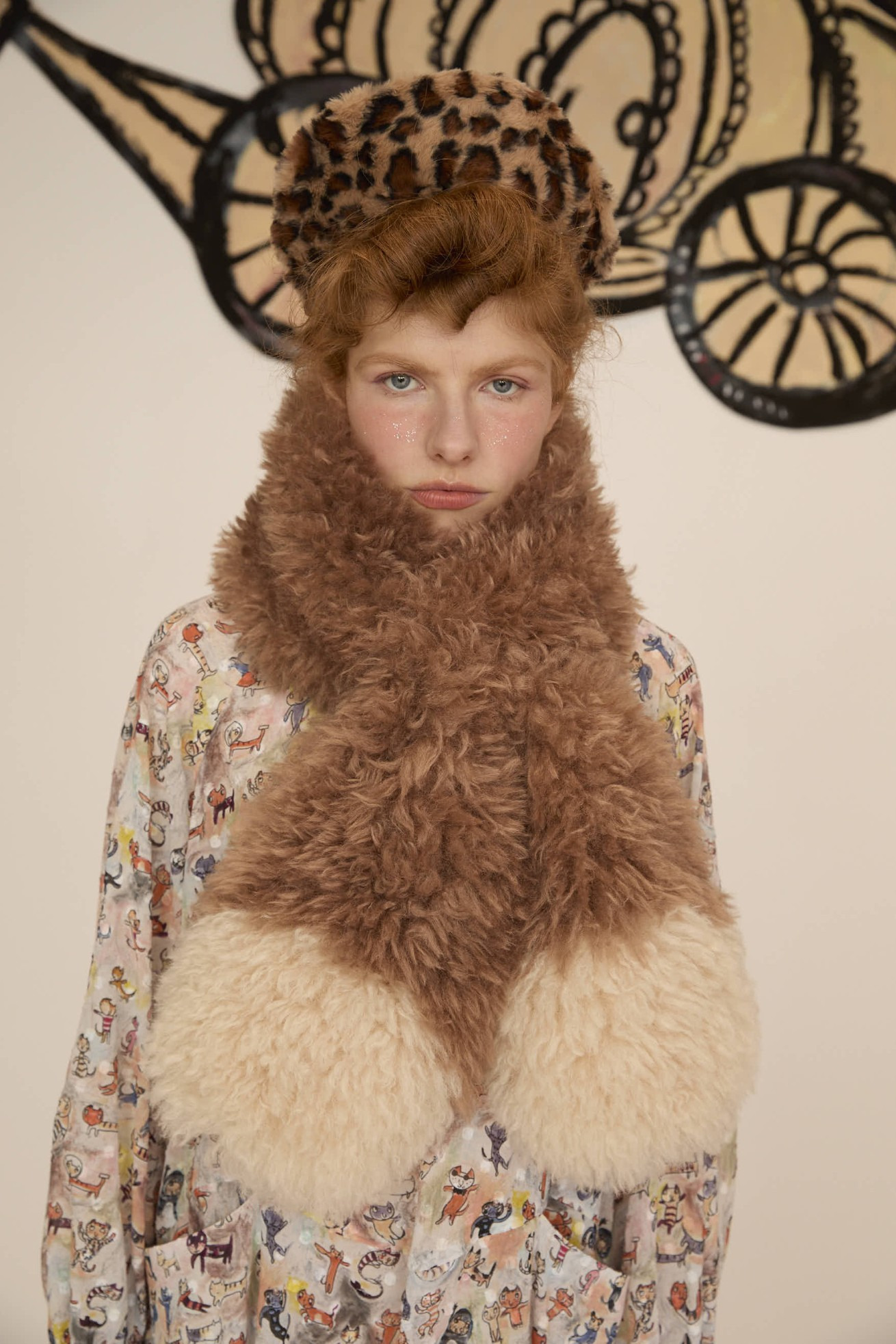 ファーのボリューム感と大きなねこ、LOVE、PEACEの文字がアクセントのリバーシブルマフラー。 プリント面にはmany funny cat's、ファー部分には毛足が長く細かなウェーブが入ったチベットラム風のフェイクファーを使用しています。 着用感が軽く、アレンジのしやすい大きさに仕上げています。 〈many funny cat's〉 踊ったり、歌ったり、スケボーしたり、フラダンスしたり、ぼーっとしたり、丸くなってみたり、文字になってみたりする、、、たくさんの楽しいネコたちを原画のタッチをそのままにインクジェットプリントで表現しました。 一匹一匹の猫をじっくりみたくなる、遊び心のあるテキスタイルです。大きな猫 の顔、ラフなタッチのサボテンや12時になりそうな時計、LOVEや雷、ネズミのシ ルエットがワイルドさを演出しています。サラサラとした肌触りで滑らかなシルクコットンの素材に中国でインクジェットプリントをしています。 ケア方法:ドライクリーニング ※当サイトの商品は実店舗と在庫を共有しており、ご注文完了後に商品を確保できない場合がございます。 その際、改めてキャンセルまたは数量変更のメールをお送りいたします。何卒ご了承いただけますと幸いです。