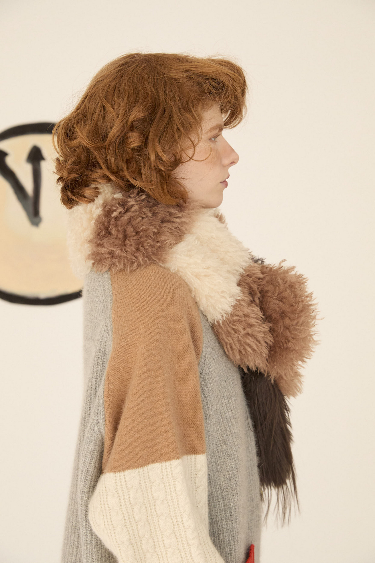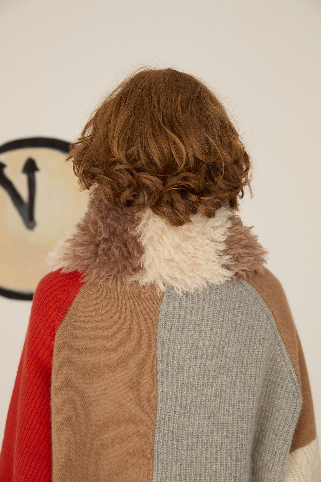 よくみると先端がネコの顔になっている、ファーのボリューム感がゴージャスで特別感のあるマフラー。 ファー部分には毛足が長く細かなウェーブが入ったチベットラム風のフェイクファーを使用しています。内側のクリップで留める仕様になっています。 ※着用モデル身長:170cm 173cm ※当サイトの商品は実店舗と在庫を共有しており、ご注文完了後に商品を確保できない場合がございます。 その際、改めてキャンセルまたは数量変更のメールをお送りいたします。何卒ご了承いただけますと幸いです。