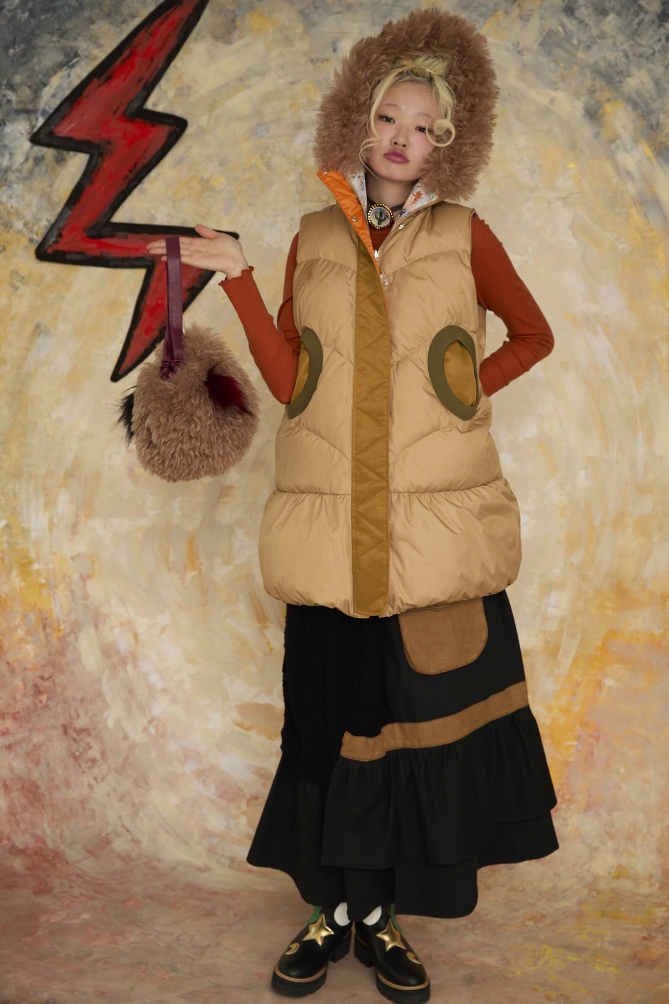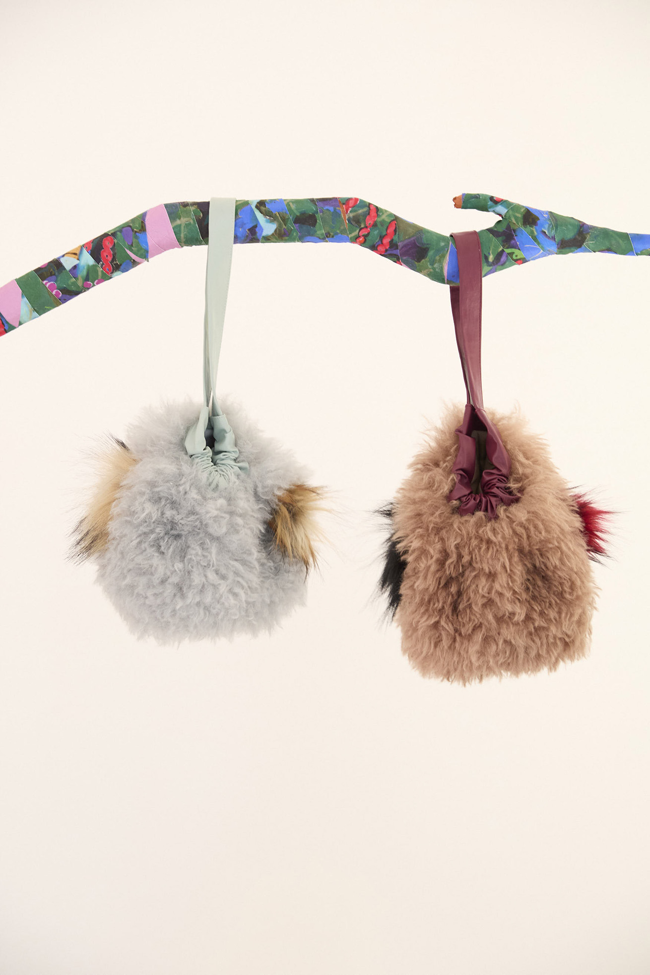 猫の顔をイメージしたフェイクファーのドローストリングバッグ。 片耳ずつカラーを変えて、TSUMORI CHISATOらしいカラーコンビネーションにしました。 毛足が長く、細かなウェーブが入ったチベットラム風のフェイクファーと、ストレートの毛が特徴的なラクーン風のフェイクファーを使用しています。 ハンドル部分は滑らかな合皮を使用しています。 ※着用モデル身長:174cm ※当サイトの商品は実店舗と在庫を共有しており、ご注文完了後に商品を確保できない場合がございます。 その際、改めてキャンセルまたは数量変更のメールをお送りいたします。何卒ご了承いただけますと幸いです。