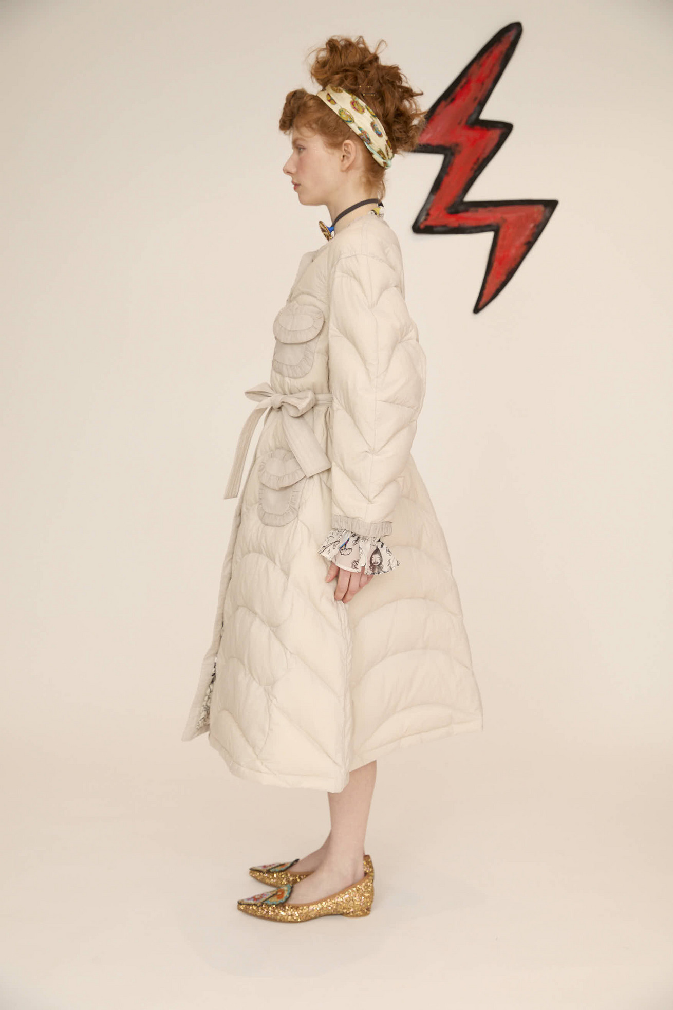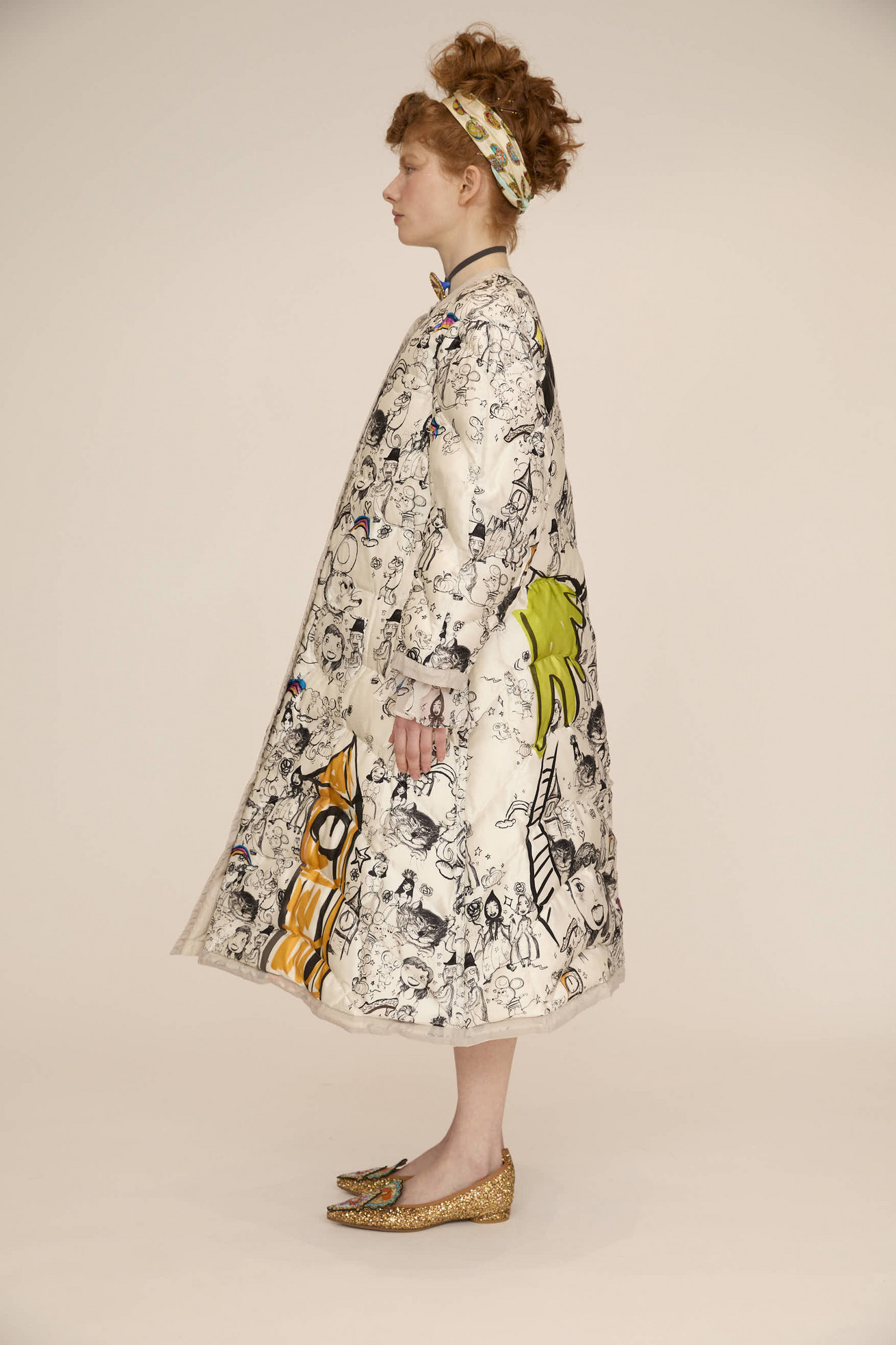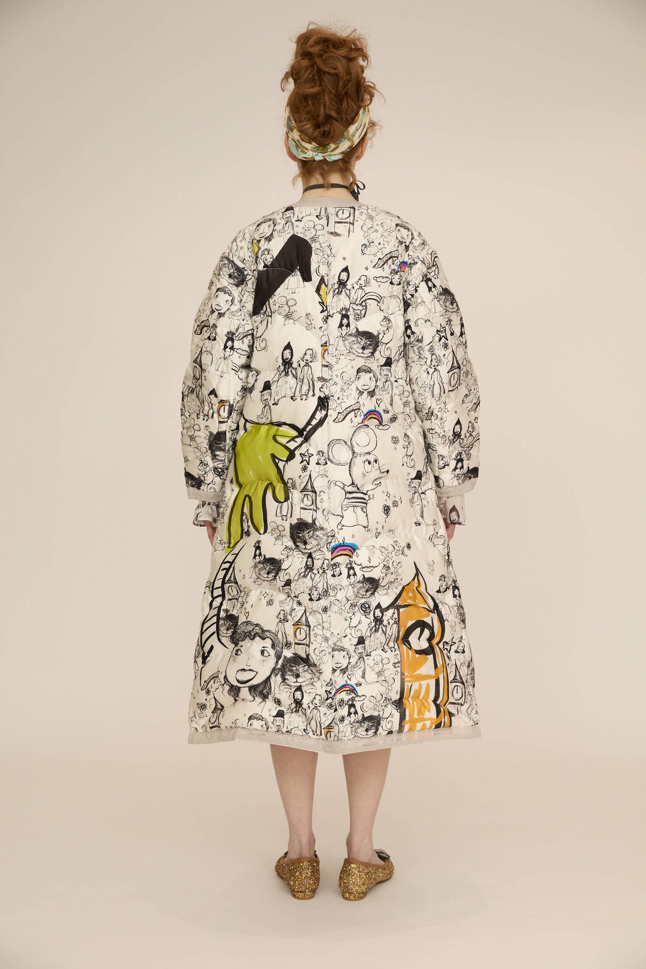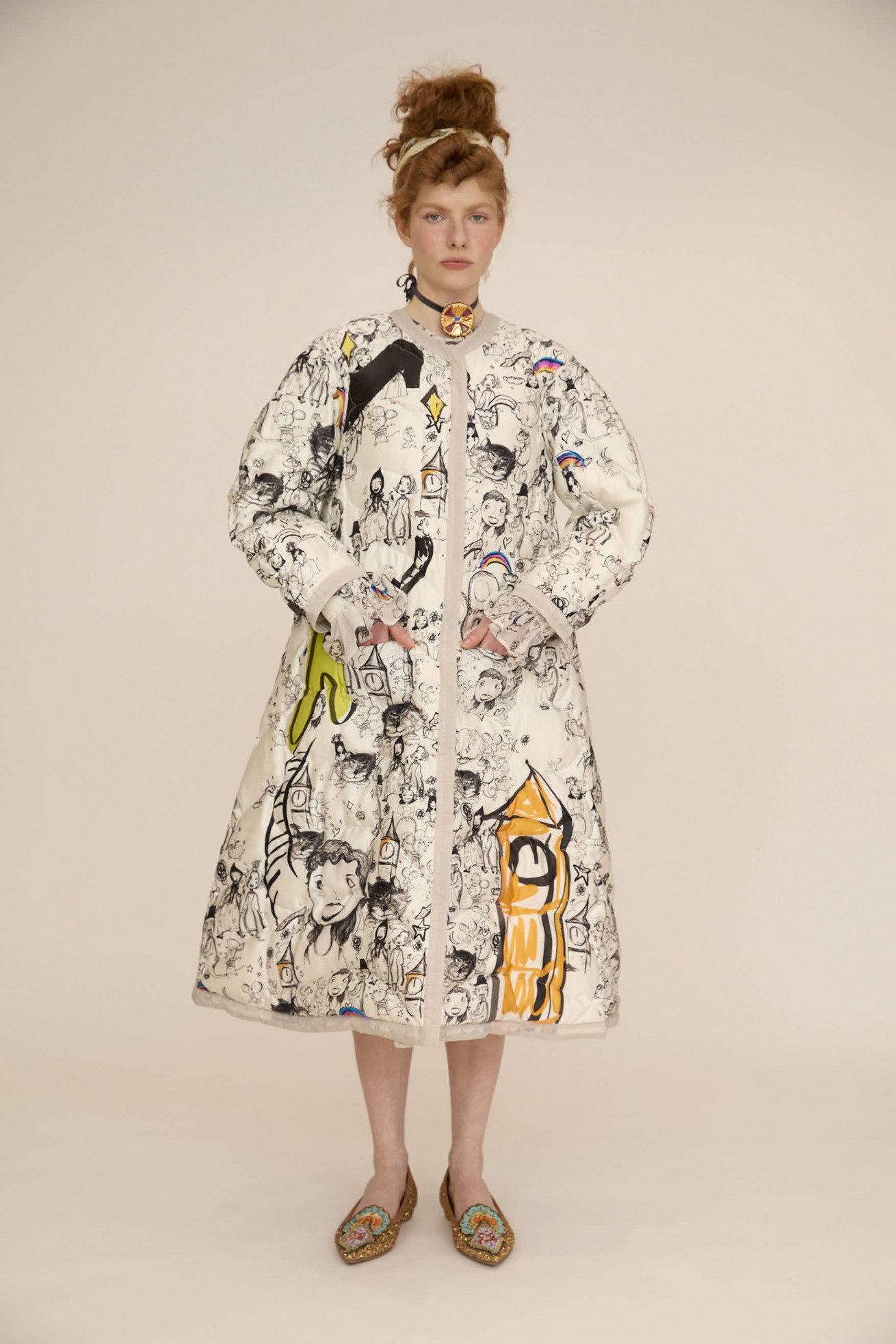 12 o'clock printと無地のタフタ生地を合わせたリバーシブルライトダウンです。 4つのハートポケット、全体のハートステッチはシンプルながら大人可愛いポイントです。 無地面の生地には、20デニールという極細のナイロン糸を使用し、高密度に織られたタフタ素材で、環境に配慮したリサイクルナイロンを使用しています。 サラッとして透明感があり、軽量でエアリーな風合いが特徴です。 生地の仕上げに特殊なタンブラー加工を施し、ヴィンテージのような細かいシボのある表面感に仕上げています。 撥水加工が施されているため、水滴がついても玉状になり水を弾く機能があります。 どちらを表にしてもシルエットがくずれず、全く違う雰囲気をお楽しみいただけます。 〈12 o'clock print〉 プリンセス、ねこ、ネズミ、魔法使いなどのキャラクターを散りばめて、大きな 階段やガラスの靴、時計台などをアクセントに大胆に配置しました。 モノトーンの中にイエローが映えるオフホワイト、かわいらしさとシックさのあるピンクの2色展開です。12時の時計台の音が聞こえてきそうなイメージのテキスタイルです。 滑らかで光沢感のあるシルクサテンに中国でプリントしています。 ケア方法:ドライクリーニング ※着用モデル身長:170cm ※着用サイズ: 2(M) ※当サイトの商品は実店舗と在庫を共有しており、ご注文完了後に商品を確保できない場合がございます。 その際、改めてキャンセルまたは数量変更のメールをお送りいたします。何卒ご了承いただけますと幸いです。