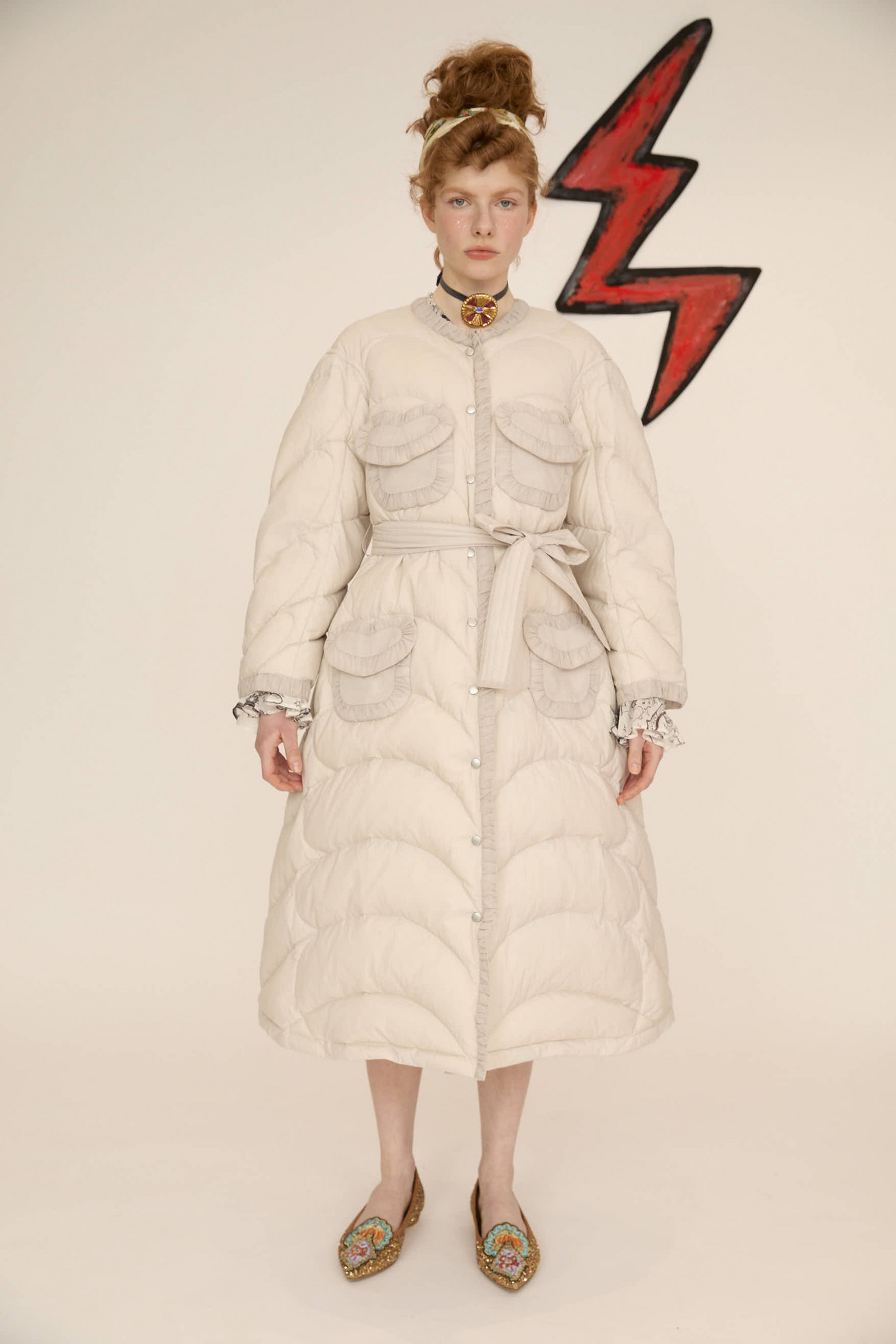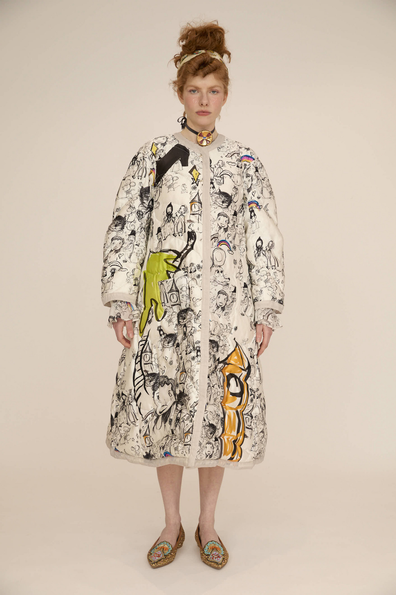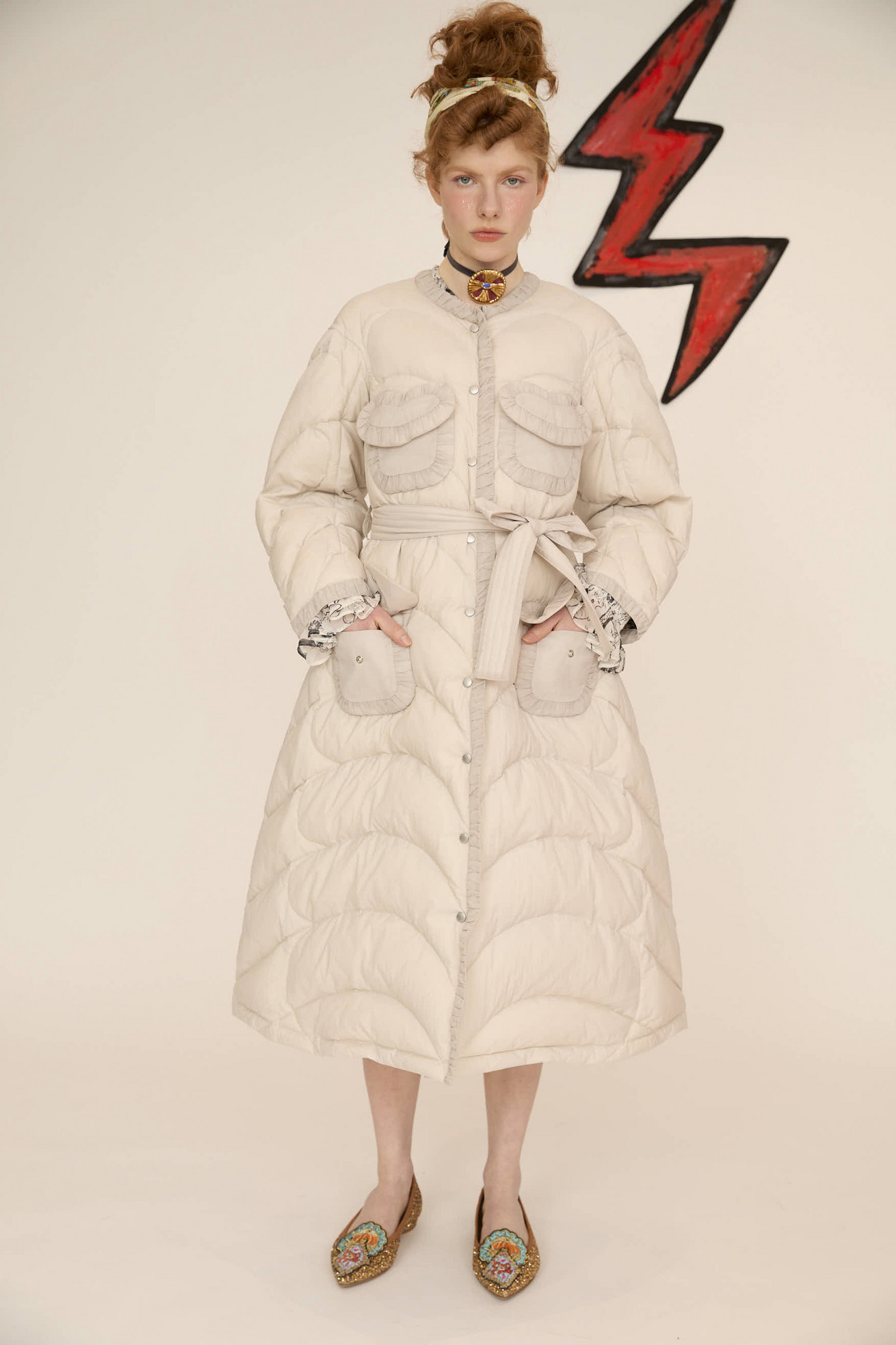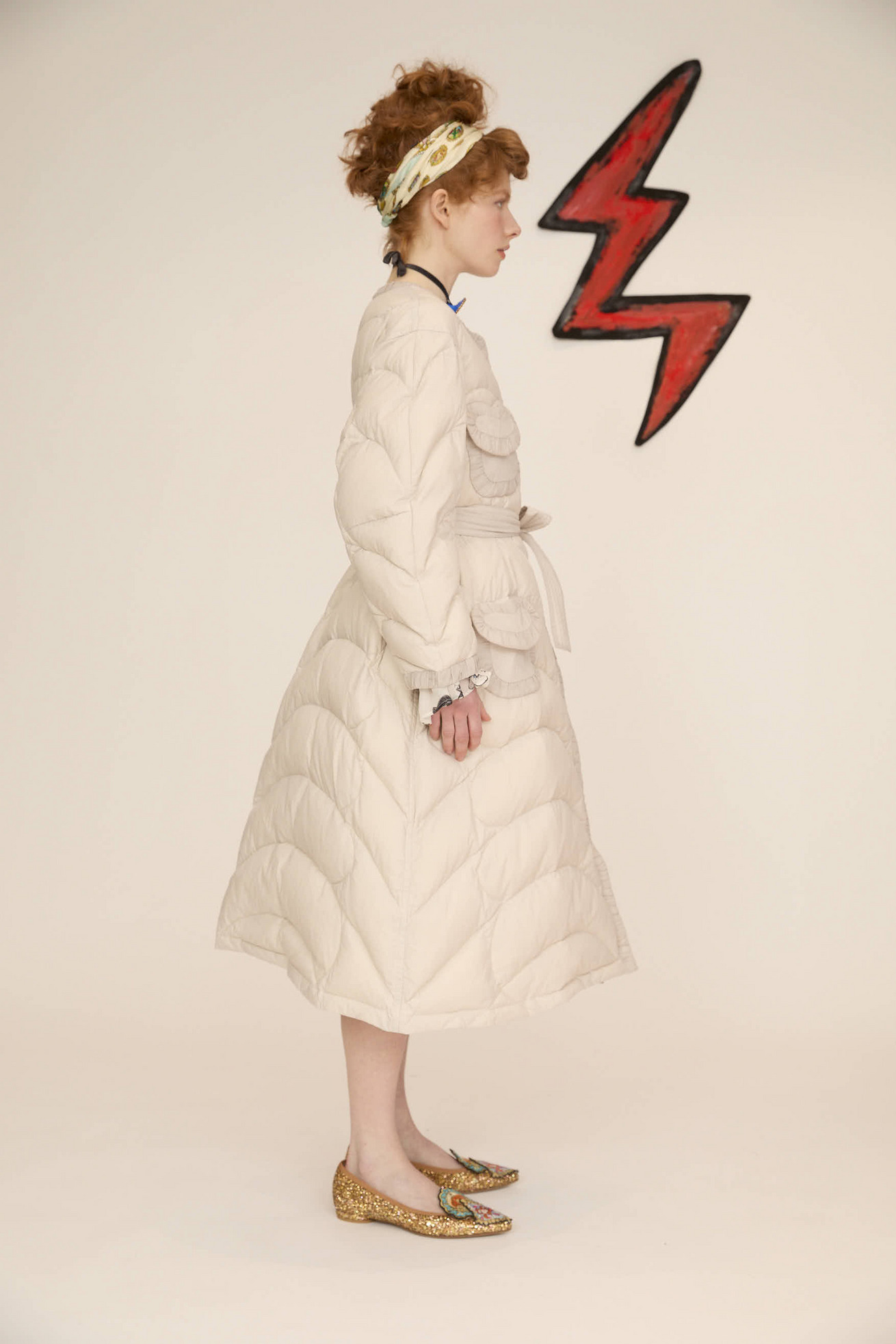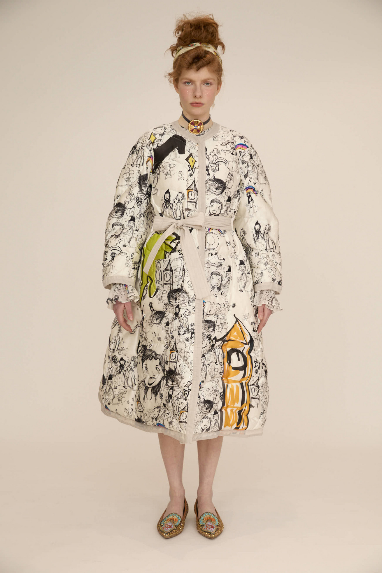 12 o'clock printと無地のタフタ生地を合わせたリバーシブルライトダウンです。 4つのハートポケット、全体のハートステッチはシンプルながら大人可愛いポイントです。 無地面の生地には、20デニールという極細のナイロン糸を使用し、高密度に織られたタフタ素材で、環境に配慮したリサイクルナイロンを使用しています。 サラッとして透明感があり、軽量でエアリーな風合いが特徴です。 生地の仕上げに特殊なタンブラー加工を施し、ヴィンテージのような細かいシボのある表面感に仕上げています。 撥水加工が施されているため、水滴がついても玉状になり水を弾く機能があります。 どちらを表にしてもシルエットがくずれず、全く違う雰囲気をお楽しみいただけます。 〈12 o'clock print〉 プリンセス、ねこ、ネズミ、魔法使いなどのキャラクターを散りばめて、大きな 階段やガラスの靴、時計台などをアクセントに大胆に配置しました。 モノトーンの中にイエローが映えるオフホワイト、かわいらしさとシックさのあるピンクの2色展開です。12時の時計台の音が聞こえてきそうなイメージのテキスタイルです。 滑らかで光沢感のあるシルクサテンに中国でプリントしています。 ケア方法:ドライクリーニング ※着用モデル身長:170cm ※着用サイズ: 2(M) ※当サイトの商品は実店舗と在庫を共有しており、ご注文完了後に商品を確保できない場合がございます。 その際、改めてキャンセルまたは数量変更のメールをお送りいたします。何卒ご了承いただけますと幸いです。