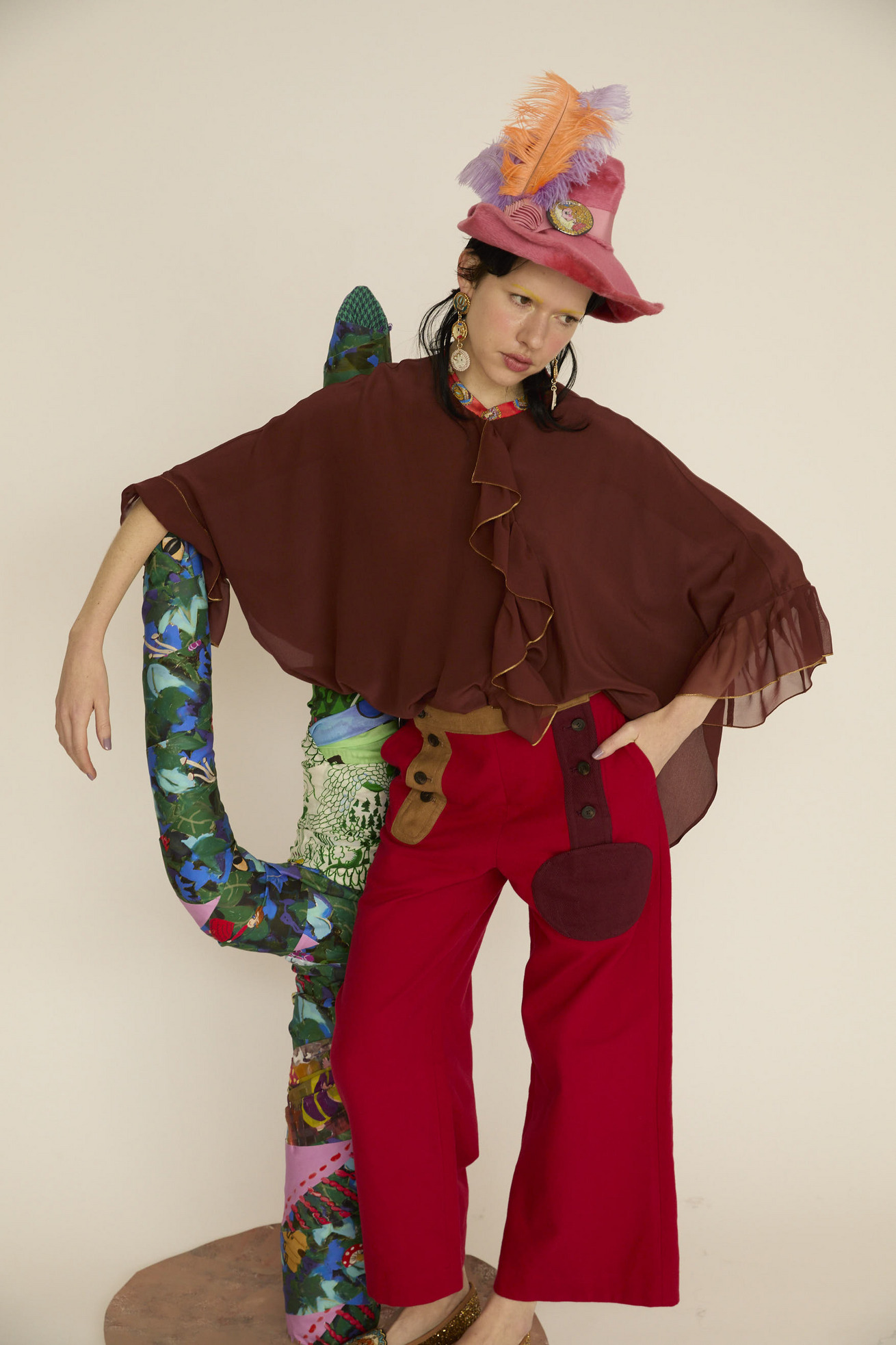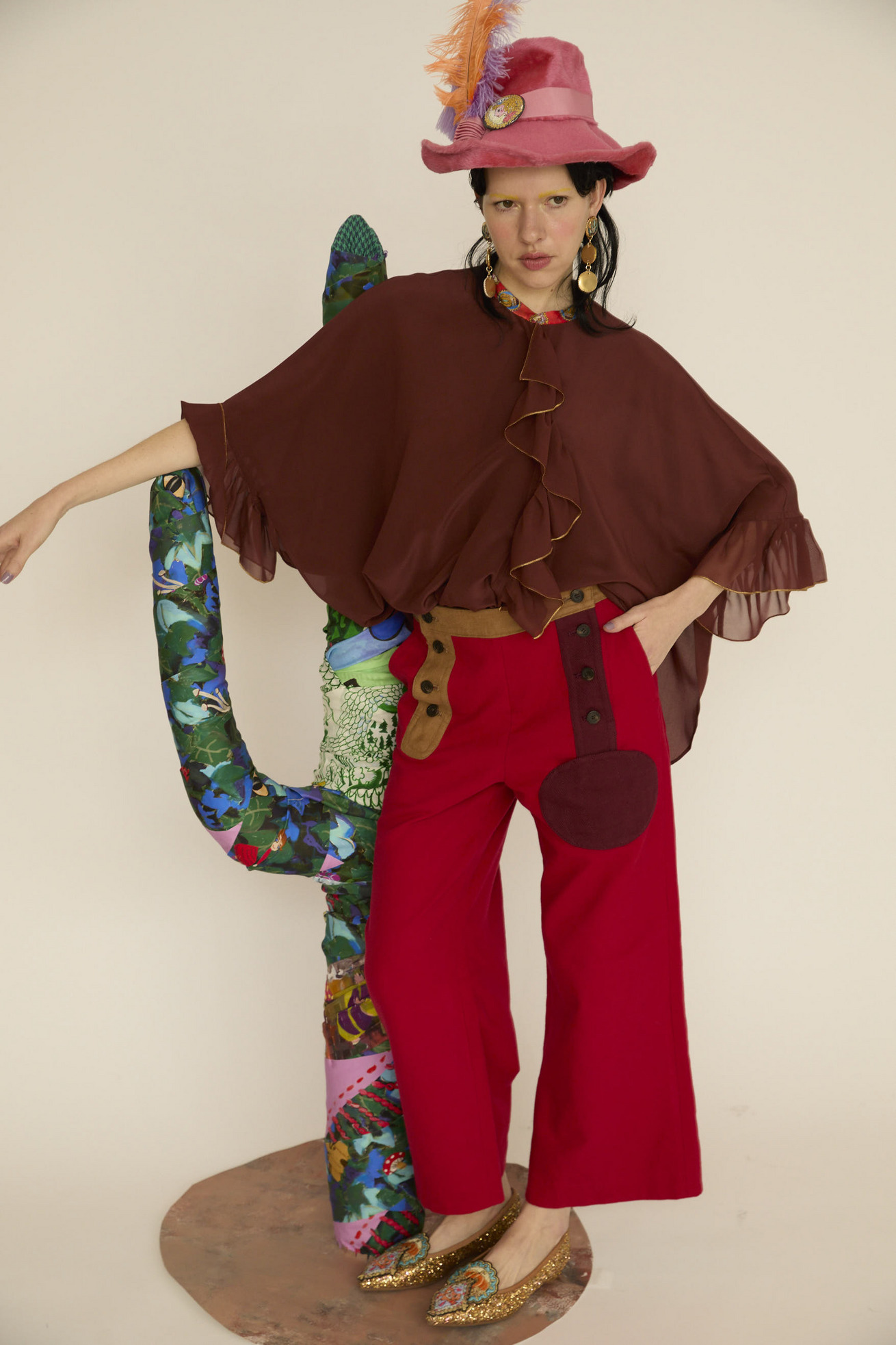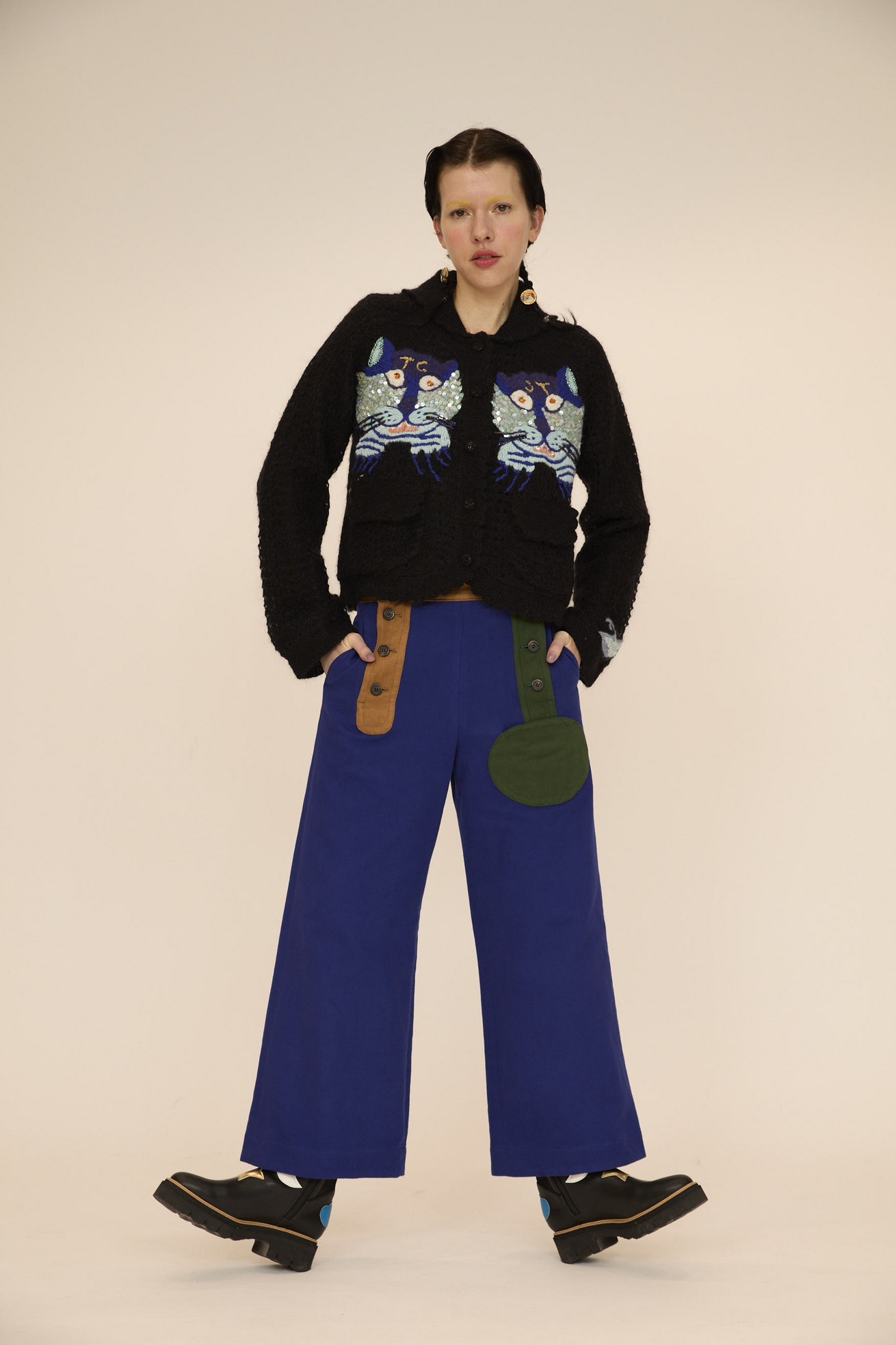 配色がアクセントのセーラーパンツ仕様セミワイドパンツです。 フロントのカボチャモチーフはポケットになっています。 ベースの生地は斜めに走る畝が特徴の綾織物で、柔らかくて耐久性が高い素材を使用。 生地の表面に起毛加工を施しており、滑らかであたたかみのあるタッチが特徴です。程良い伸縮性があり、股上も深く履きやすいアイテムです。 ケア方法:手洗い可能 ※着用モデル身長:173cm ※着用サイズ: 2(M)