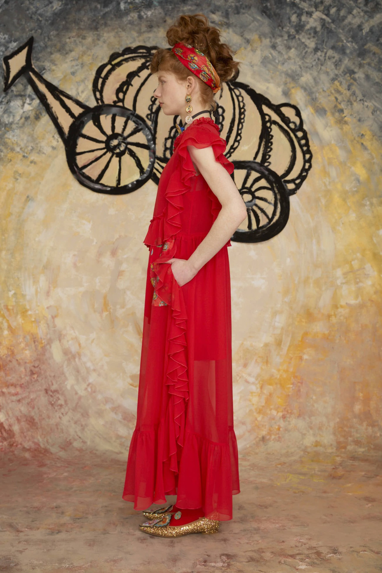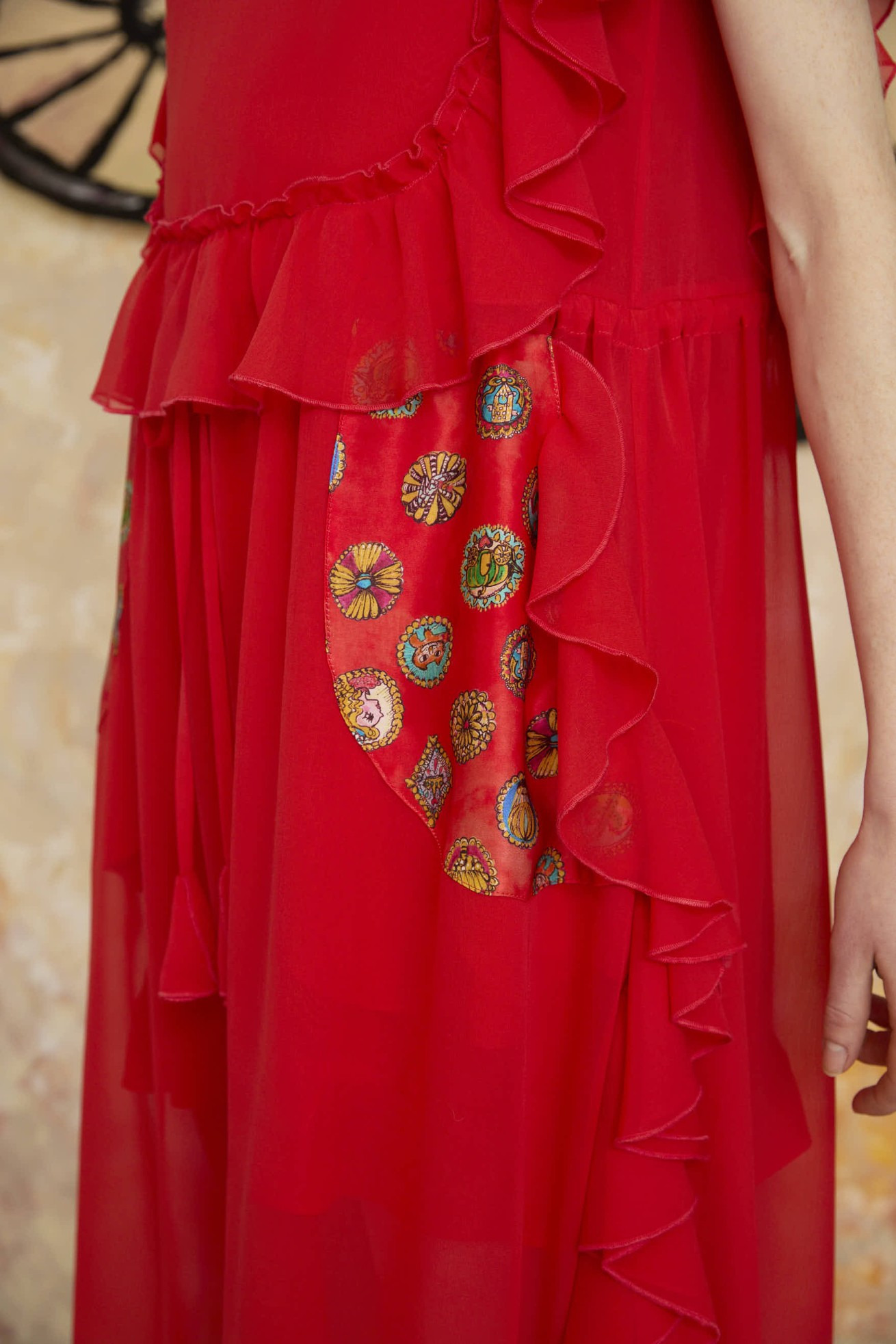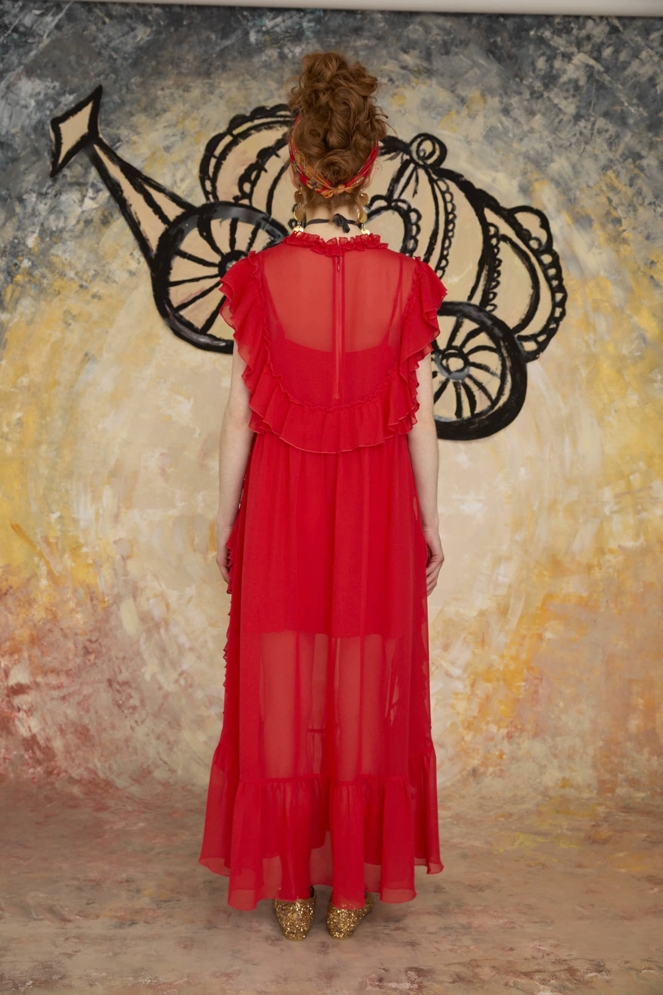 前後にフリルを多用したノースリーブドレス。 風に揺らめくような透明感とドレープ性のあるシルクシフォンを使用し、ドレッシーに仕上げました。 ウエストにはゴムとヒモを通し、シルエットを調整できます。 インナーワンピース付き。 ケア方法:ドライクリーニング ※着用モデル身長:170cm ※着用サイズ: 2(M) ※当サイトの商品は実店舗と在庫を共有しており、ご注文完了後に商品を確保できない場合がございます。 その際、改めてキャンセルまたは数量変更のメールをお送りいたします。何卒ご了承いただけますと幸いです。
