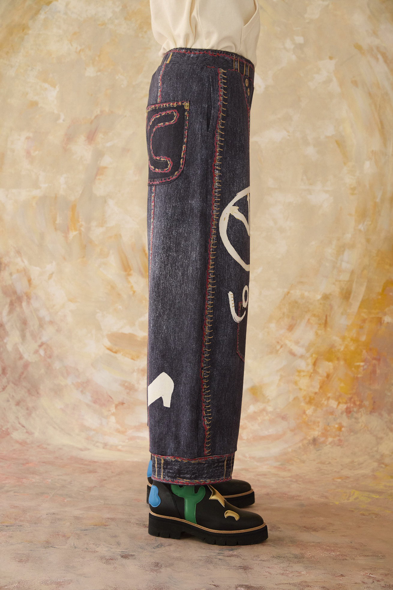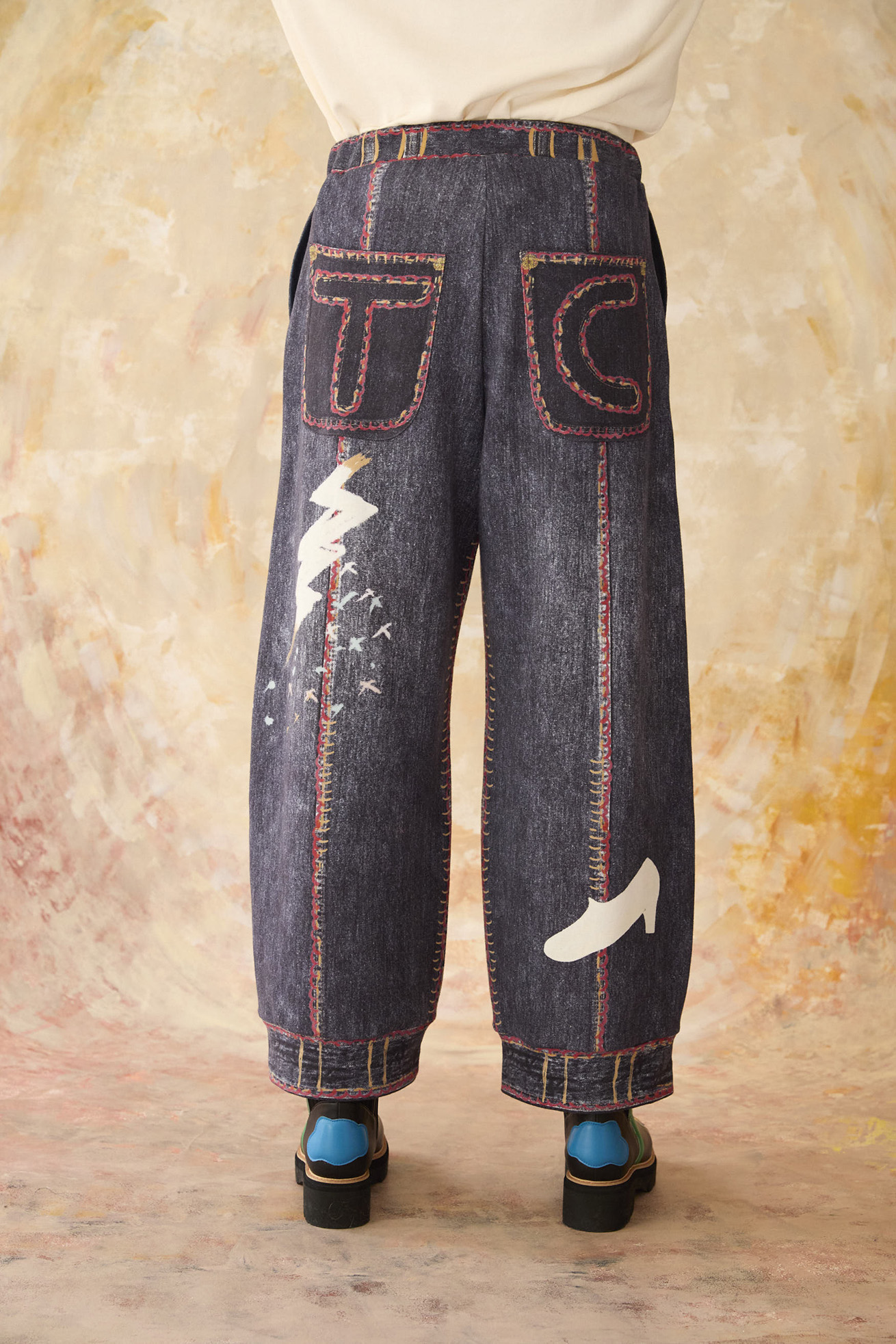 TROMPE-L'OEIL DENIM PRINT PANTS