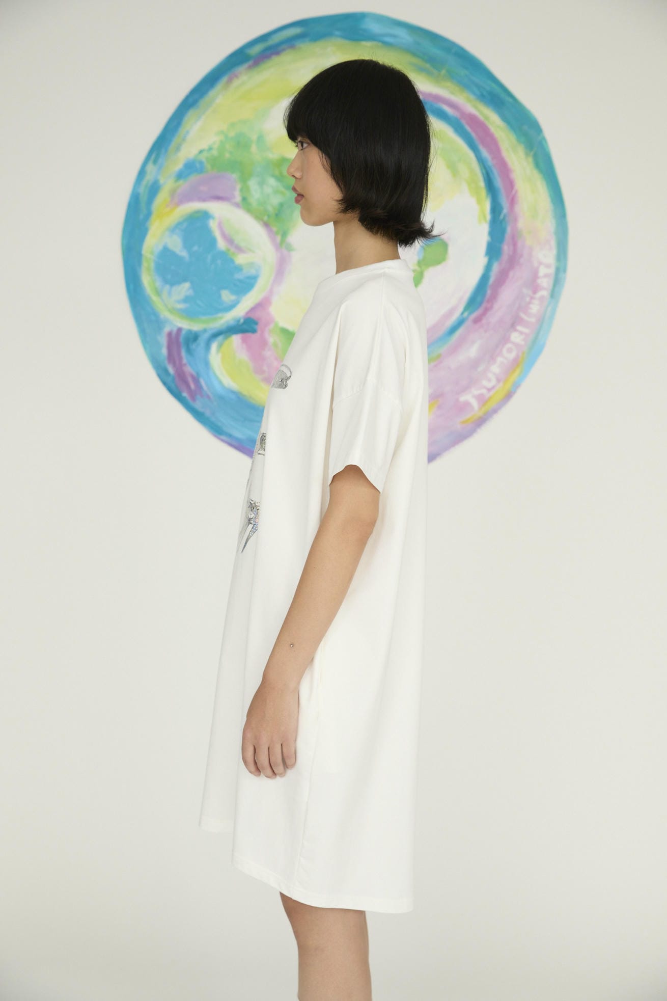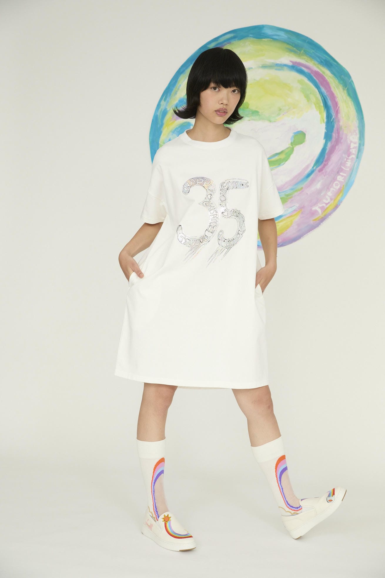 手描きの35がキャッチーなTシャツワンピース。 35の文字にはよく見るとヘビやネコが描かれており、箔プリントをすることで存在感のある1枚に。 伸縮性と光沢感のあるコットン生地を使用し、サラッと1枚で着やすいワンピースです。 ホワイト、ブラックにはシルバーのオーロララメ、ピンクにはゴールド箔でプリントをしています。 両サイドに大きなポケットがついています。 ※着用モデル身長:174cm ※着用サイズ: 2(M) ケア方法:手洗い可能 ※当サイトの商品は実店舗と在庫を共有しており、ご注文完了後に商品を確保できない場合がございます。 その際、改めてキャンセルまたは数量変更のメールをお送りいたします。何卒ご了承いただけますと幸いです。
