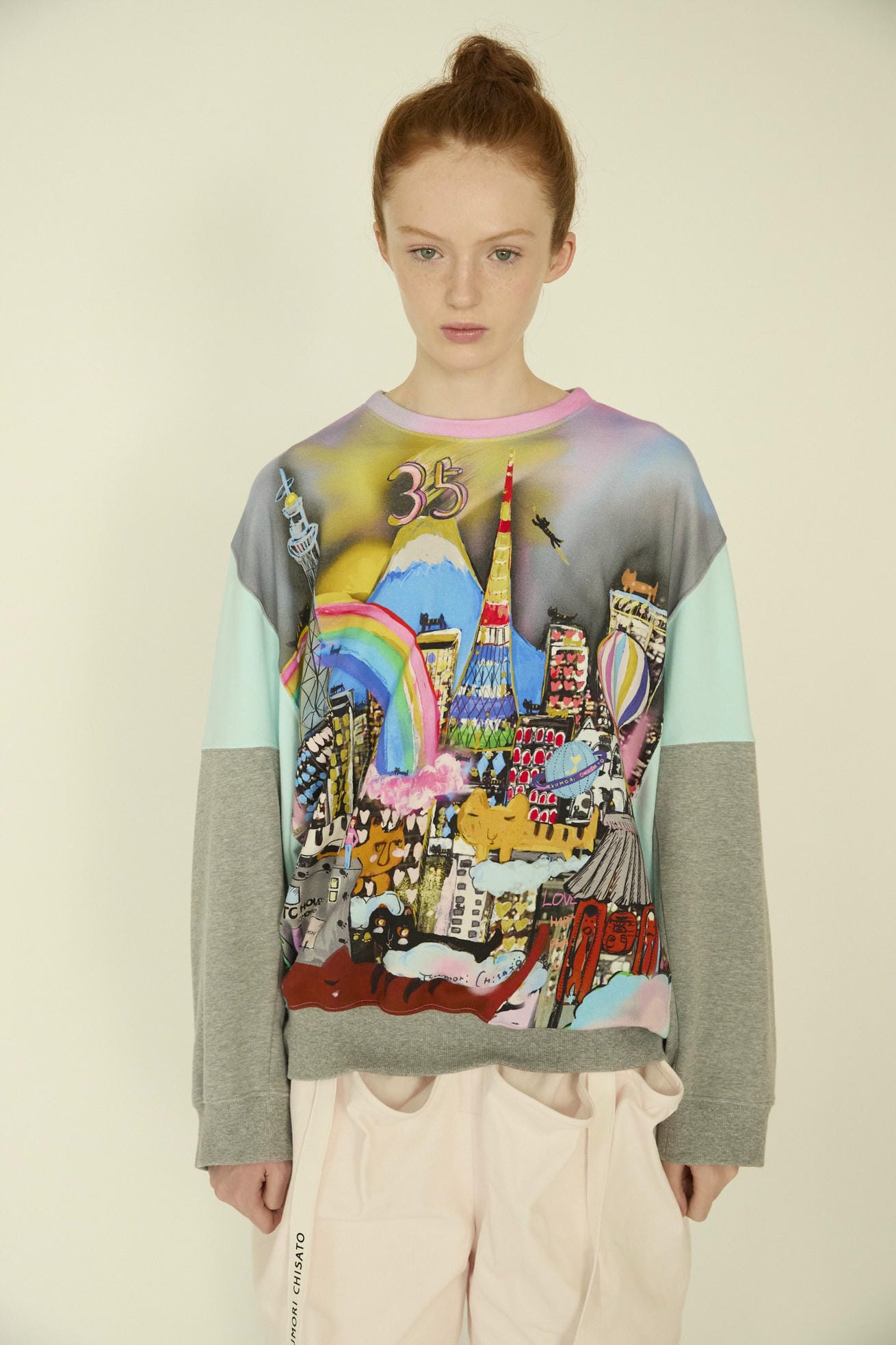 東京タワーやスカイツリー、雷門などの東京の街並みとTC HOUSE Omotesando、たくさんの猫たちを描いた特別な風景画。 35周年を記念して描き上げたプリントです。 描いたタッチをそのままにインクジェットプリントをしています。 富士山にかかる虹を渡る猫や、空飛ぶ猫など、よくみるとたくさんのネコたちが見え隠れしています。 ミニ裏毛を使用したオーバーサイズトレーナー。 丸みのあるシルエットがツモリチサトらしい1枚です。 ※着用モデル身長02:off white:173cm / 17:pink:174cm ※着用サイズ: 2(M) ※当サイトの商品は実店舗と在庫を共有しており、ご注文完了後に商品を確保できない場合がございます。 その際、改めてキャンセルまたは数量変更のメールをお送りいたします。何卒ご了承いただけますと幸いです。