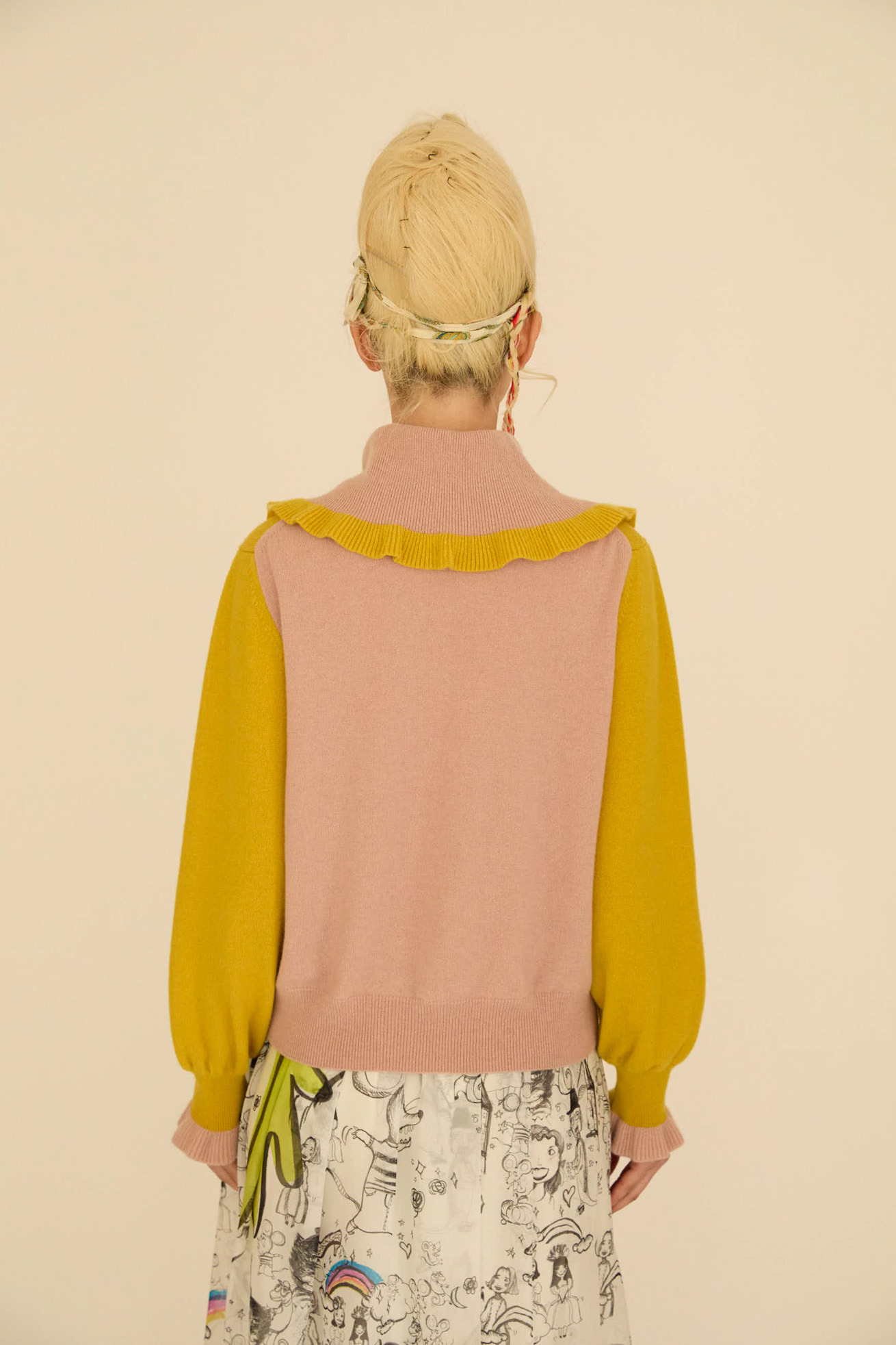 カシミヤ100%のやわらかく上品な風合いのニットトップス。 ネックデザインはボタンの留め方でアレンジをお楽しみいただけます。 前後の配色、ふんわりと広がる袖裾のデザインがアクセントになっています。 ゴールドのボタンにはハートやダイヤカットなど4種類のボタンを使って遊び心をプラスしています。 ※着用モデル身長:174cm ※着用サイズ: 2(M) ※当サイトの商品は実店舗と在庫を共有しており、ご注文完了後に商品を確保できない場合がございます。 その際、改めてキャンセルまたは数量変更のメールをお送りいたします。何卒ご了承いただけますと幸いです。