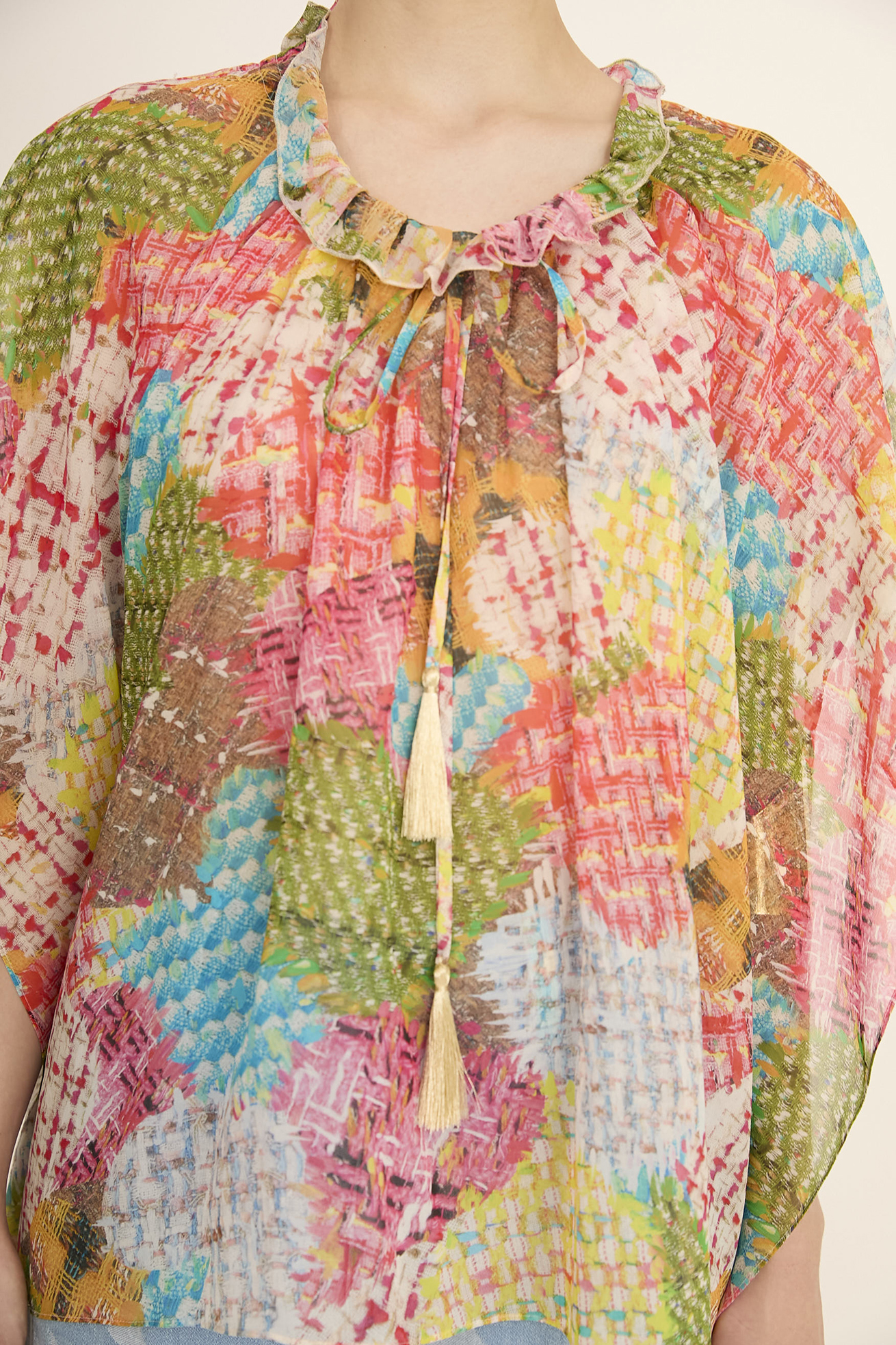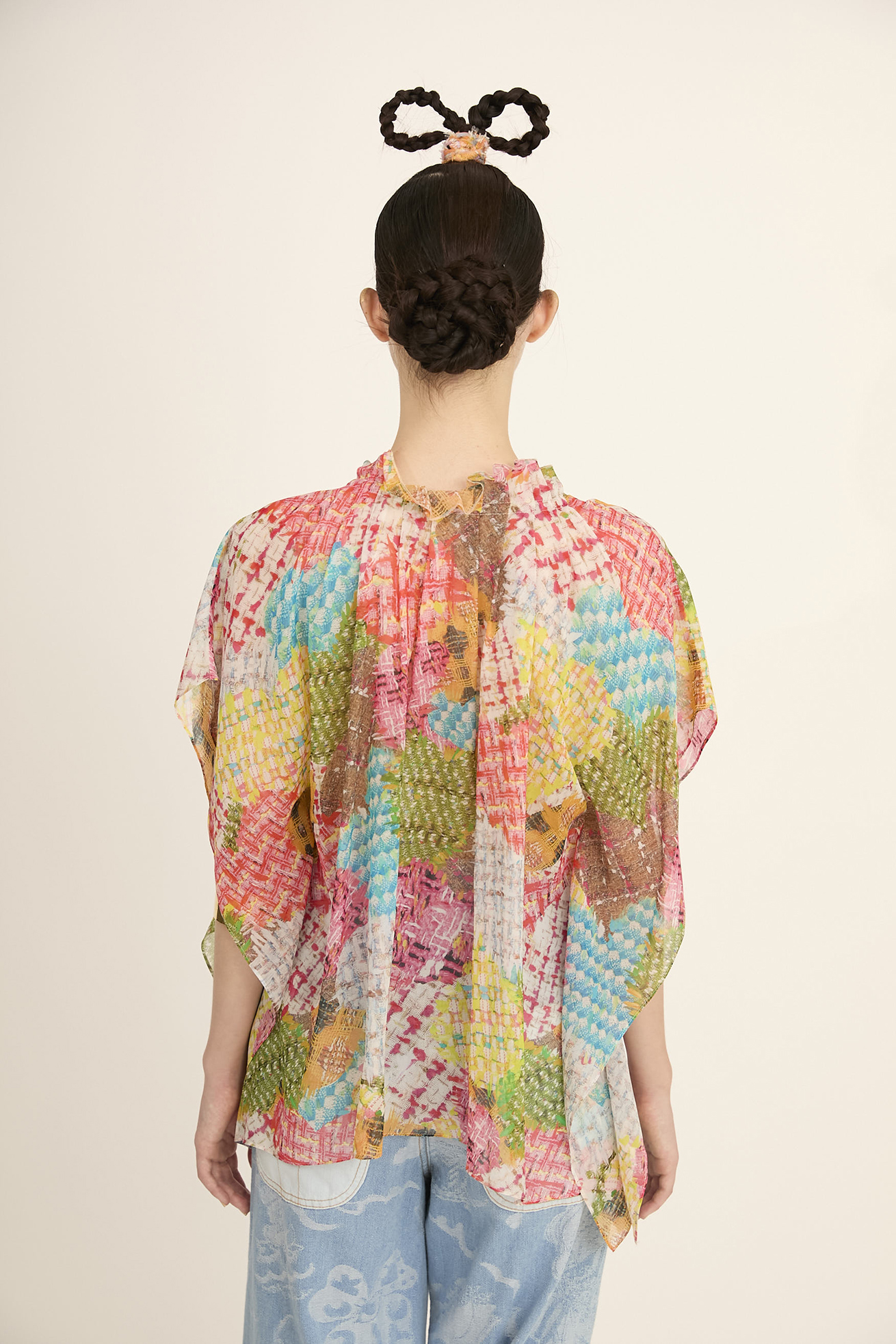 オリジナルのHeart patch tweed ptでスクエア型のブラウスを作りました。 柔らかいシルクシフォンの素材感を活かし、肩から落ちるシルエットがキレイなアイテムです。 〈Heart patch tweed pt〉 大好きなファンシーツイードを集めて、色の組み合わせを考え、ハート型にパッチワークをしたようなプリントを作りました。ランダムにハートを何枚も重ねて、 ツイードの糸がふさふさと飛び出しているようなイメージでフリンジを描き加えています。Vividで元気いっぱいのカラーとパステルトーンでやさしい印象の カラーの2色展開です。 透け感があり、柔らかく肌触りの良いシルクシフォンに、中国でインクジェットプリントをしています。 ※着用モデル身長:170cm ※着用サイズ: 2(M) ※当サイトの商品は実店舗と在庫を共有しており、ご注文完了後に商品を確保できない場合がございます。 その際、改めてキャンセルまたは数量変更のメールをお送りいたします。何卒ご了承いただけますと幸いです。