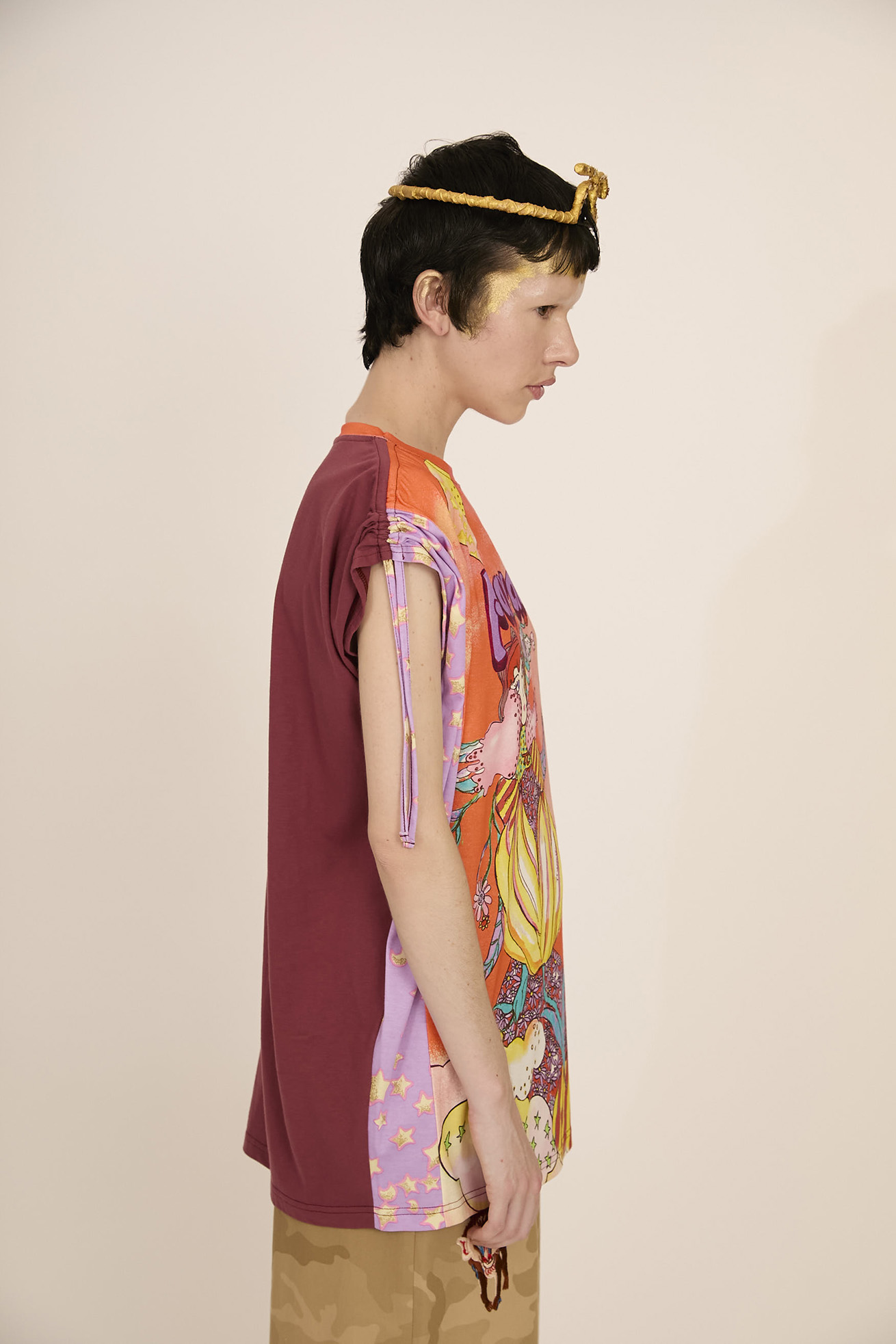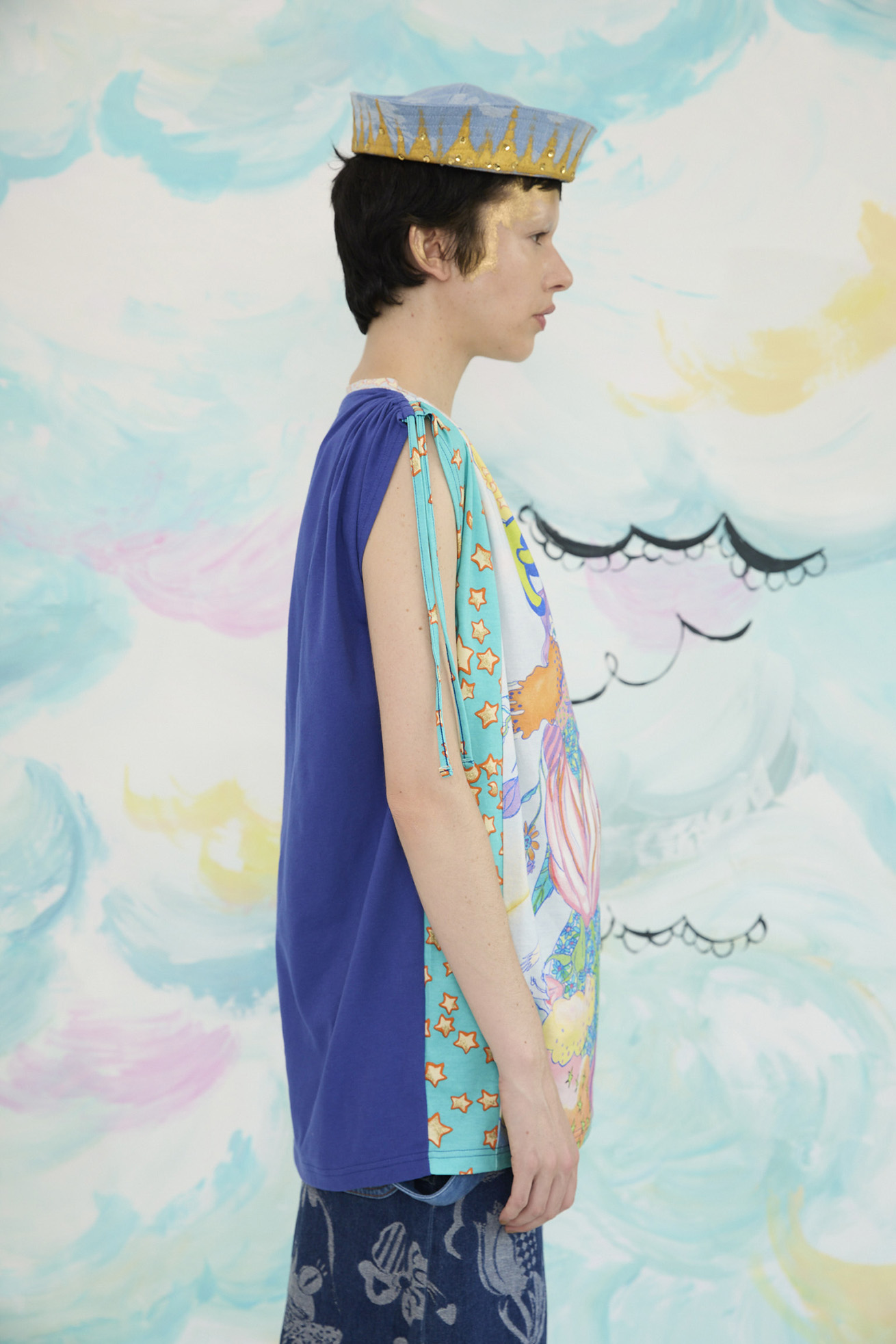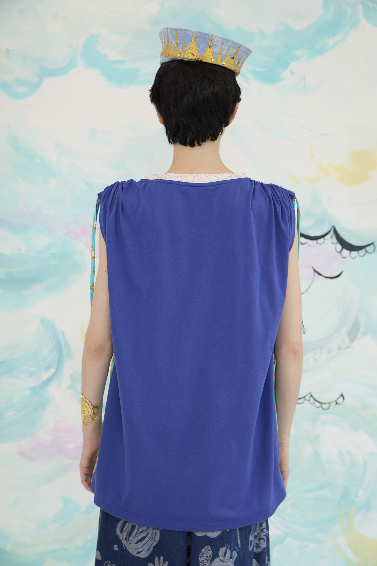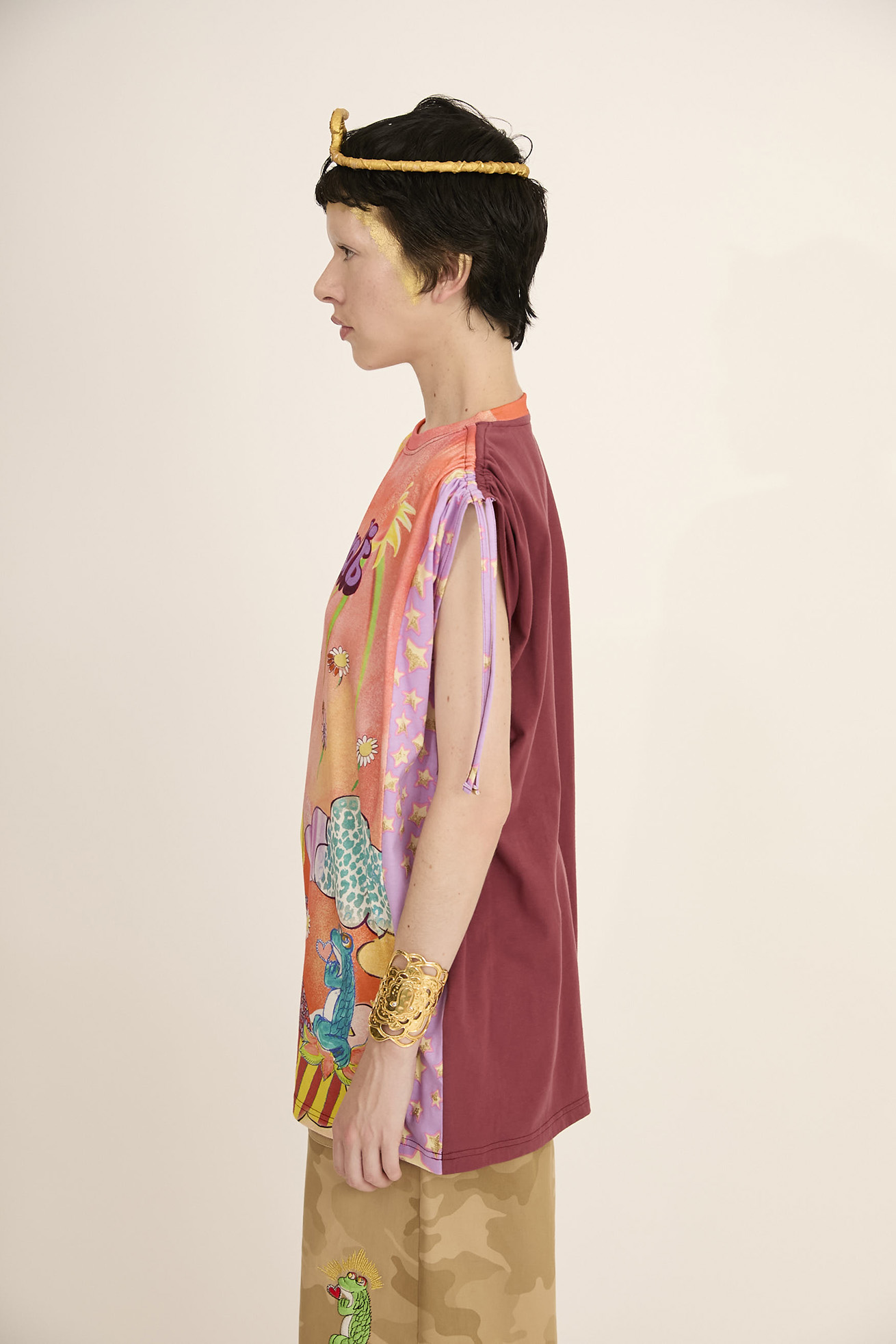 Bloom girl garden printを発色の良い染料インクジェットでプリントしたチュニックワンピース。 サイドの切り替え部分にはcat star jerseyの生地を使用しアクセントに。 袖丈は肩紐で調整ができ、アレンジをお楽しみください。 こちらの商品は手洗い可能です。 〈Bloom girl garden print〉 花を咲かせるパワーを持った、Bloom girl。たくさんの花がふわふわと舞って空 に浮かんでいく。蓮の花の上のカエル、Paradisの文字。優しく光る太陽。 空に浮かぶ雲と一緒にふわふわと浮かんでいるような花の楽園をイメージしています。 〈Cat star〉 大小たくさんの星たちの中に、よく見るとネコ型の星がキラキラ。集まったり散ら ばったりしながらキラキラ輝く星たちを、グリッターと染料のハンドプリントで表現しました。ハンドプリントならではのプリント表現、グリッタープリントが特別感の あるかわいいテキスタイルです。 ※着用モデル身長:off white 170cm light blue/orange 173c ※着用サイズ: 2(M) ※当サイトの商品は実店舗と在庫を共有しており、ご注文完了後に商品を確保できない場合がございます。 その際、改めてキャンセルまたは数量変更のメールをお送りいたします。何卒ご了承いただけますと幸いです。