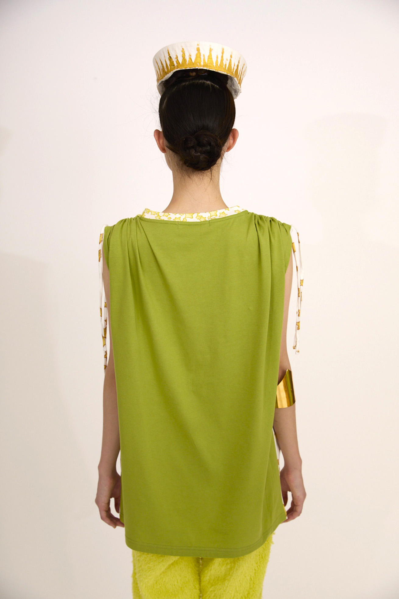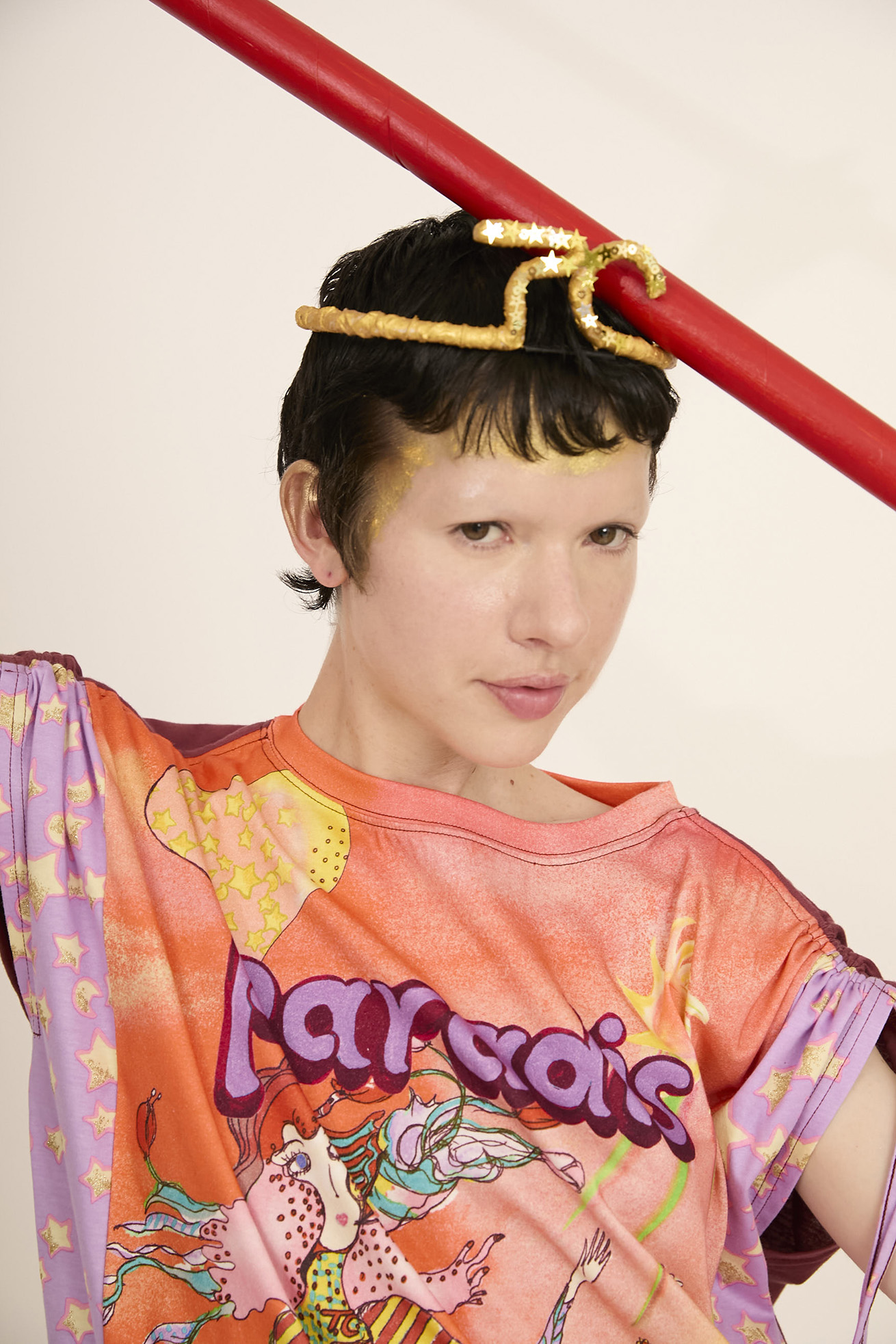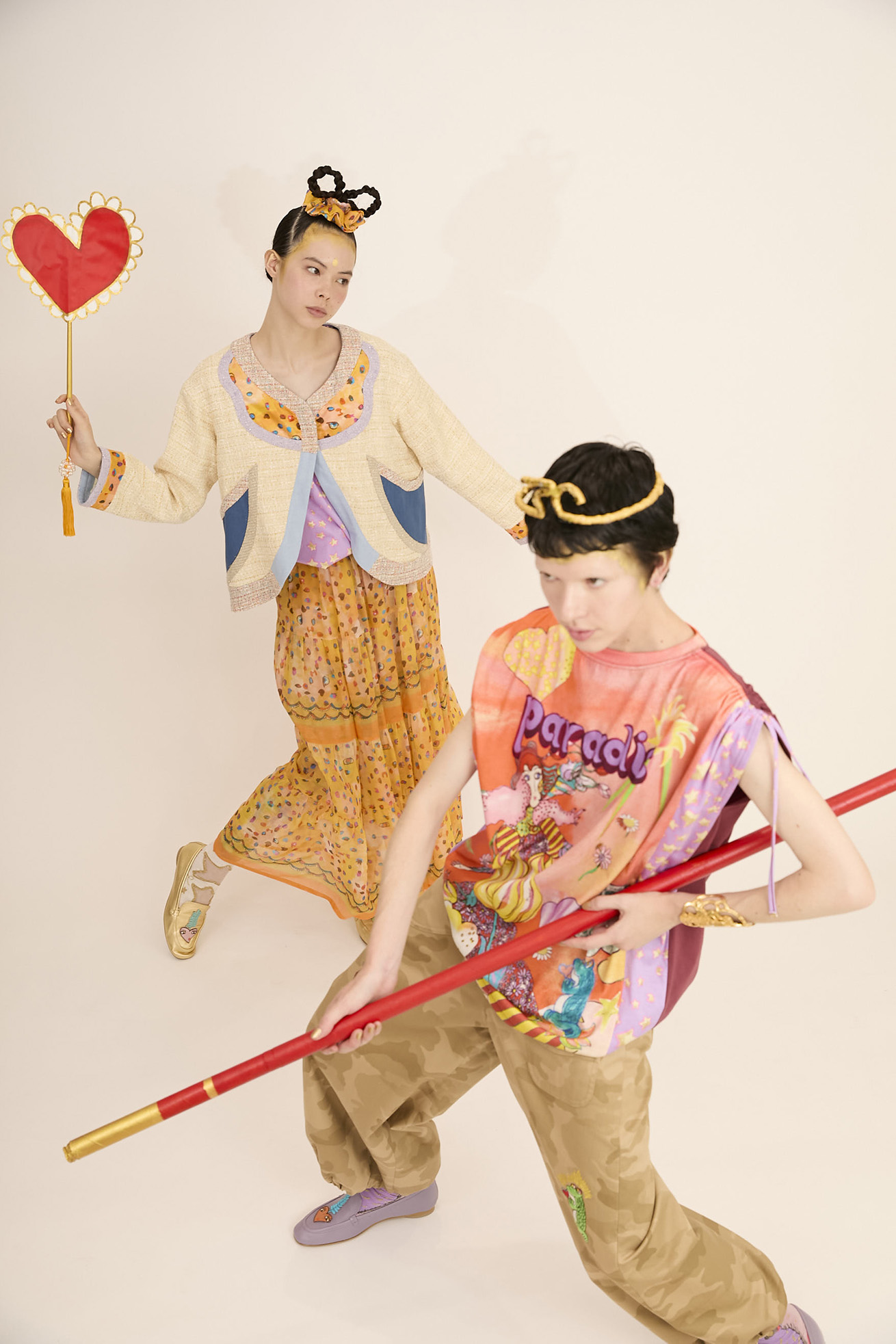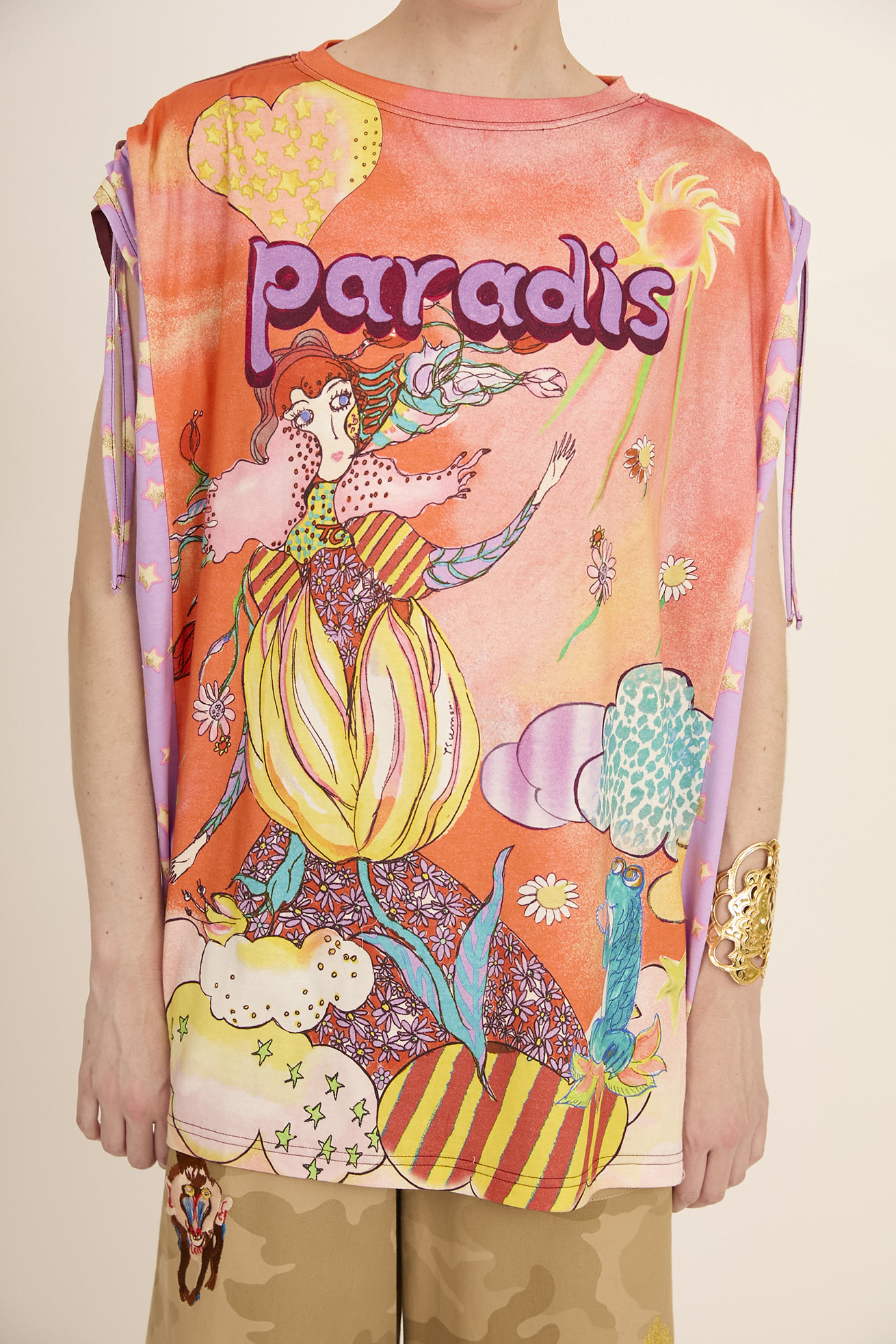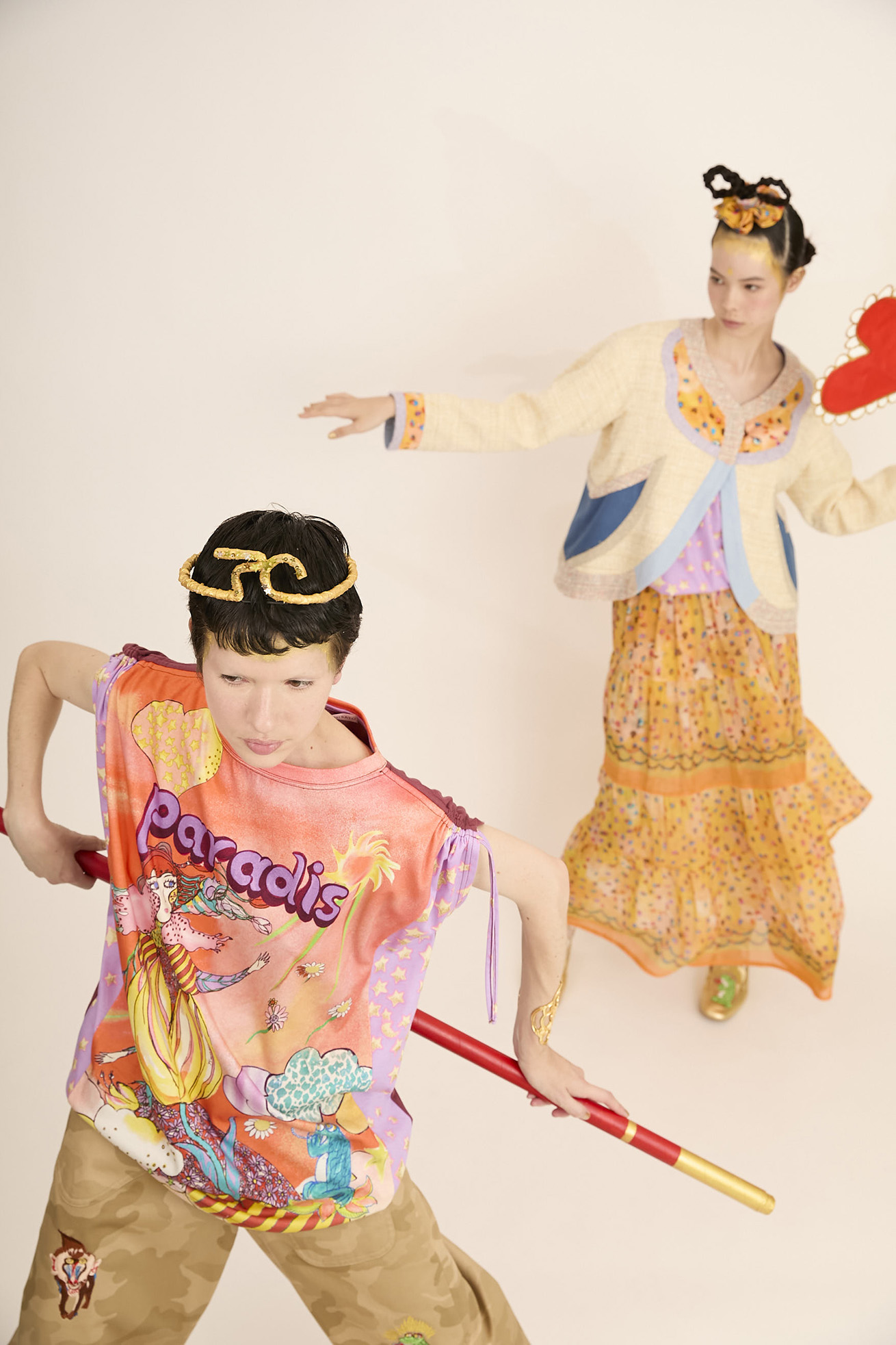 Bloom girl garden printを発色の良い染料インクジェットでプリントしたチュニックワンピース。 サイドの切り替え部分にはcat star jerseyの生地を使用しアクセントに。 袖丈は肩紐で調整ができ、アレンジをお楽しみください。 こちらの商品は手洗い可能です。 〈Bloom girl garden print〉 花を咲かせるパワーを持った、Bloom girl。たくさんの花がふわふわと舞って空 に浮かんでいく。蓮の花の上のカエル、Paradisの文字。優しく光る太陽。 空に浮かぶ雲と一緒にふわふわと浮かんでいるような花の楽園をイメージしています。 〈Cat star〉 大小たくさんの星たちの中に、よく見るとネコ型の星がキラキラ。集まったり散ら ばったりしながらキラキラ輝く星たちを、グリッターと染料のハンドプリントで表現しました。ハンドプリントならではのプリント表現、グリッタープリントが特別感の あるかわいいテキスタイルです。 ※着用モデル身長:off white 170cm light blue/orange 173c ※着用サイズ: 2(M) ※当サイトの商品は実店舗と在庫を共有しており、ご注文完了後に商品を確保できない場合がございます。 その際、改めてキャンセルまたは数量変更のメールをお送りいたします。何卒ご了承いただけますと幸いです。