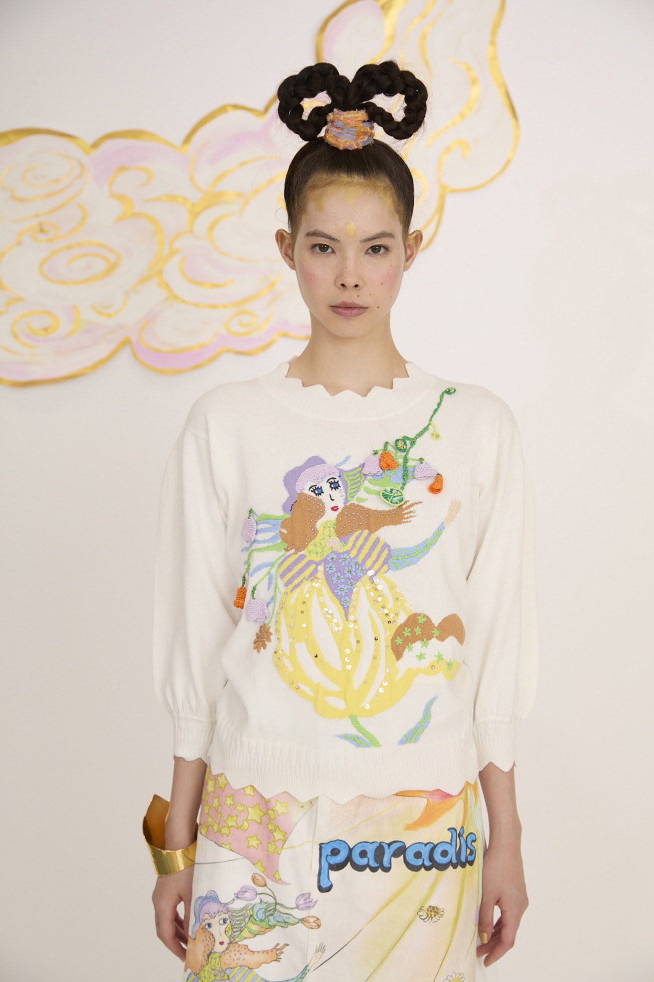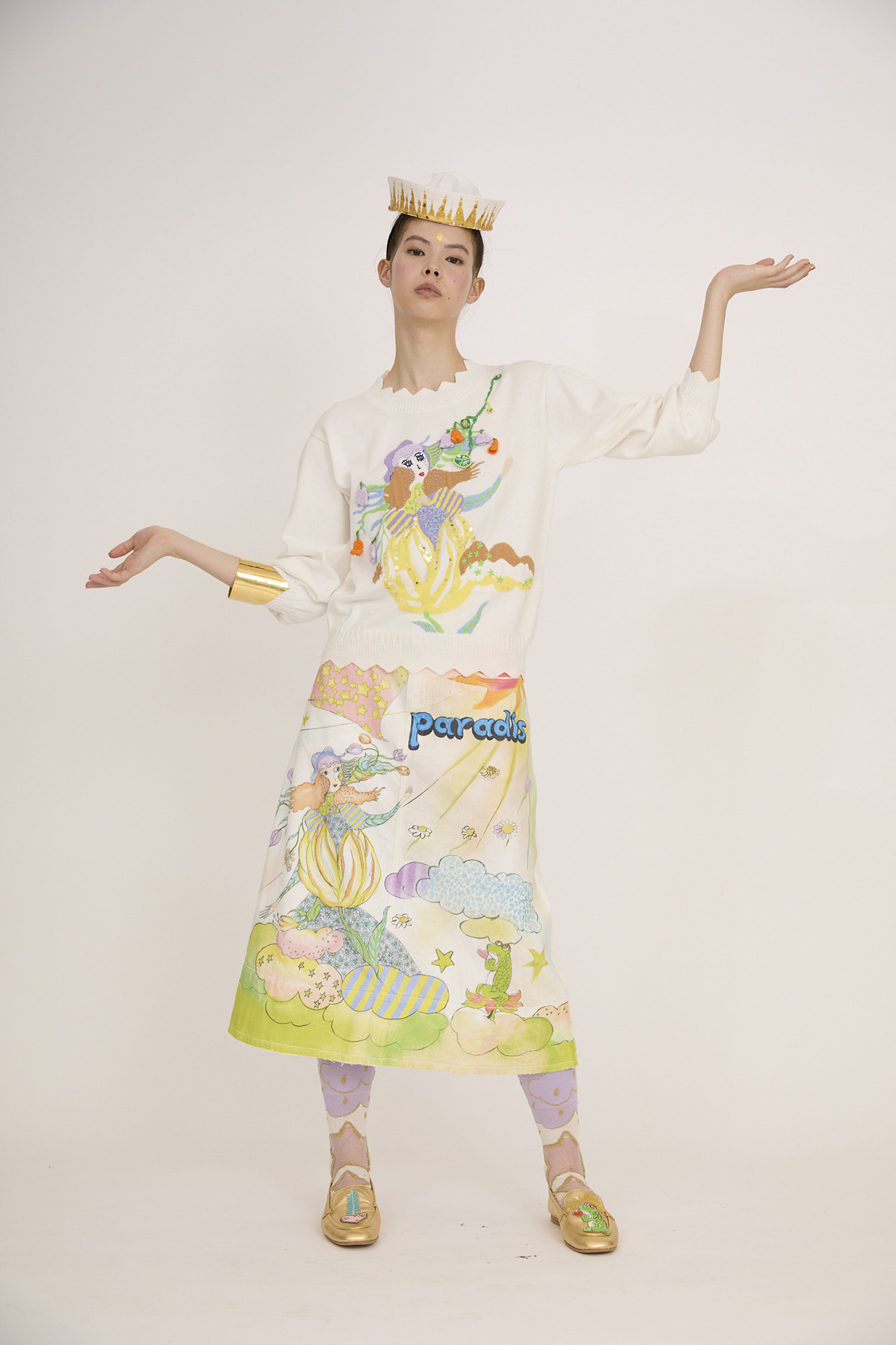 花を咲かせるパワーを持ったBloom girlをジャガード編みで表現し、お花や髪の毛、手などは立体的にかぎ針で編み、スパンコールやビーズをプラスして刺繍をしています。 コットン100%の薄手のニットにモチーフが映える1枚です。 襟元、袖口、裾のなみなみ切り替えもポイントです。 こちらの商品は手洗い可能です。 ※着用モデル身長:170cm ※着用サイズ: 2(M) ※当サイトの商品は実店舗と在庫を共有しており、ご注文完了後に商品を確保できない場合がございます。 その際、改めてキャンセルまたは数量変更のメールをお送りいたします。何卒ご了承いただけますと幸いです。