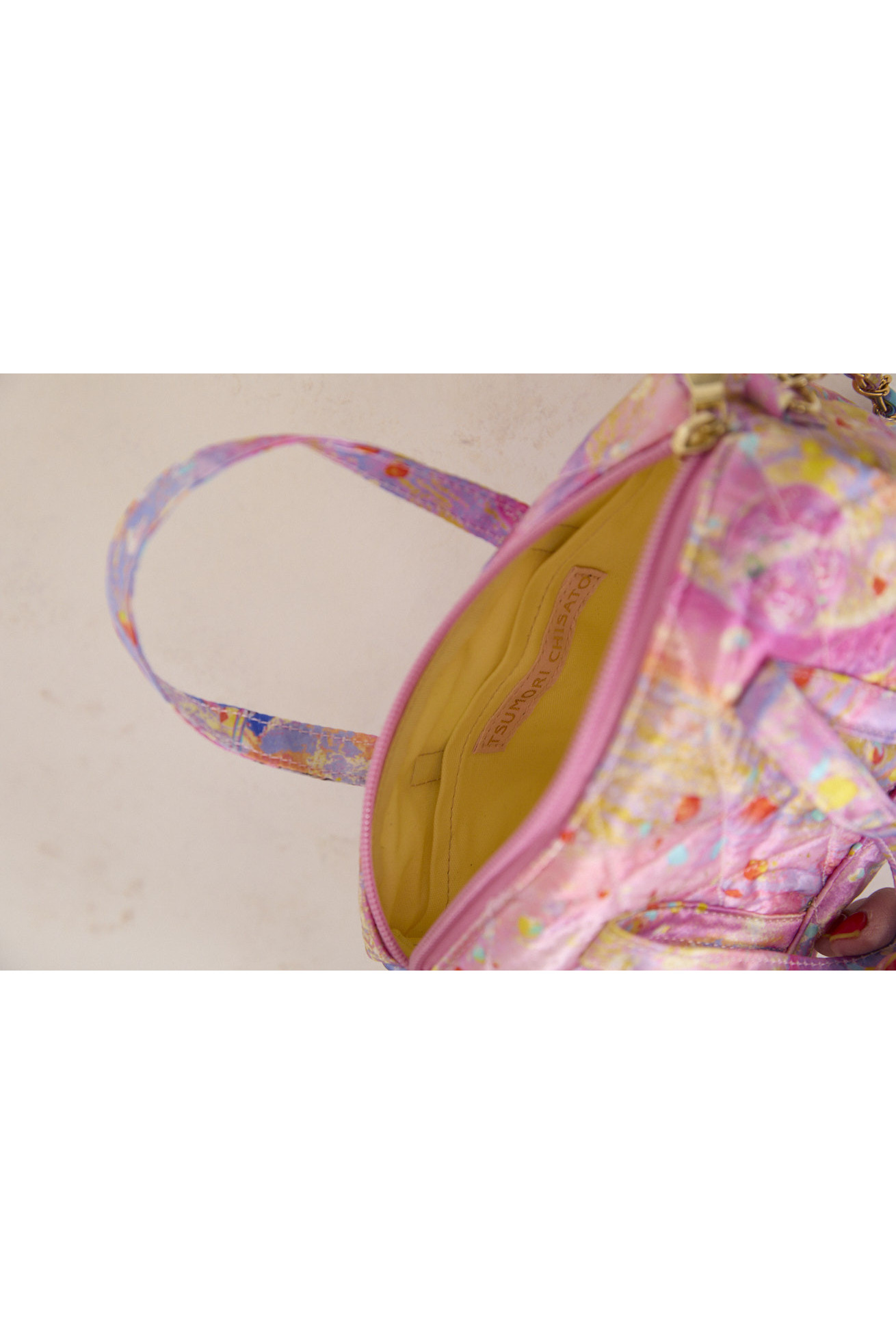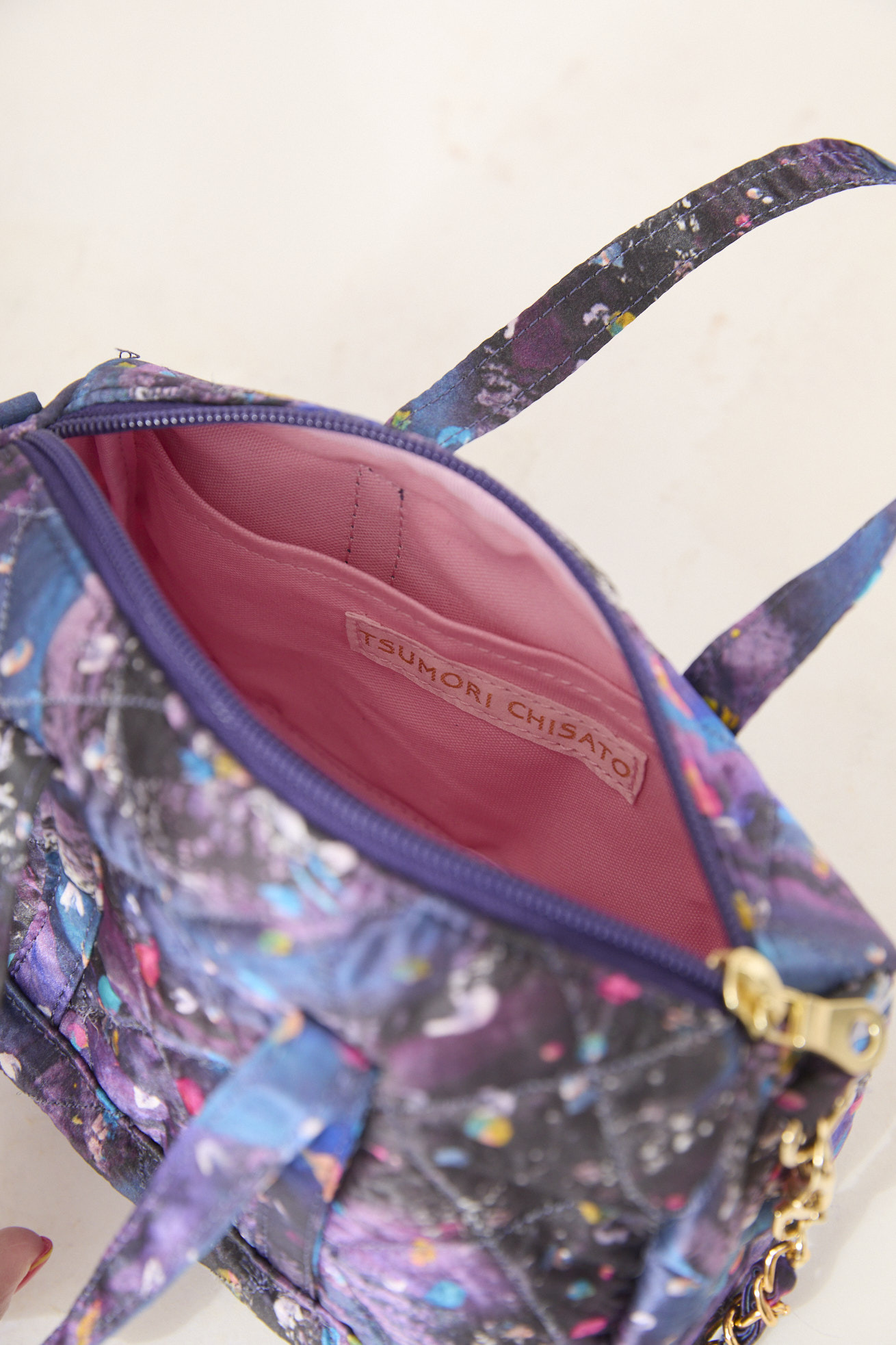 Andromeda printのシルクサテン生地を使用した定番のミニボストンバッグ。