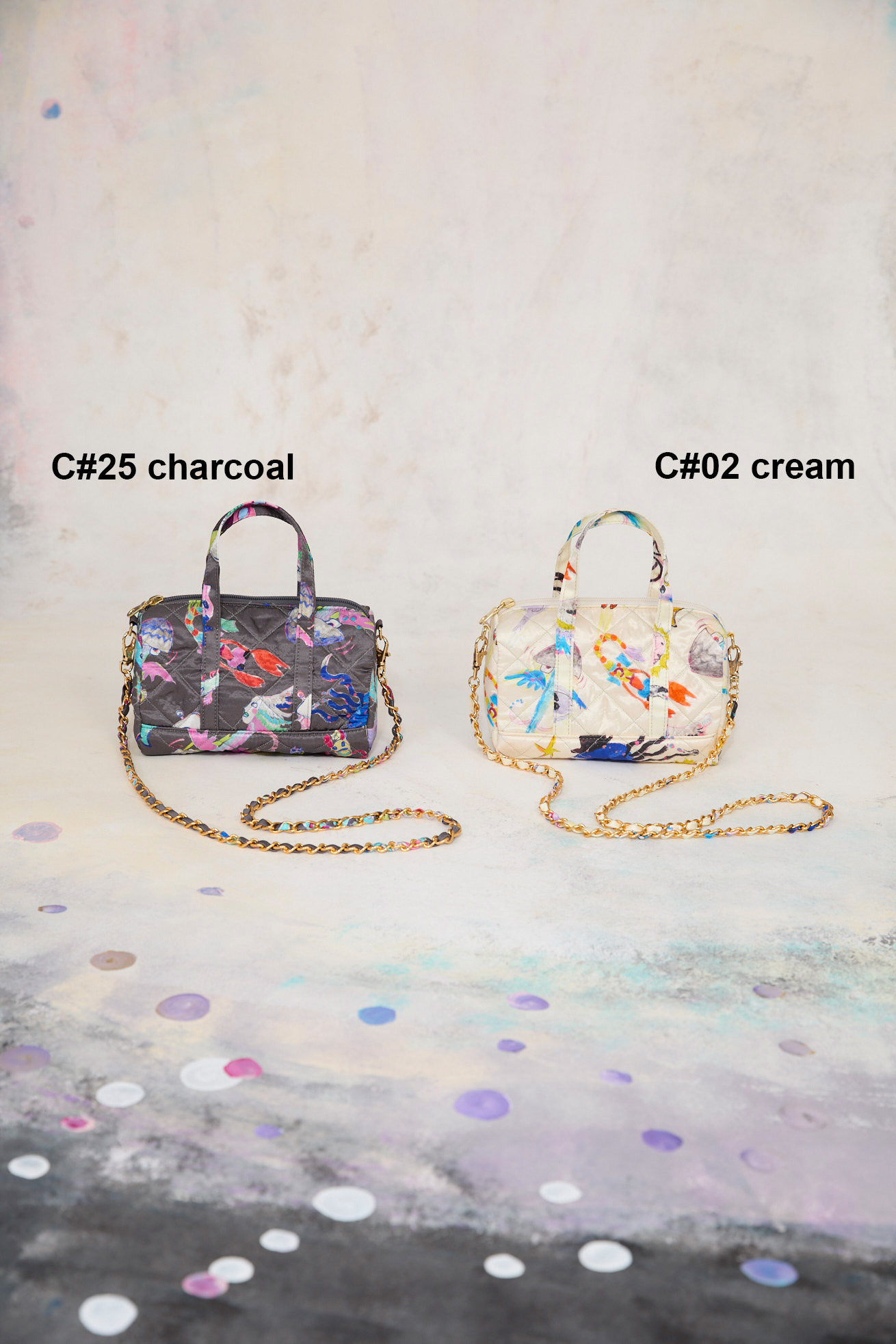アクセサリー感覚で楽しめるデザインで、取り外し可能なショルダーチェーンにもAndromeda print生地を通しています。
