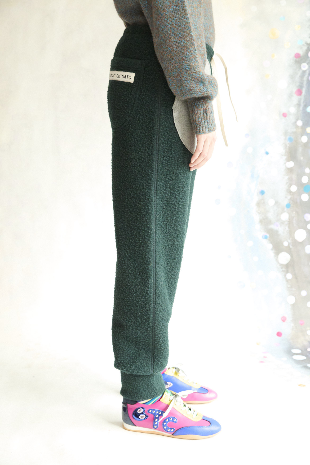 軽くて柔らかいウール混のスライバーニットを使用した定番ジョガーパンツ。 ポケットの切り替えは、猫宇宙人の目をイメージしています。 保温性が高く、ふんわりとボリューム感のある風合いが秋冬らしい生地感で、見た目にもあたたかい1枚。 前回好評だった素材から、新たに新色が登場。軽い履き心地でデイリーに使いやすく、サイドと後ろに4つのポケット付きです。 ケア方法:ドライクリーニング 着用モデル身長: C/#10:173cm / C/#03:165cm 着用サイズ:2(M) ※表記のサイズはサンプル商品での計測の為、若干の誤差が生じます。予めご了承ください。 ※完全受注生産の為、オーダー後の変更・キャンセルはお受けしておりません。予めご了承ください。