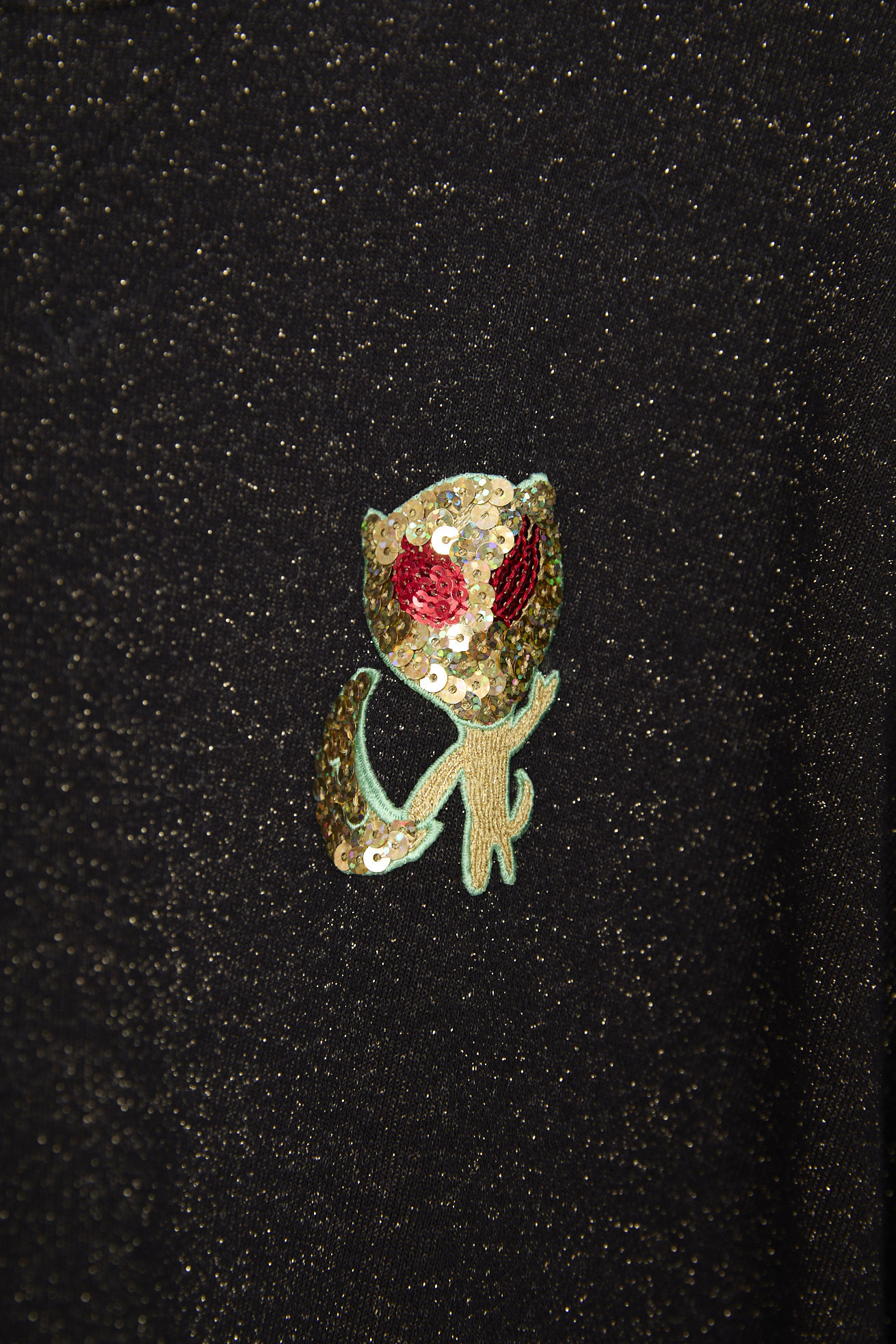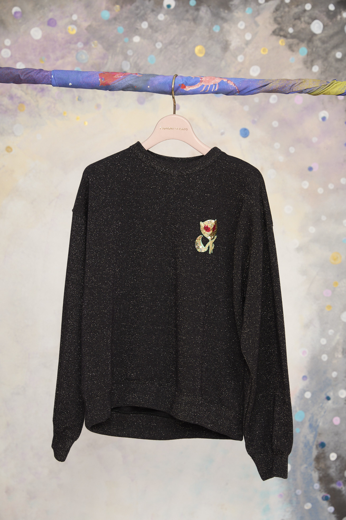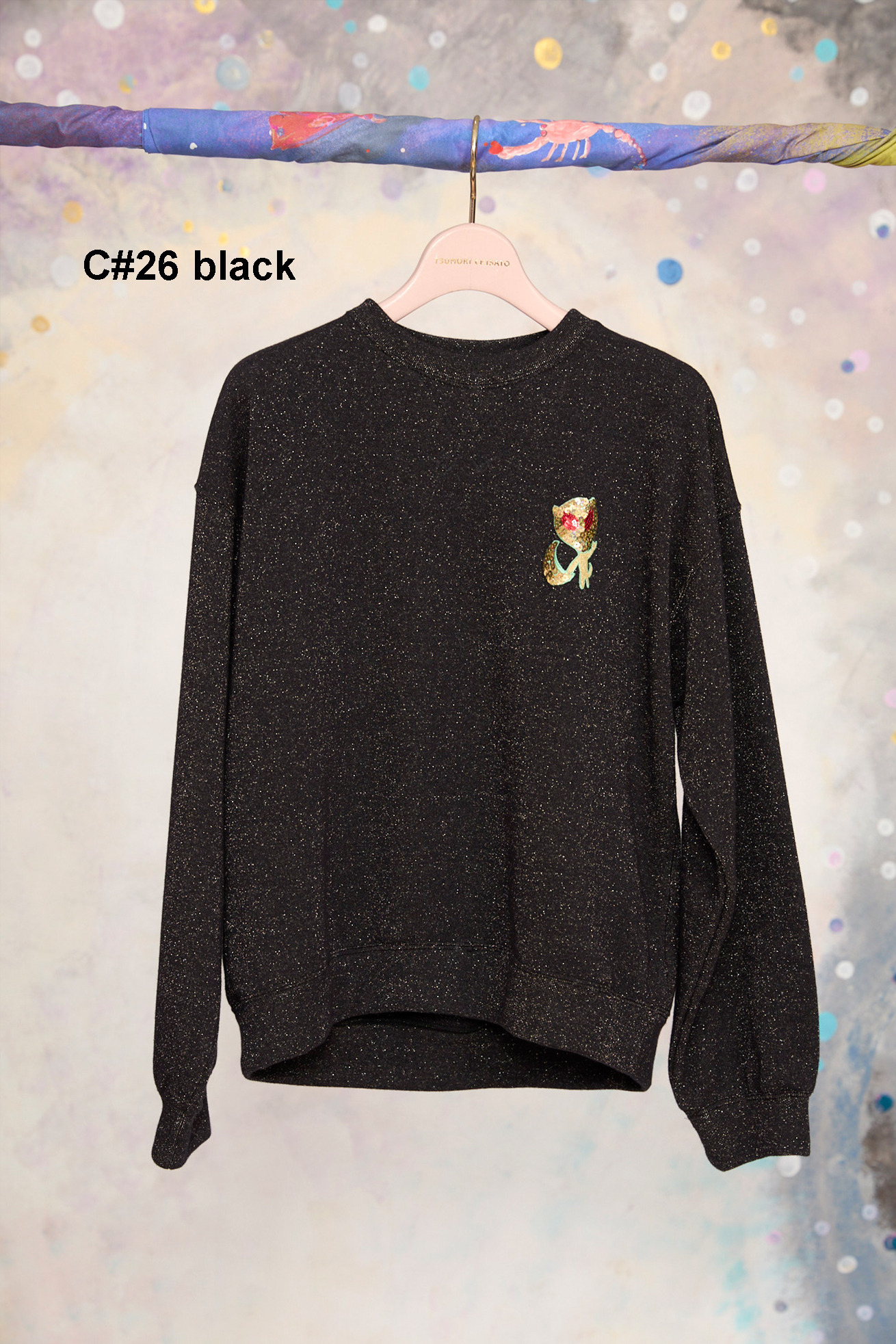 キラキラと輝くラメ糸が存在感のある裏毛トップス。 袖の切り替え位置を下げた、ツモリチサトの定番デザインです。胸元の猫宇宙人もアクセントに。 不純物や短い繊維を取り除いた上質な綿糸を使用することで、ふっくらと柔らかな風合いに仕上げています。 ラメ糸が肌面に響かないように設計されているため、ラメ特有のチクチク感がなく、快適な着心地をお楽しみいただけます。 ケア方法:手洗い可能 掲載サイズ:2(M) ※表記のサイズはサンプル商品での計測の為、若干の誤差が生じます。予めご了承ください。 ※完全受注生産の為、オーダー後の変更・キャンセルはお受けしておりません。予めご了承ください。