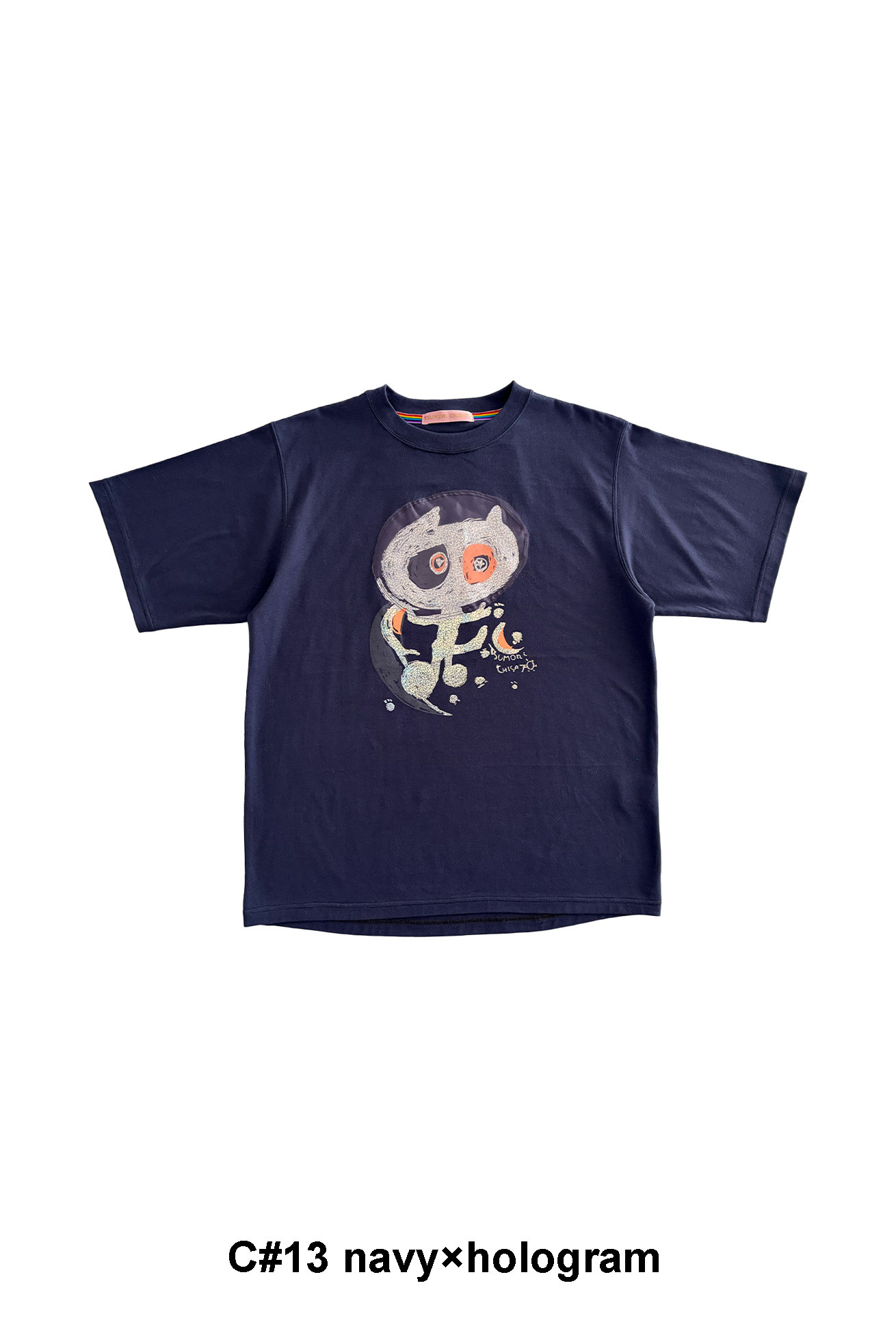 オッドアイの猫宇宙人が、オーガンジー素材のカプセルを被り、宇宙探索へ。月の上に乗ったイラストを、手捺染の顔料プリントで表現しています。 ホログラム箔を使用し、今期のテーマらしく光る宇宙をイメージしました。 生地は不純物を取り除いた40/2のコーマ糸を使用し、毛羽が少なく滑らかな肌触りと程よい厚みが特徴です。 男女兼用で着やすい、ゆったりとしたベーシックなデザインに仕上げています。 ケア方法:手洗い可能 着用モデル身長: C/#13:170cm / C/#02:175cm 着用サイズ:2(M) ※表記のサイズはサンプル商品での計測の為、若干の誤差が生じます。予めご了承ください。 ※完全受注生産の為、オーダー後の変更・キャンセルはお受けしておりません。予めご了承ください。