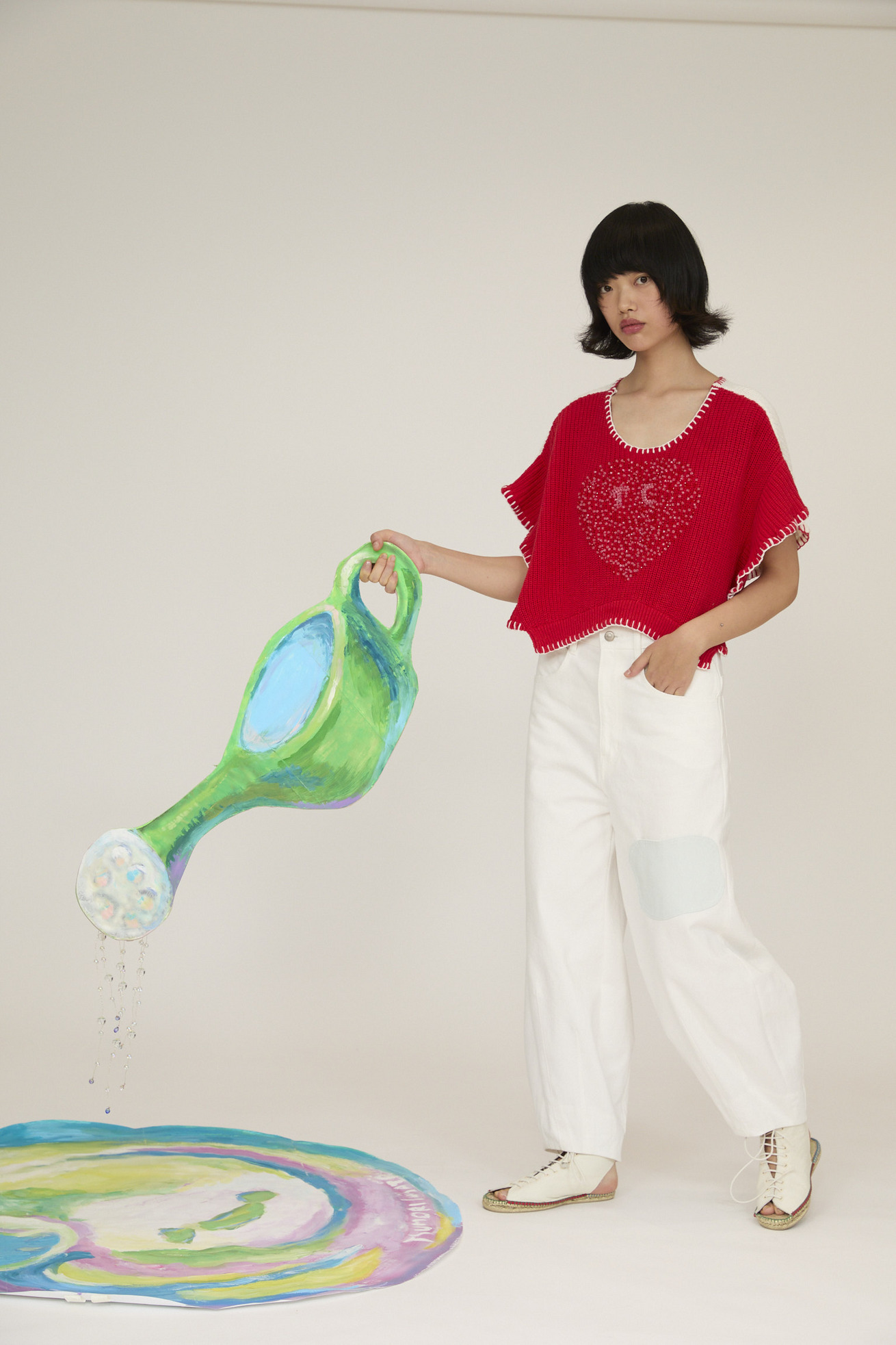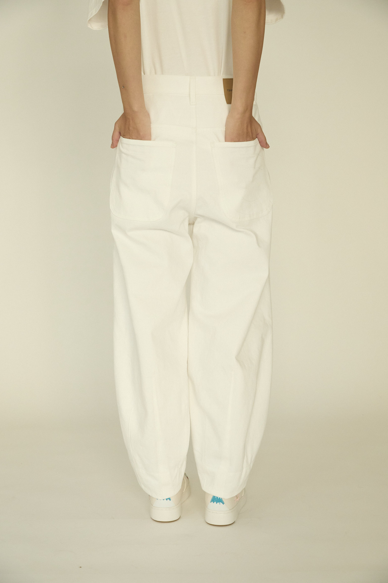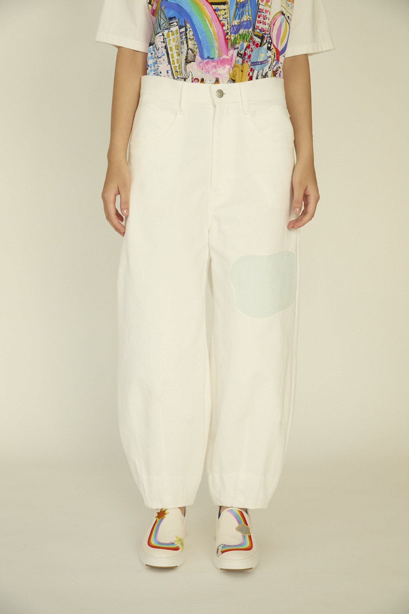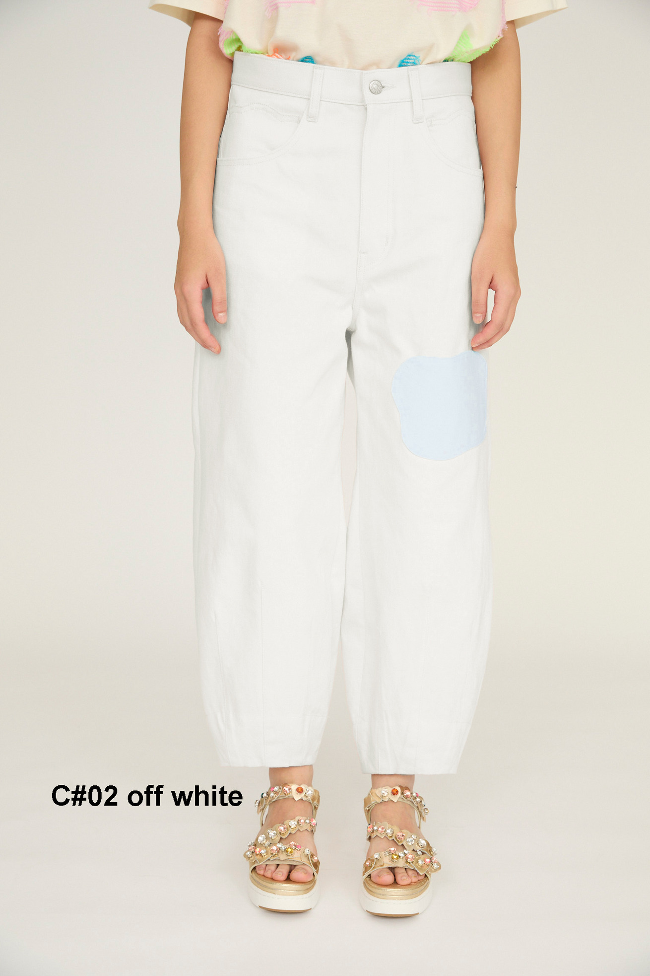 パステルの優しいカラーがキレイなデニムパンツ。 配色がアクセントのくも型ポケット、裾にかけて入るステッチは太陽の光のすじを表現しています。 しっかりとした生地感が、立体的なシルエットをキレイにつくっています。 生地は特殊な表面染着によるゆるやかなむら染めで、洗いざらしのナチュラルな表情とふくらみが特徴です。 ケア方法:手洗い可能 ※着用モデル身長:174cm176cm ※着用サイズ:2(M)