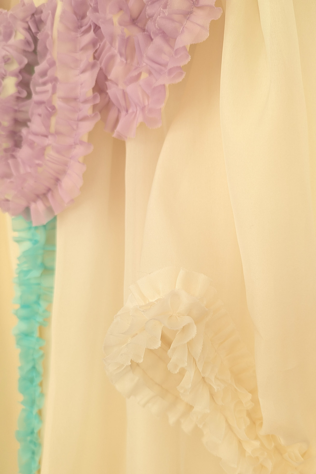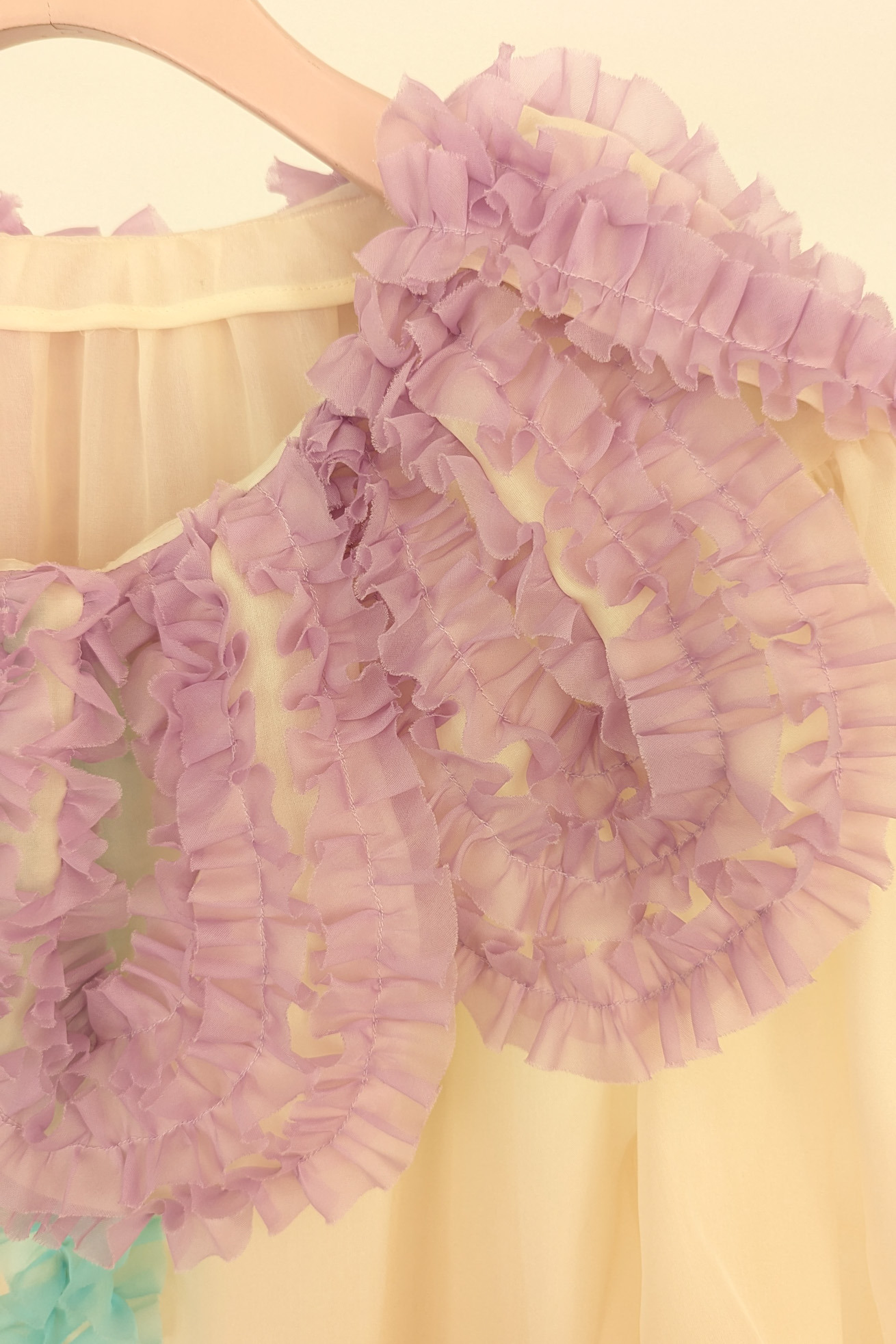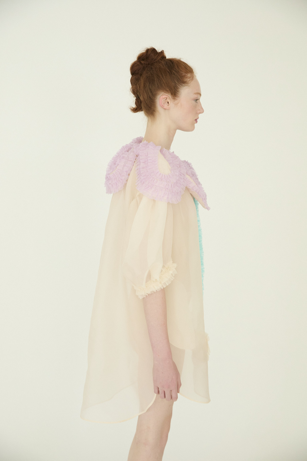 まるで大きな花を身に纏ったような、大きな花びらの襟と茎の前たてがキュートなデザインのワンピースです。 襟の大きな花びら、茎、葉の部分はフリルテープを使いボリュームと存在感のあるモチーフに。 ギャザーをたっぷり入れてふんわりと丸いシルエットをつくる袖のラインもポイントです。 シルクオーガンジーの光沢感と透け感が、ファンシーでより特別感のある1枚にしています。 インナーワンピース付き。 ケア方法:ドライクリーニング ※着用モデル身長:176cm ※着用サイズ: 2(M)